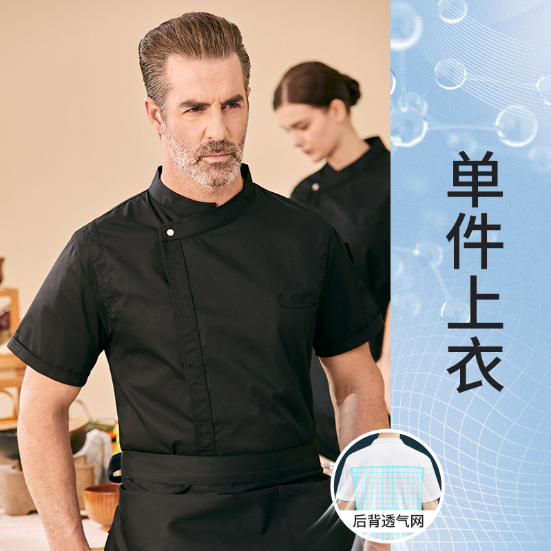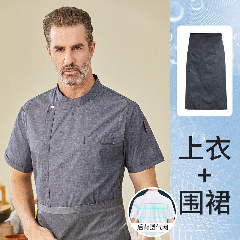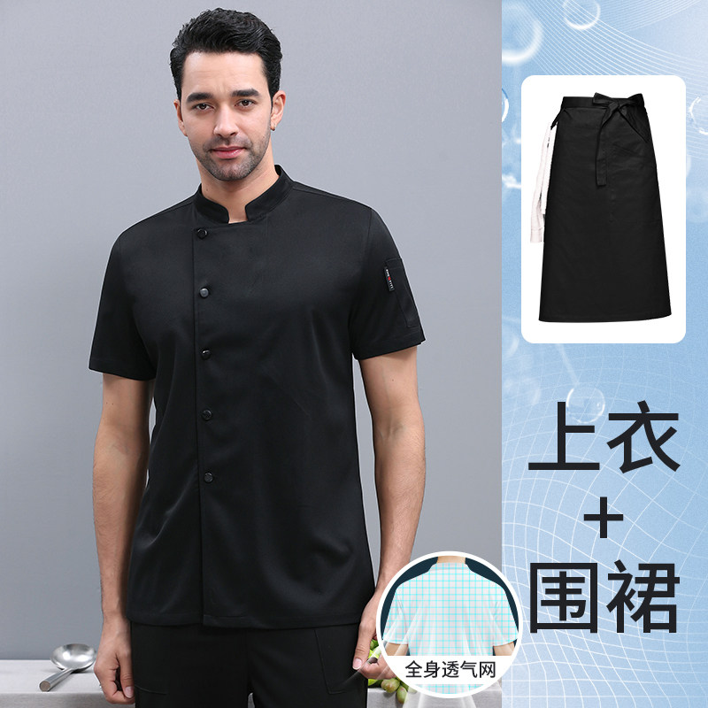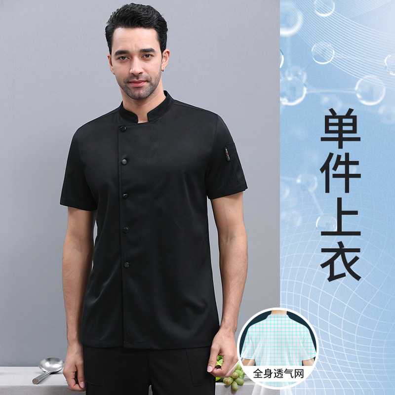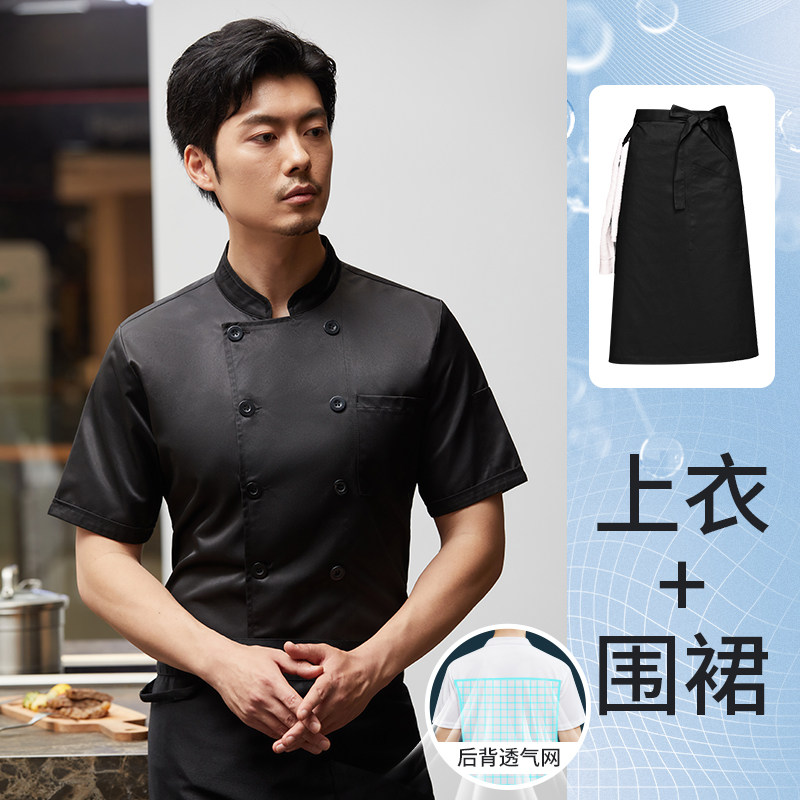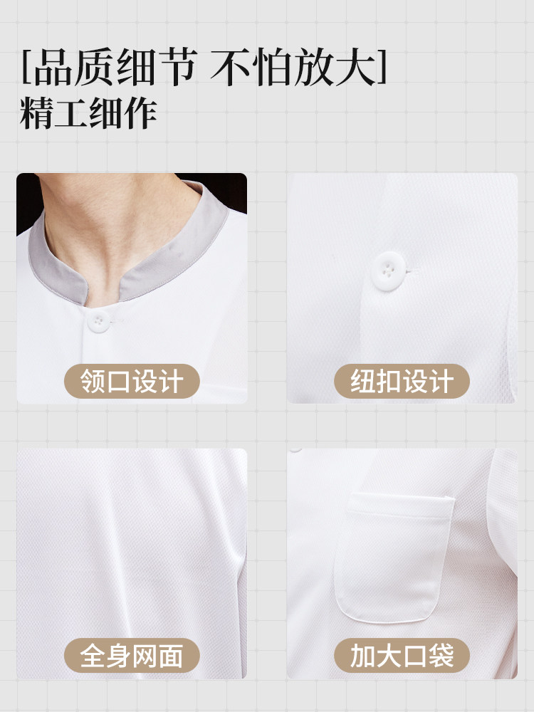 冰丝夏天厨师工作服短袖薄款透气网男装餐饮酒店厨房夏季白色套装