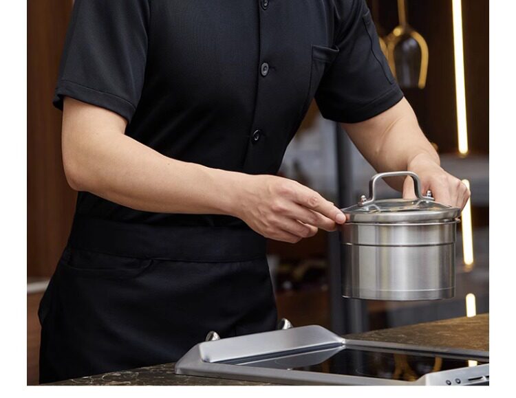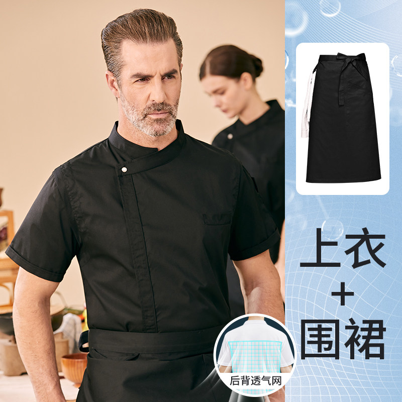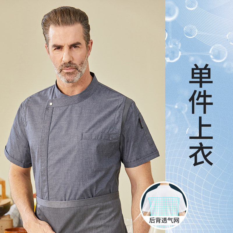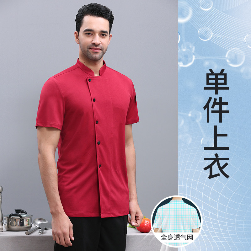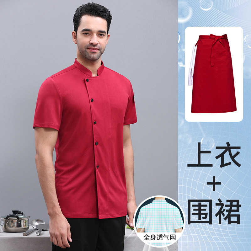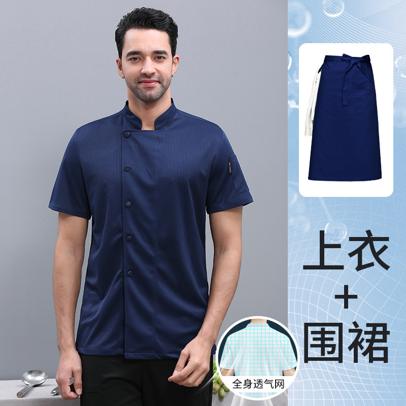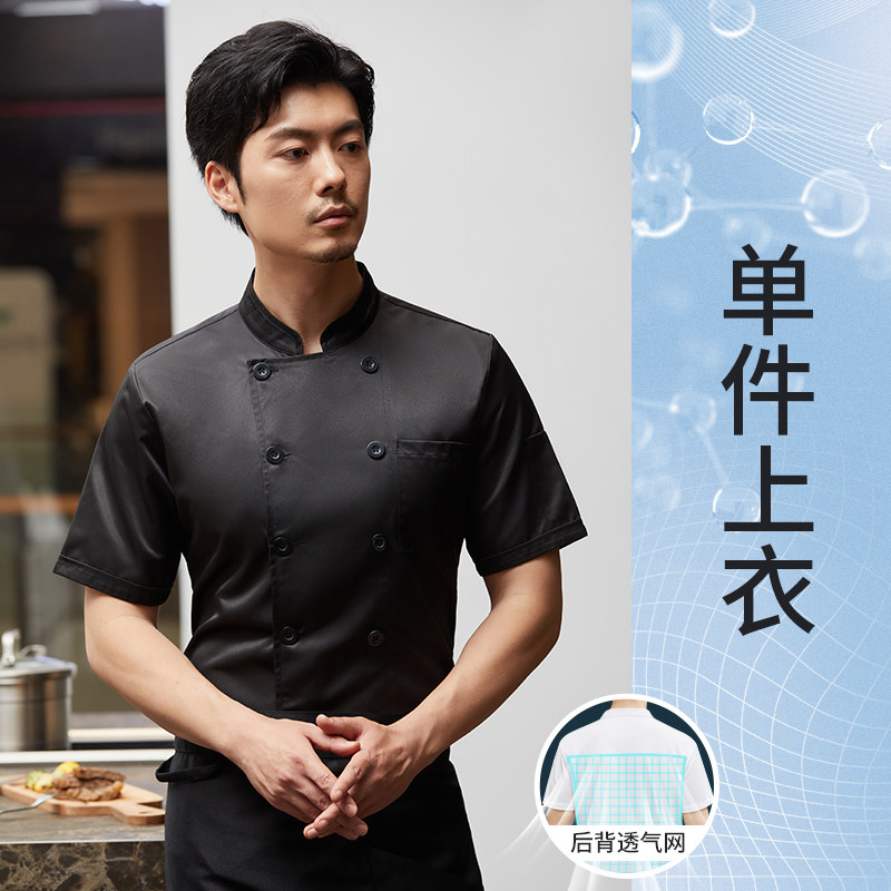 冰丝夏天厨师工作服短袖薄款透气网男装餐饮酒店厨房夏季白色套装