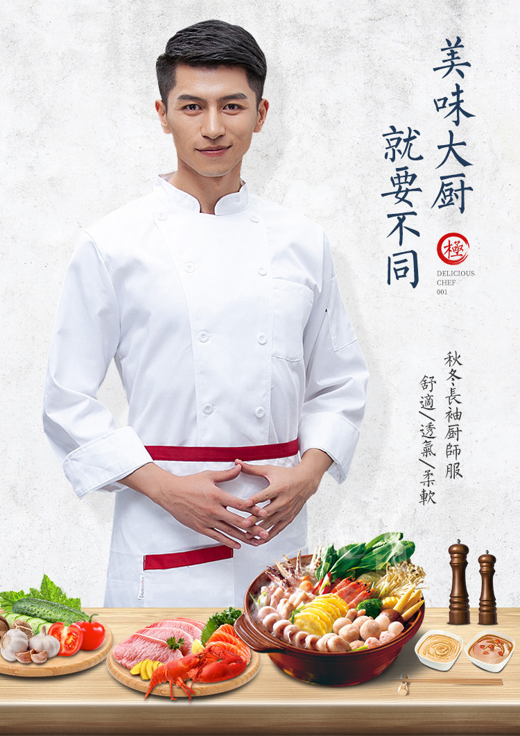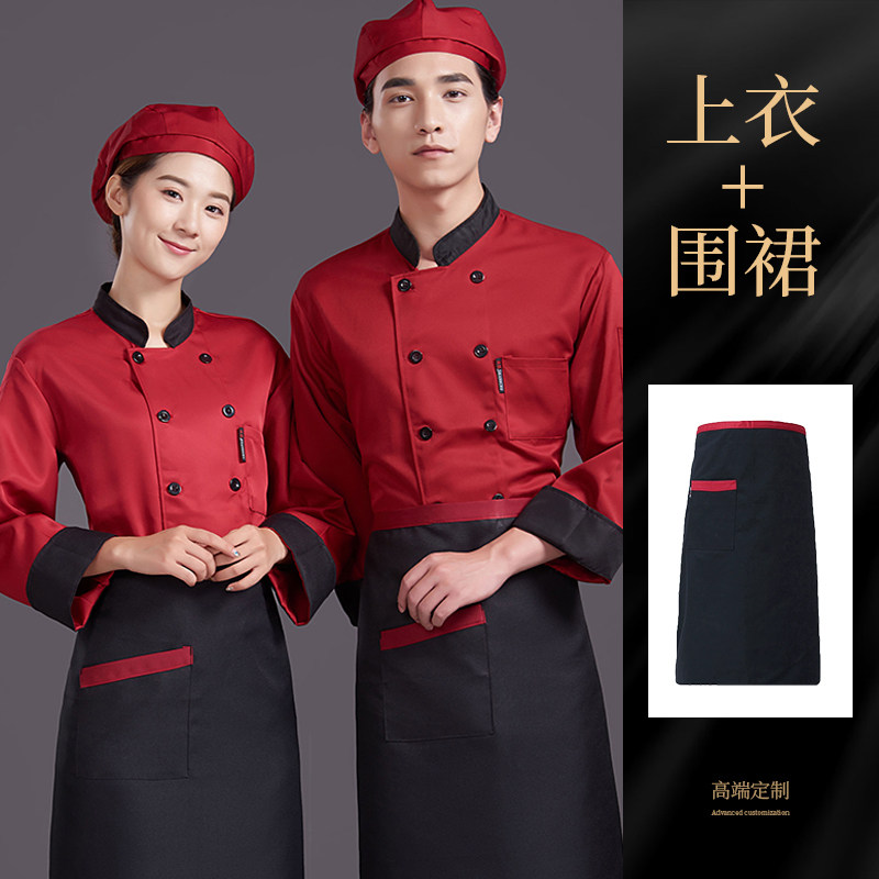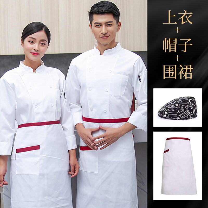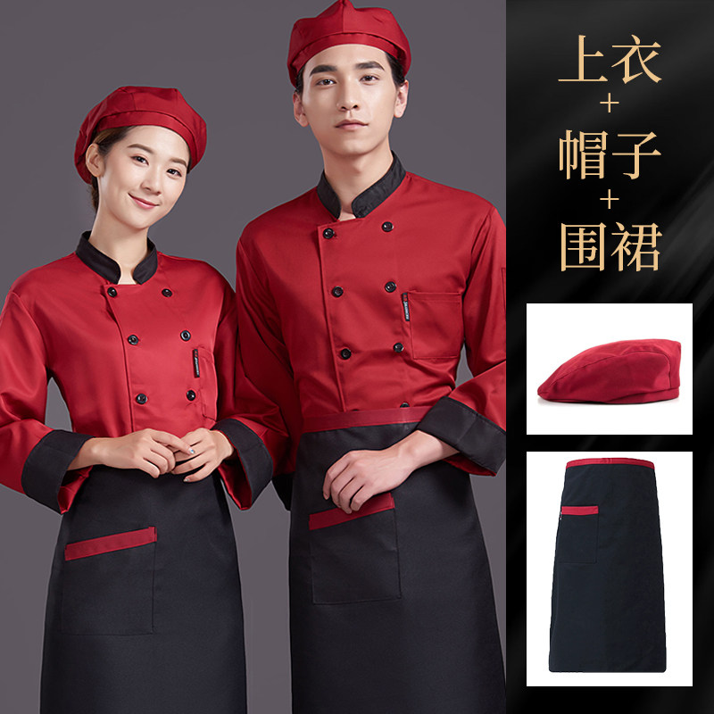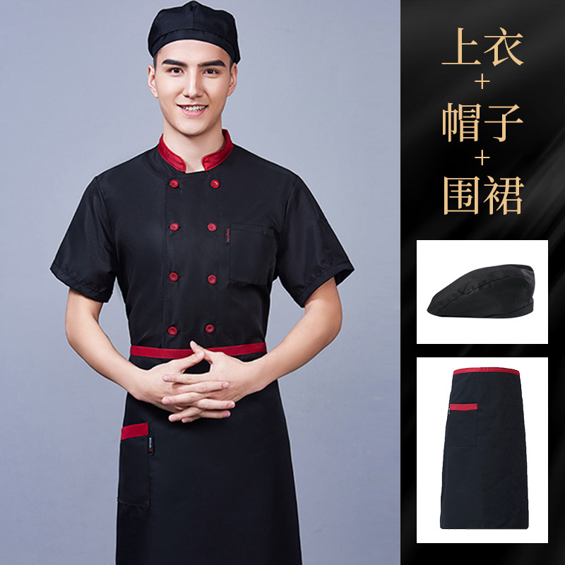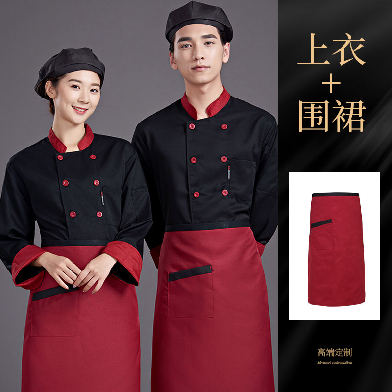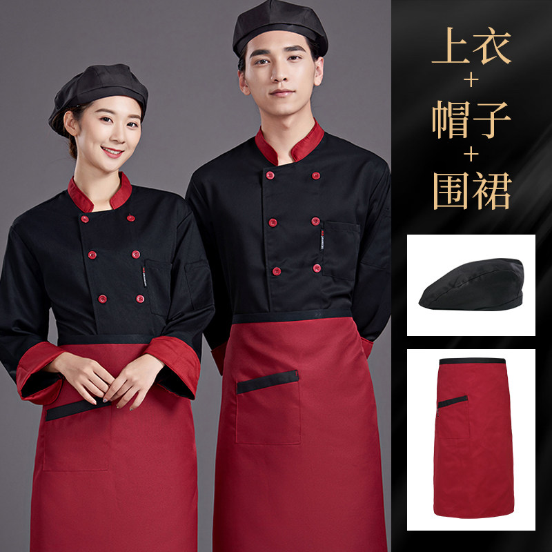厨师服长袖秋冬季装餐饮酒店厨房工作服短袖夏季男黑色女饭店白色