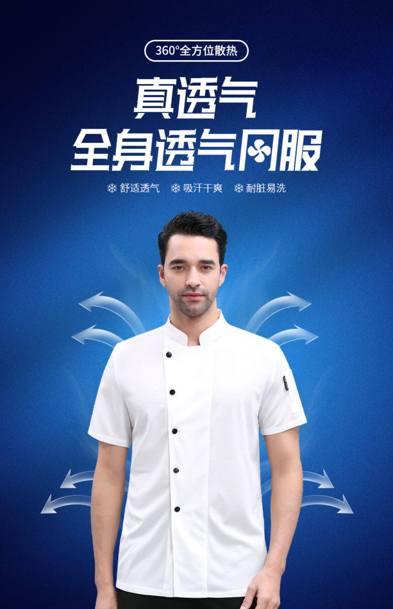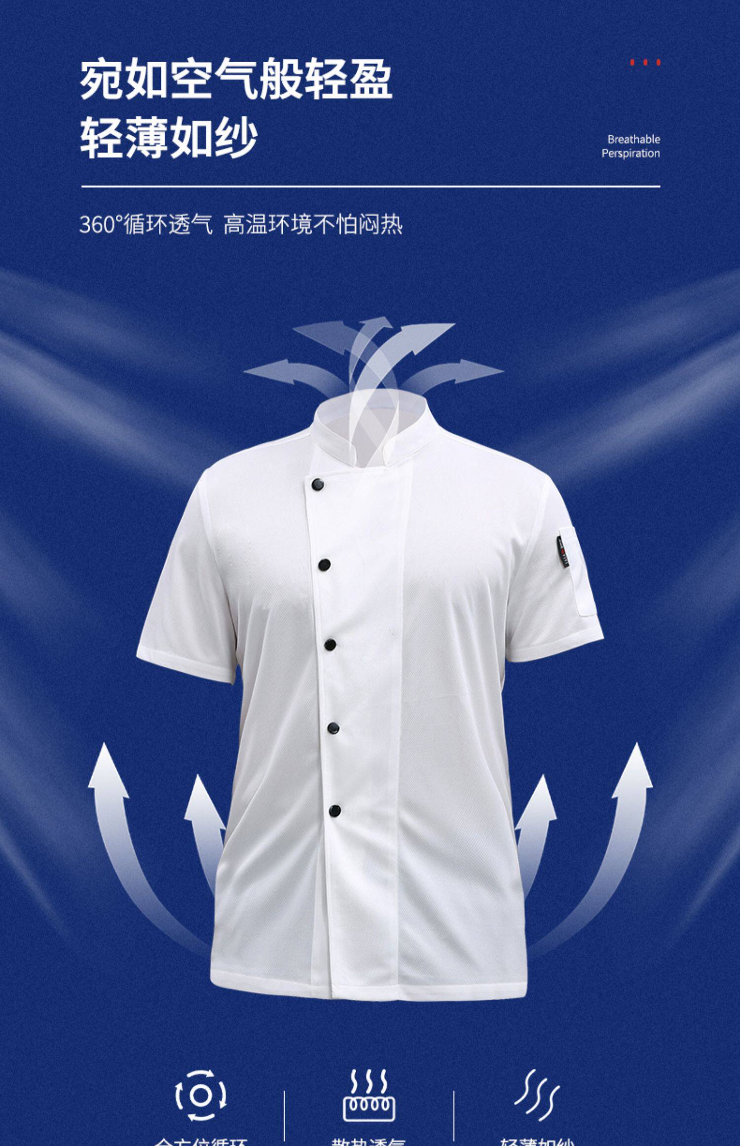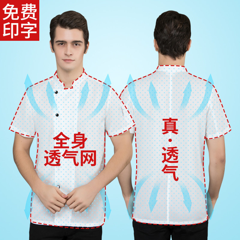 全身透气网厨师工作服短袖男夏季薄款餐饮酒店食堂饭店后厨房工衣