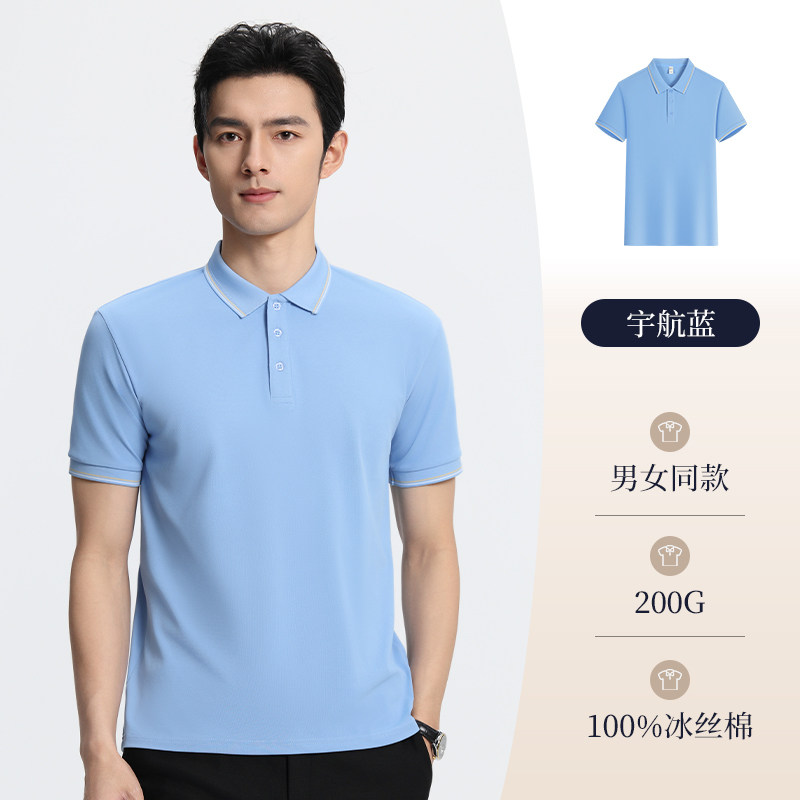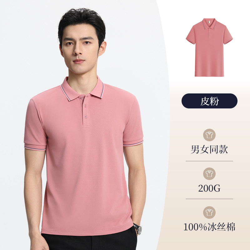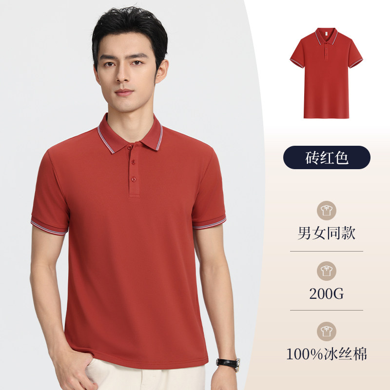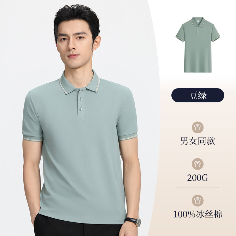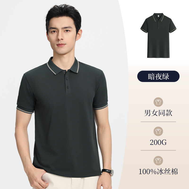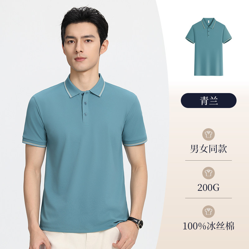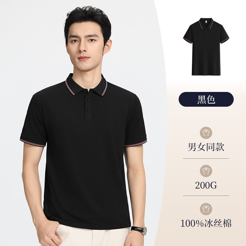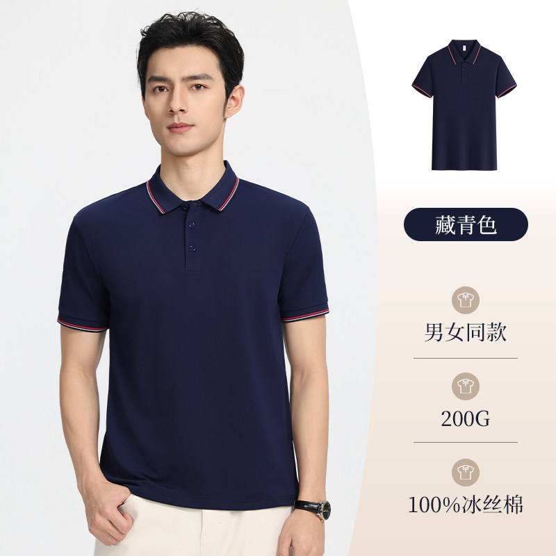 200g冰丝棉翻领POLO衫定制印字logo短袖t恤广告文化衫工作服工装