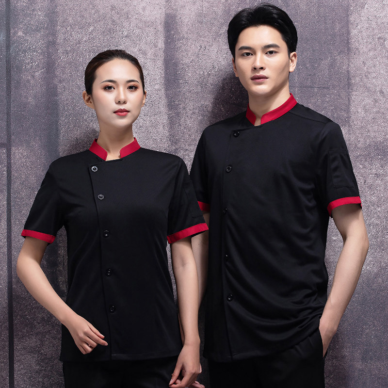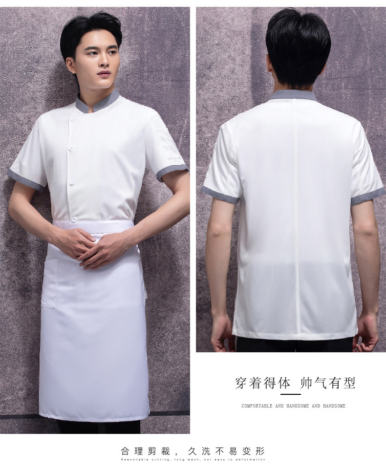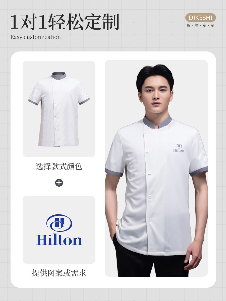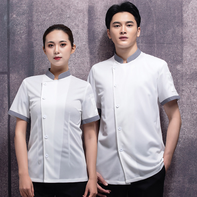 高端厨师工作服短袖透气工装男夏季餐饮酒店早点西餐厅后厨房厨衣