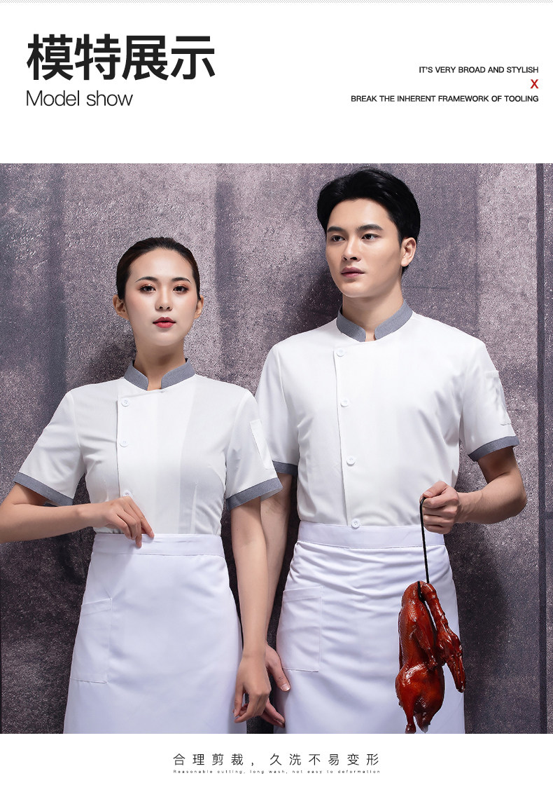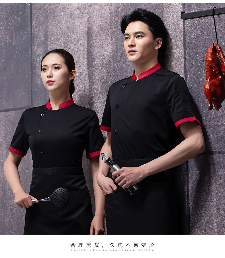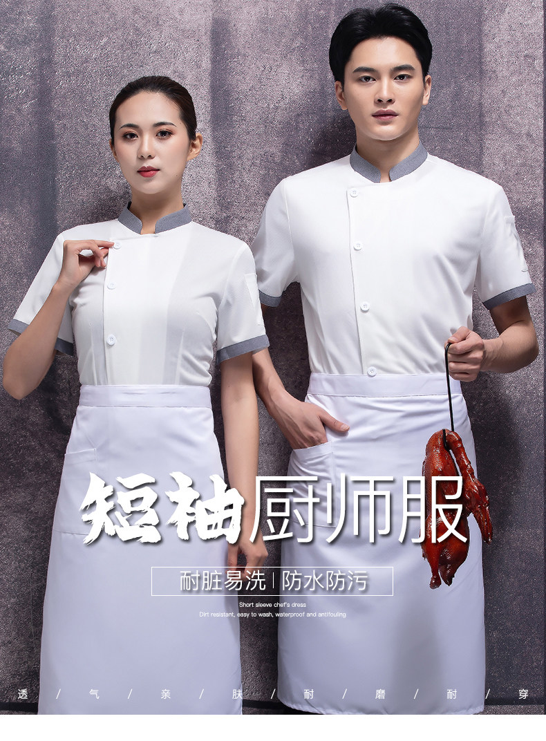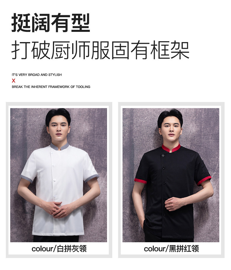 高端厨师工作服短袖透气工装男夏季餐饮酒店早点西餐厅后厨房厨衣