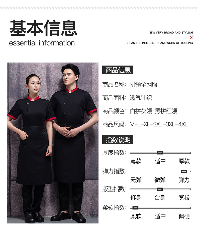 高档透气厨师工作服短袖服装男餐饮餐厅厨房后厨面点师弹力半袖女