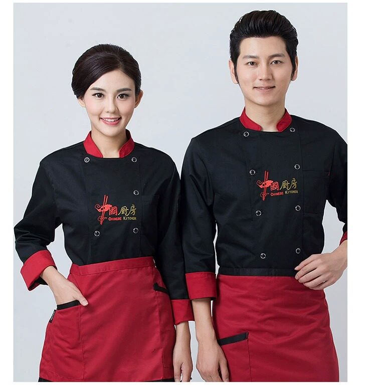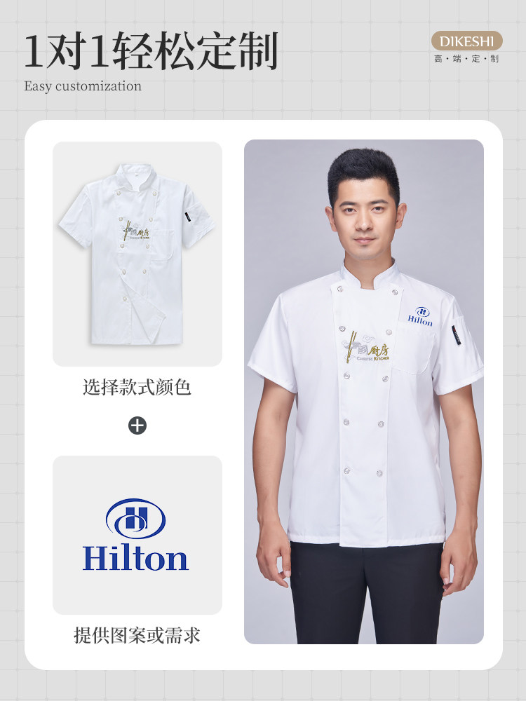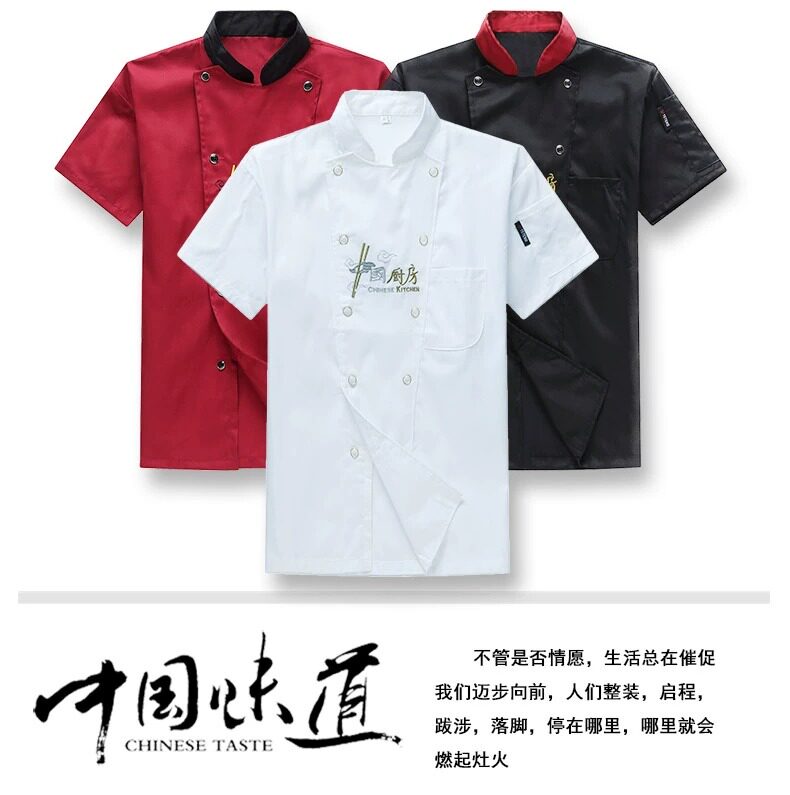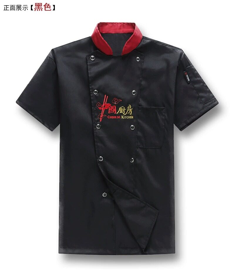 中国厨房黑色厨师餐饮工作服装男定制logo长短袖餐厅饭店食堂工衣