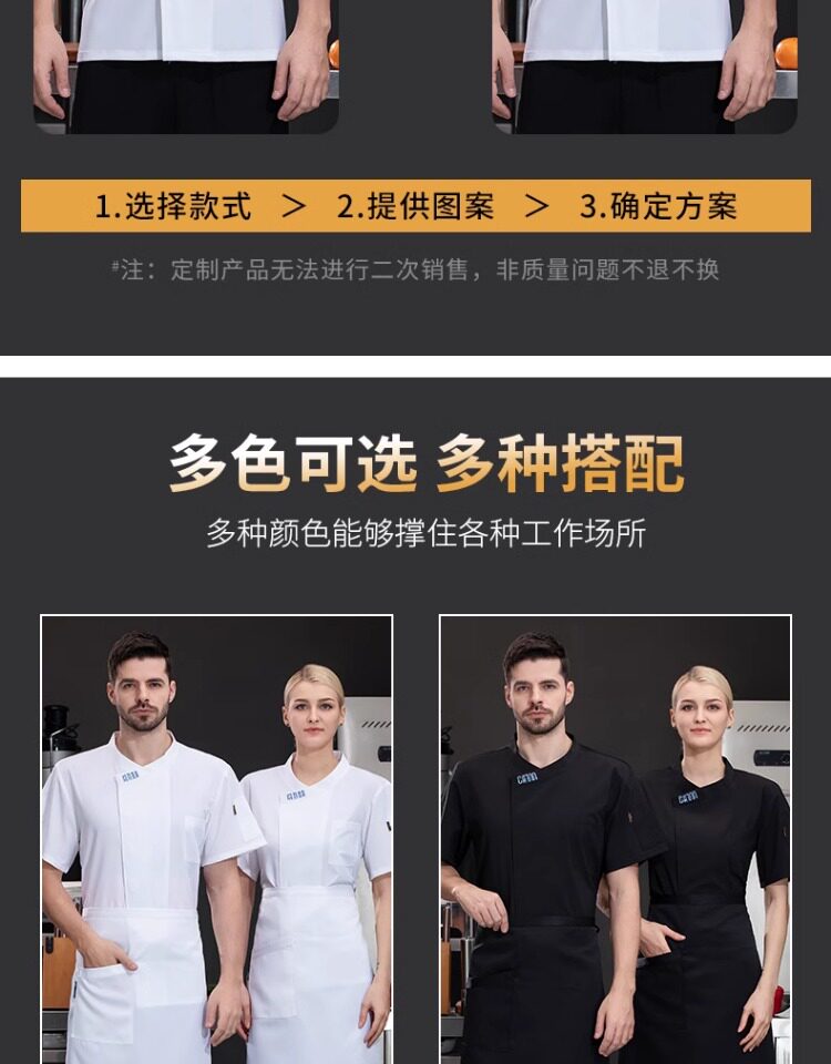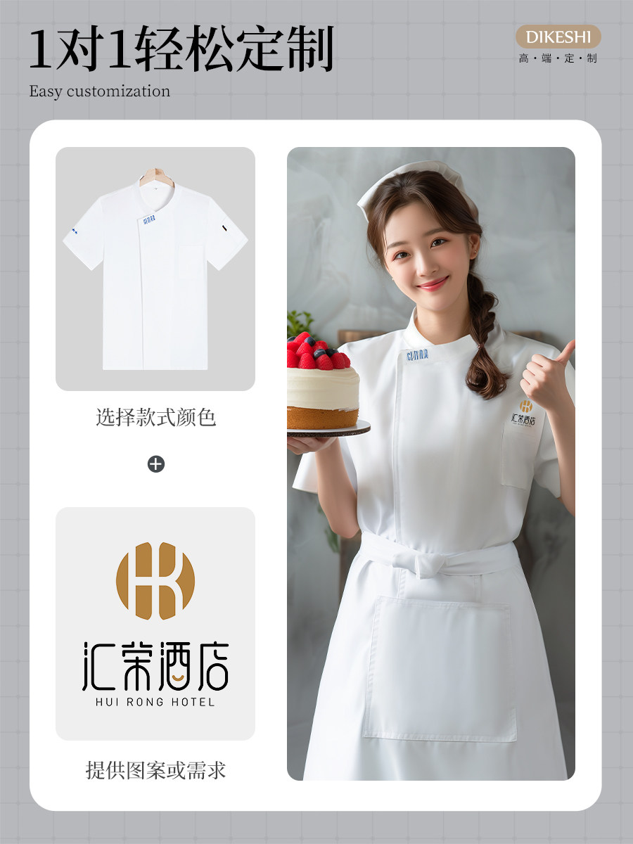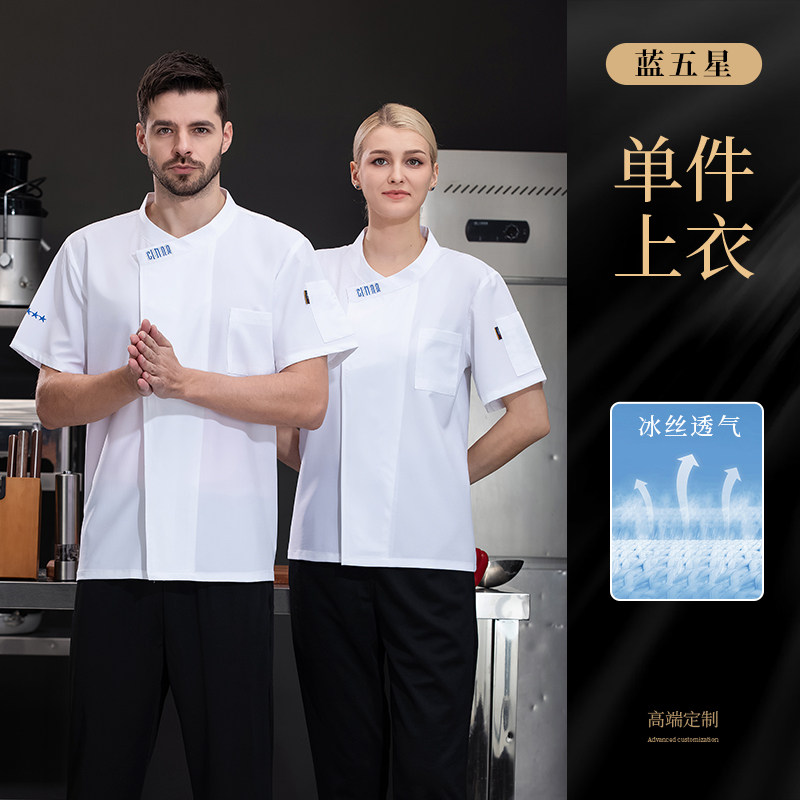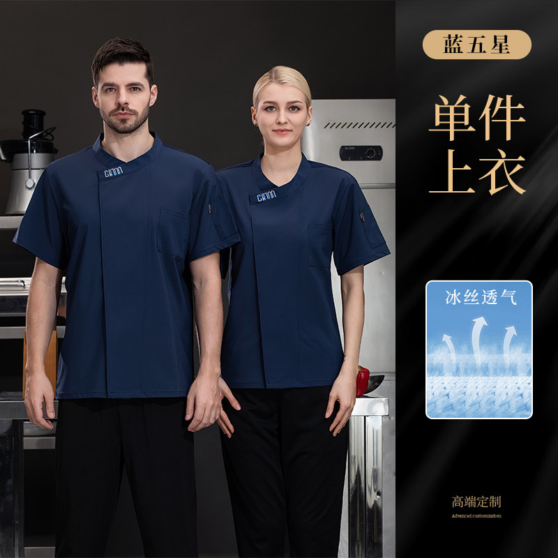 高档冰丝厨师工作服夏季短袖餐饮烘焙蛋糕店厨房工衣透气套装定制