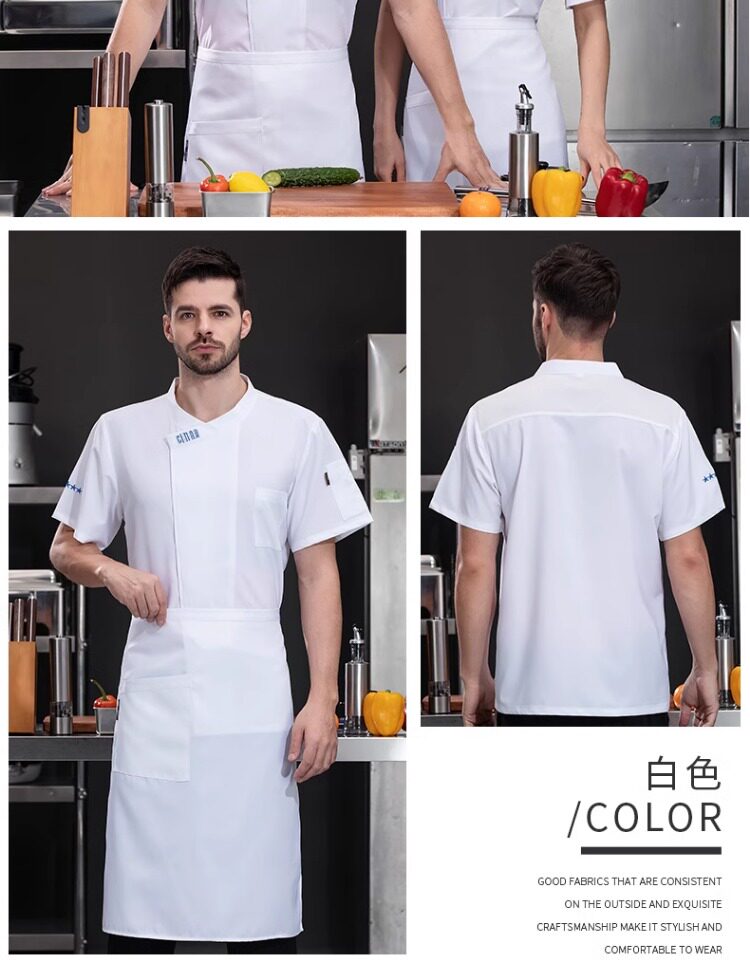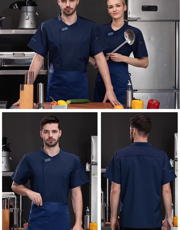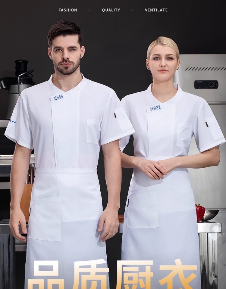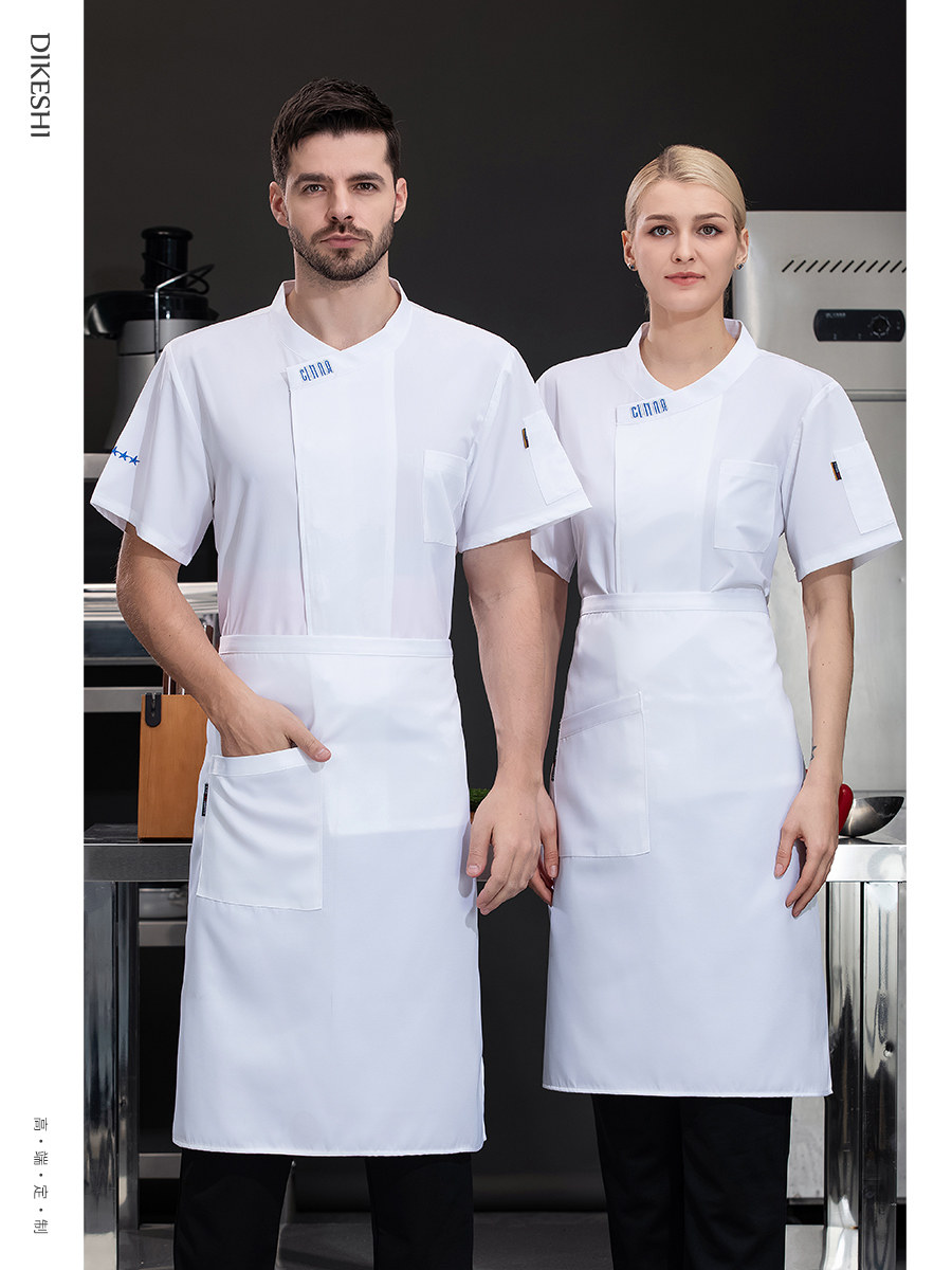 高档冰丝厨师工作服夏季短袖餐饮烘焙蛋糕店厨房工衣透气套装定制