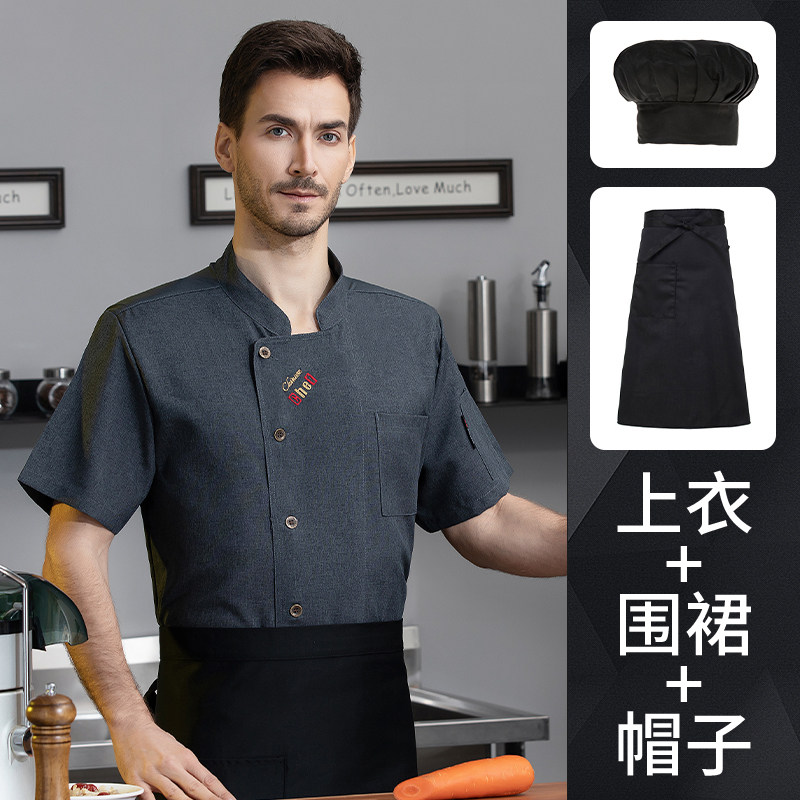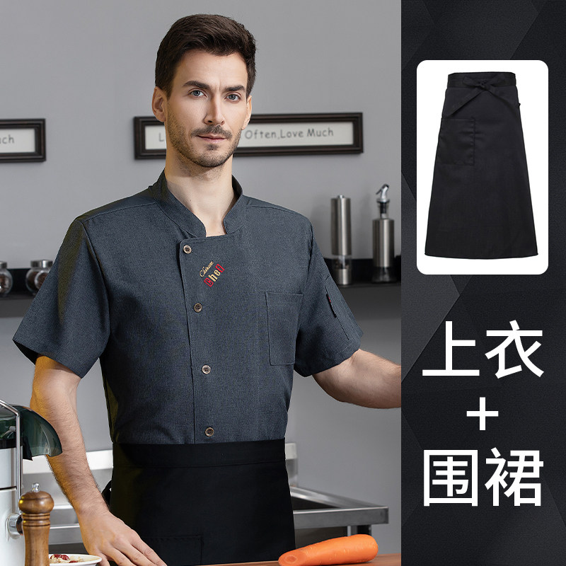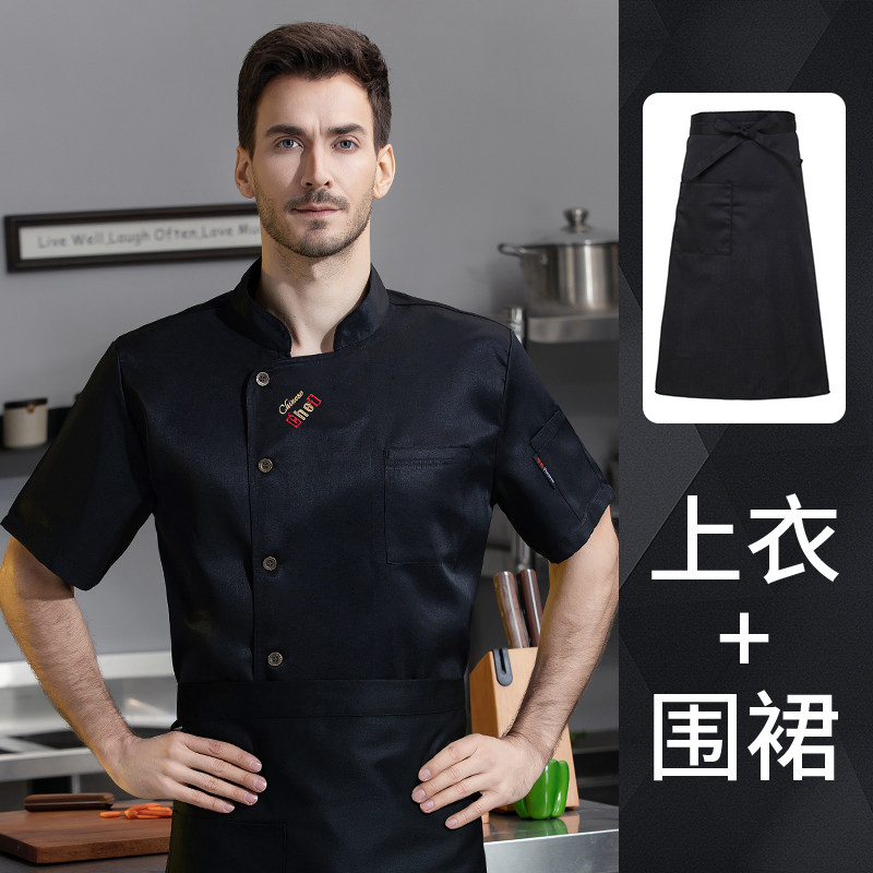 夏季短袖厨师工作服酒店饭店烘培蛋糕店厨房定制薄款透气网服装男