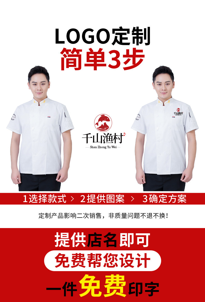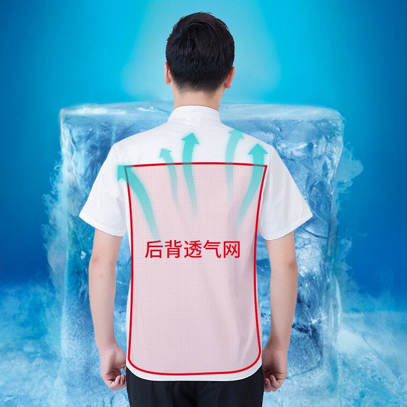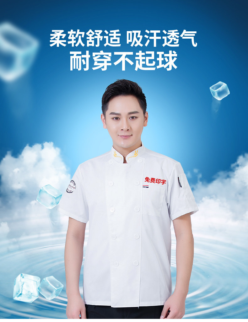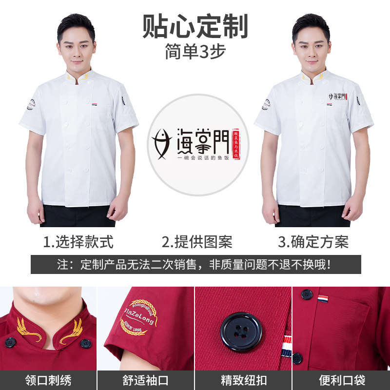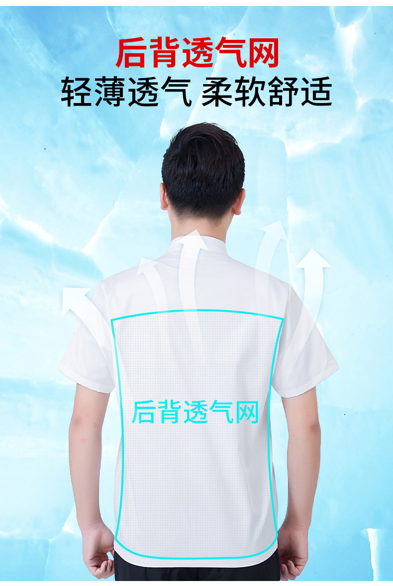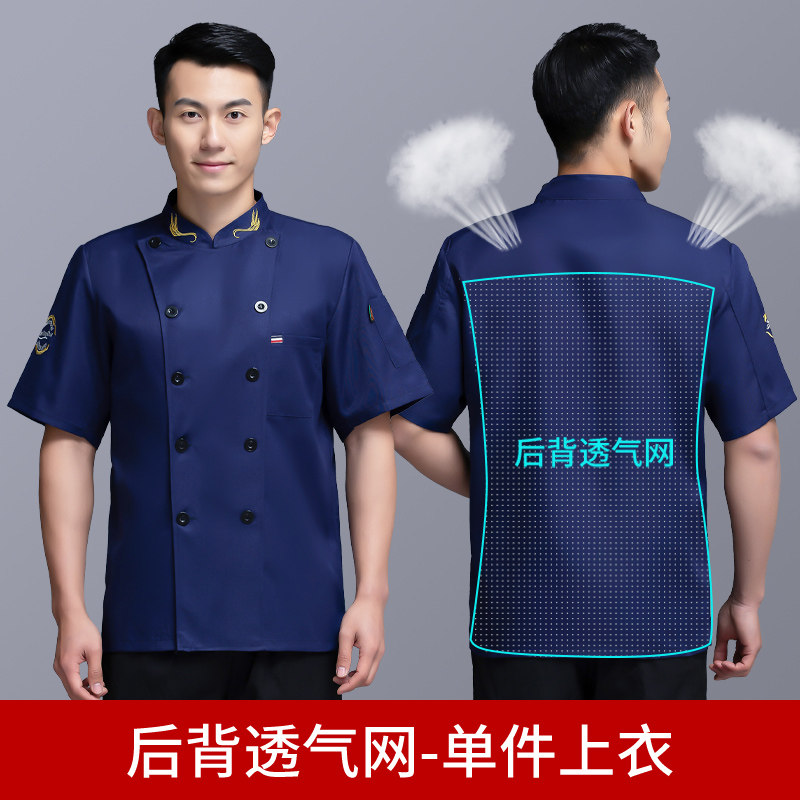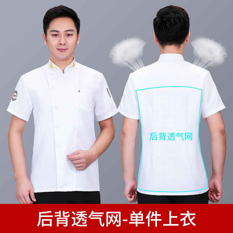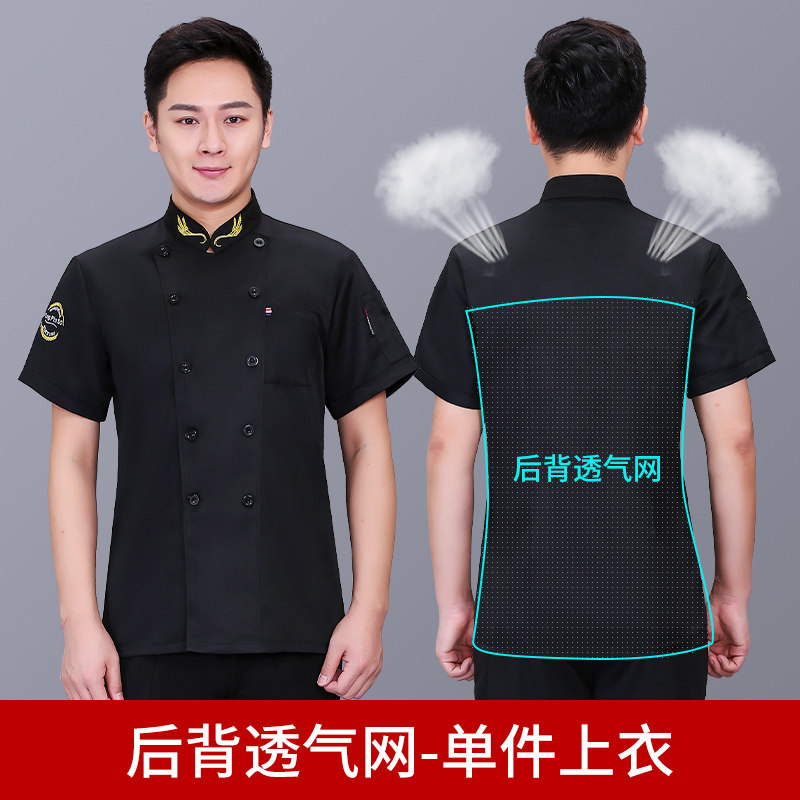 后背透气网厨师工作服短袖男后厨房定制印logo夏季餐饮饭店女衣服