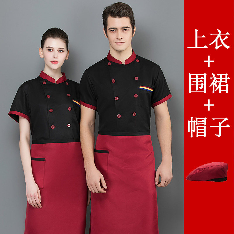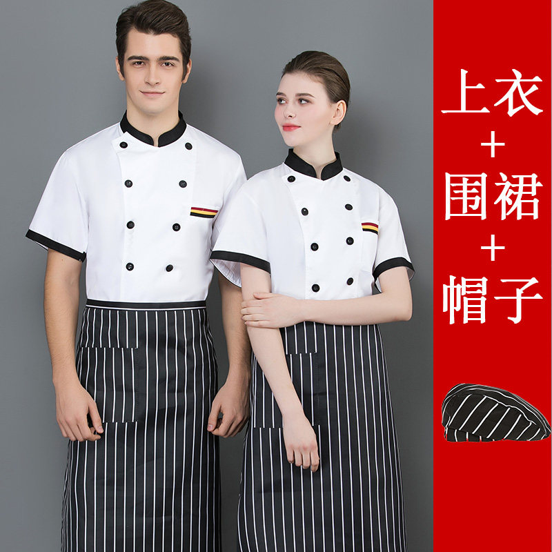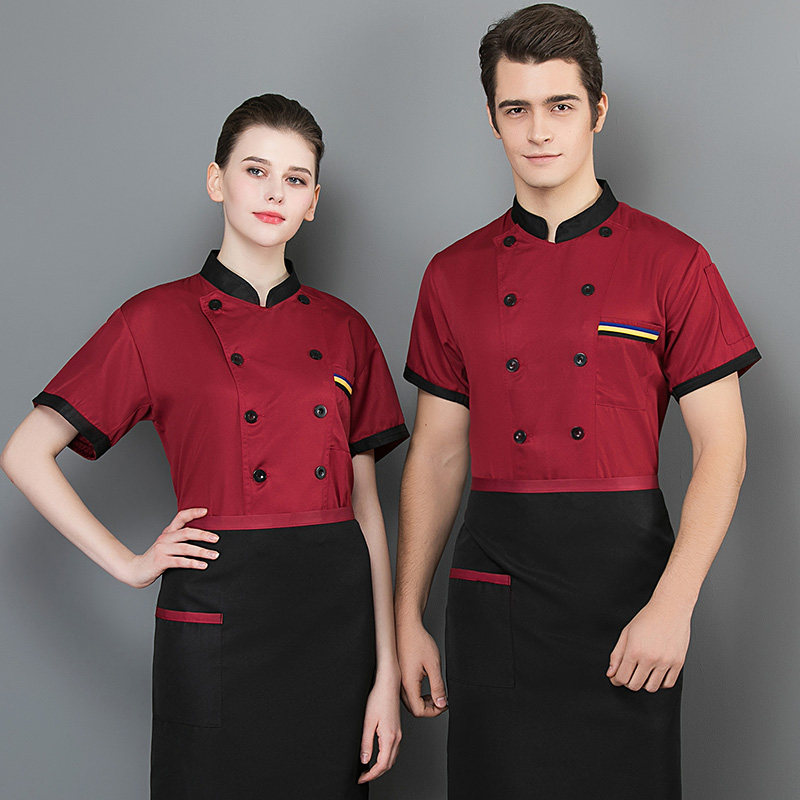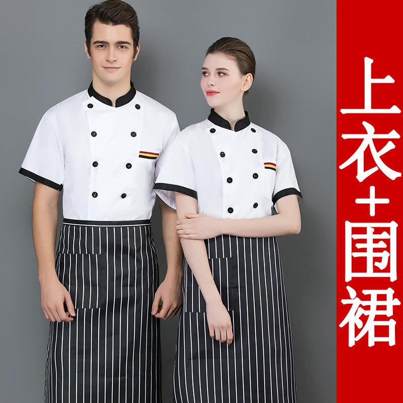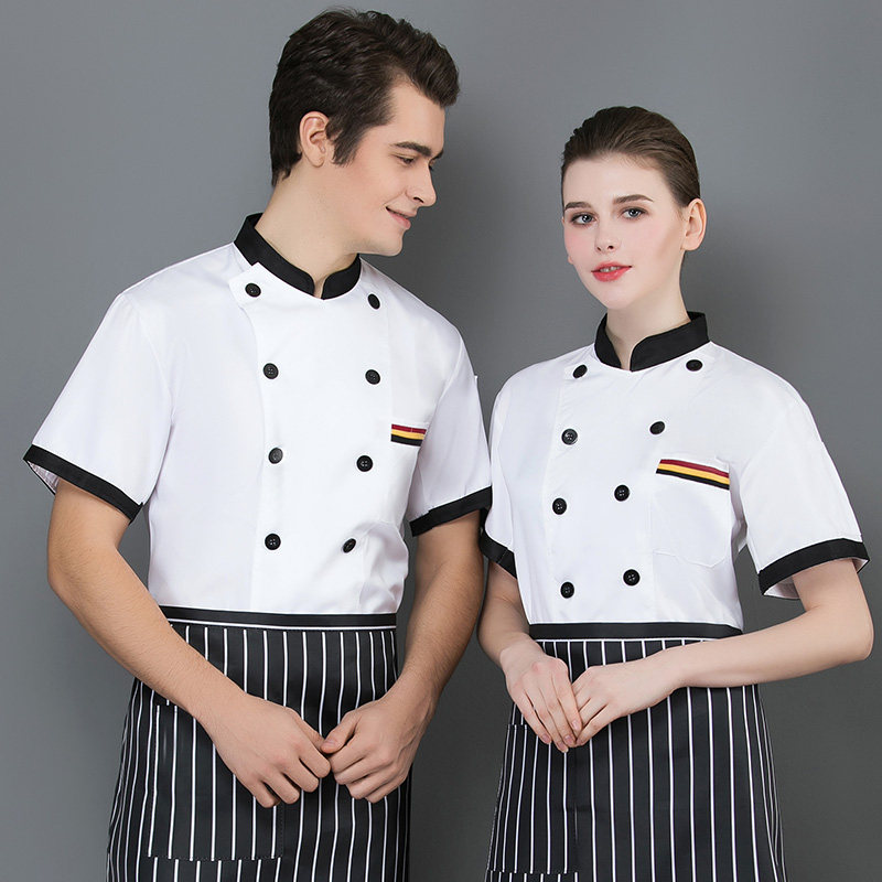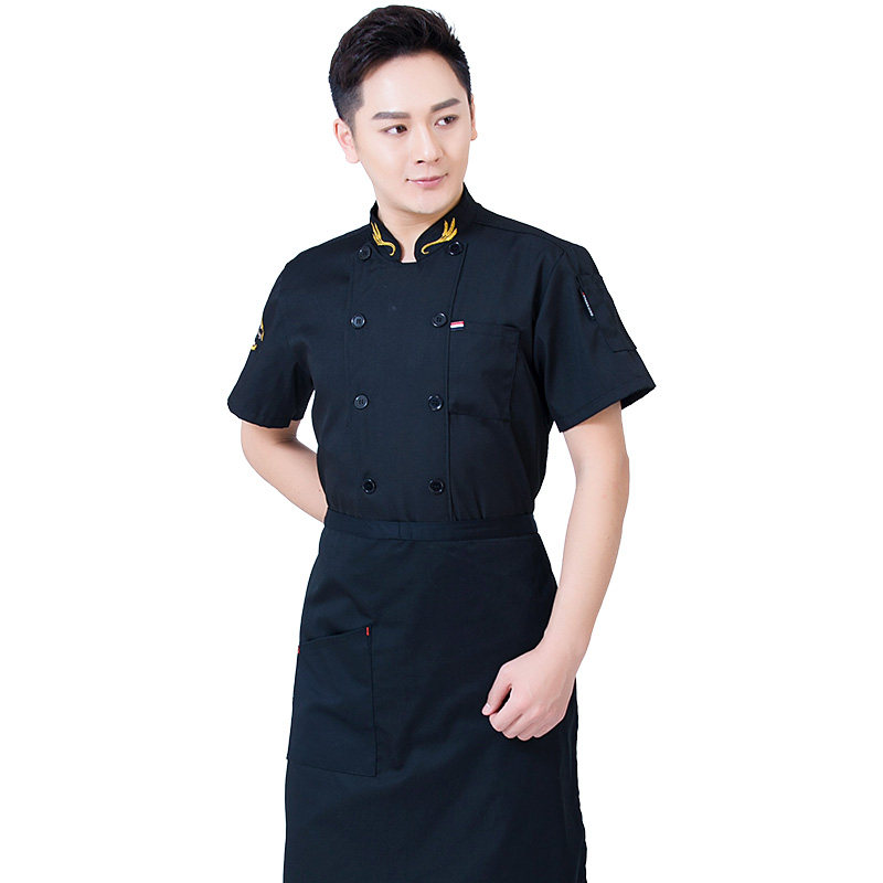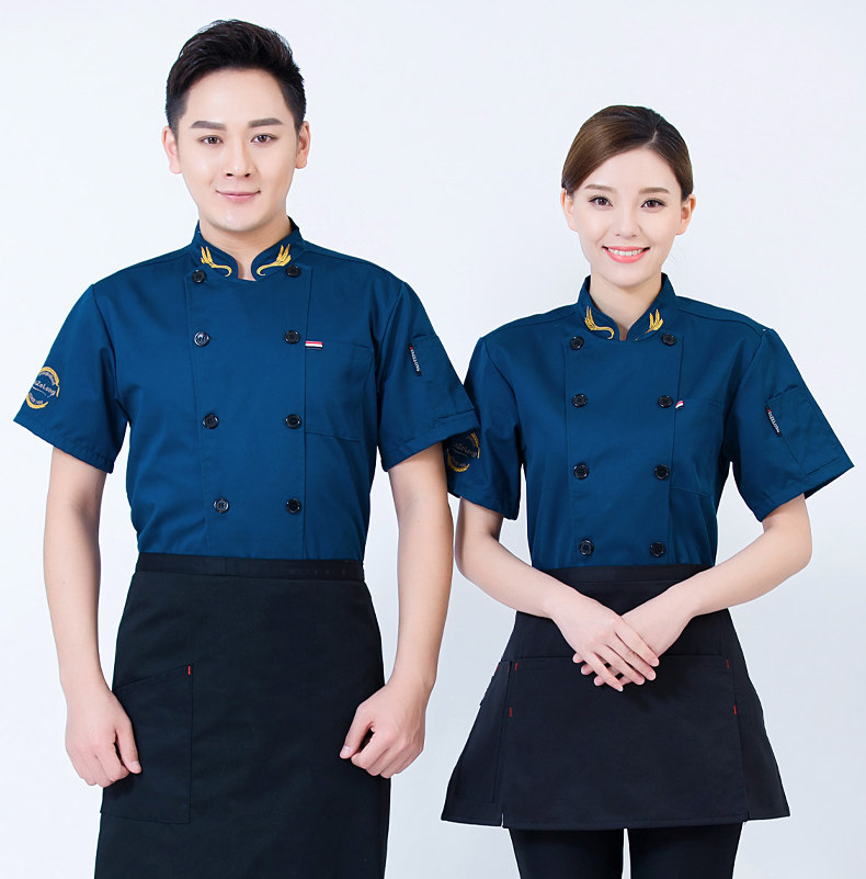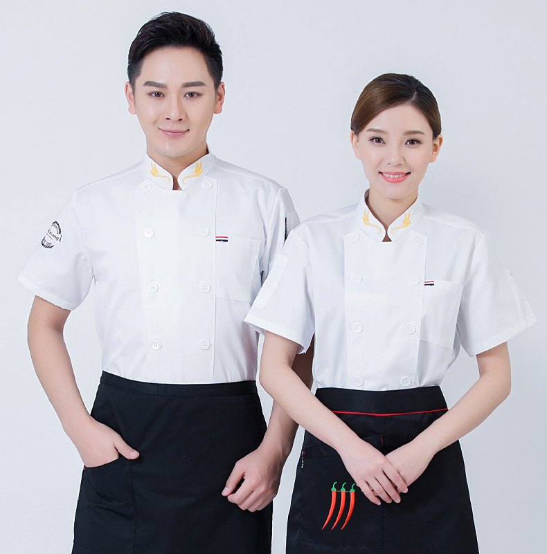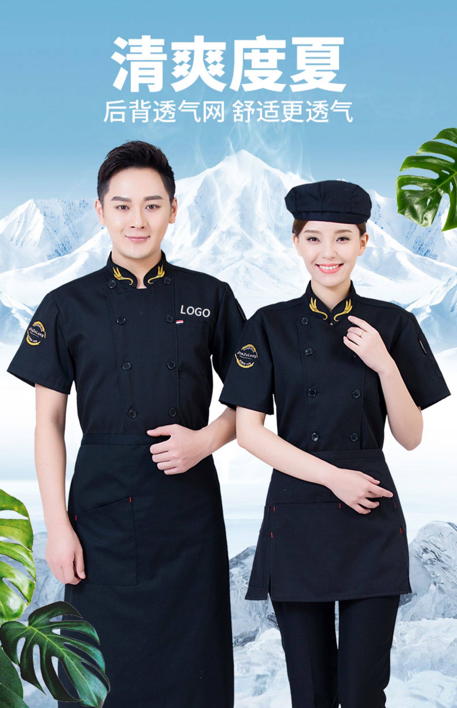 后背透气网厨师工作服短袖男后厨房定制印logo夏季餐饮饭店女衣服