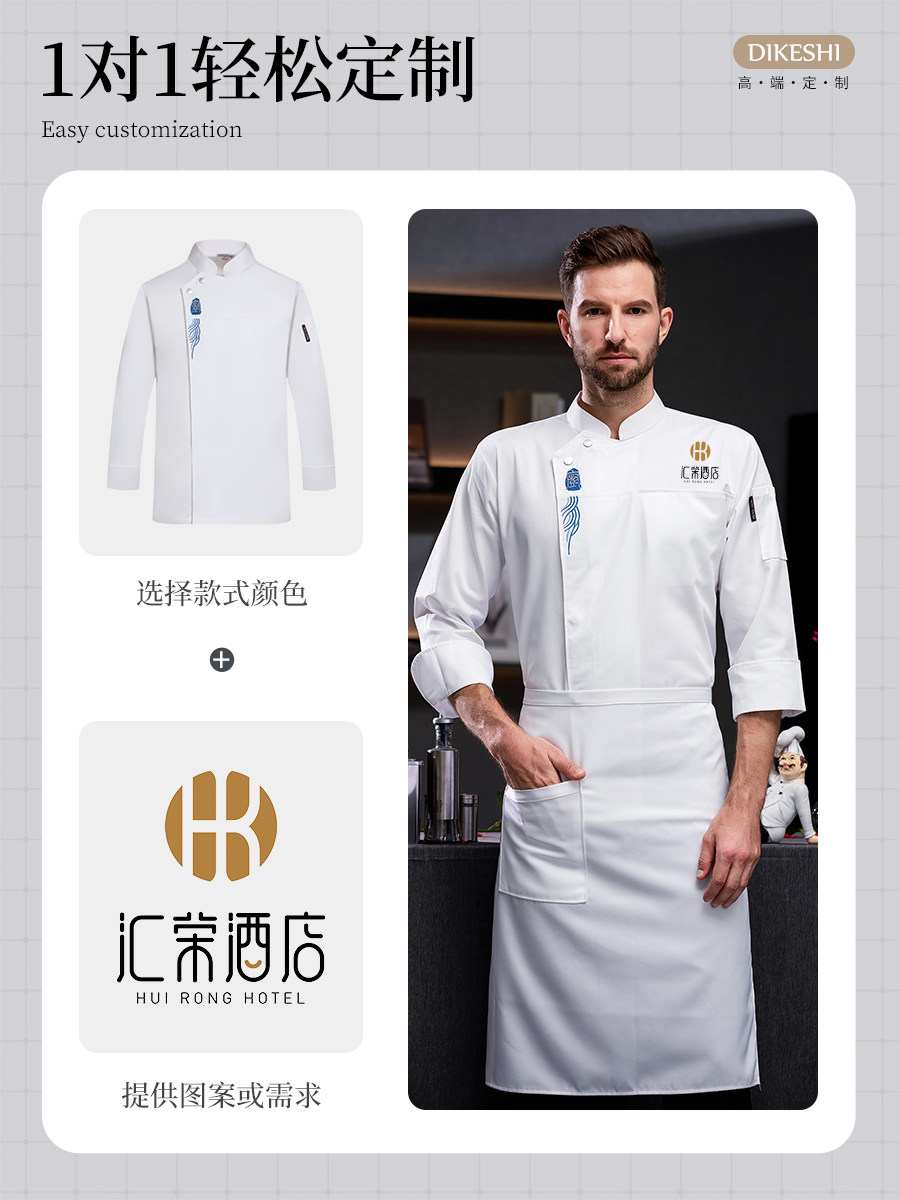 高端厨师工作服长袖秋冬季酒店餐厅厨房衣服餐饮西点烘焙服装定制
