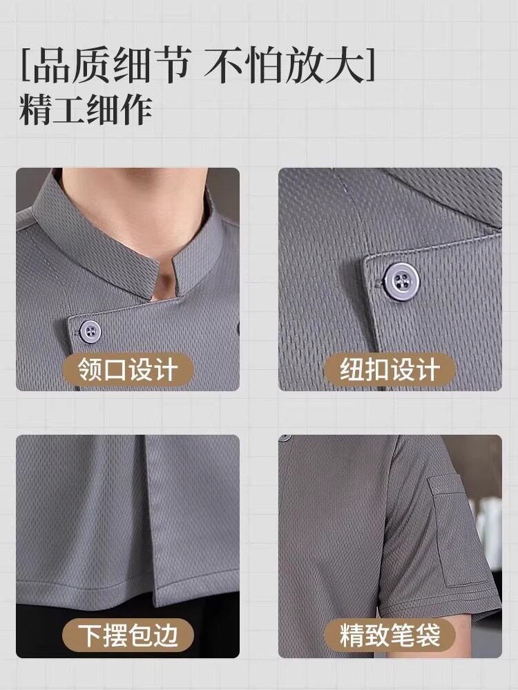新款透气网厨师工作服夏季凉感短袖餐饮饭店食堂酒店厨衣薄款服装