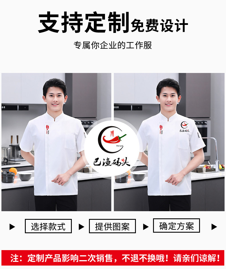 夏季厨师工作服定制印logo男面点烘焙餐饮厨房蛋糕店服装刺绣订做