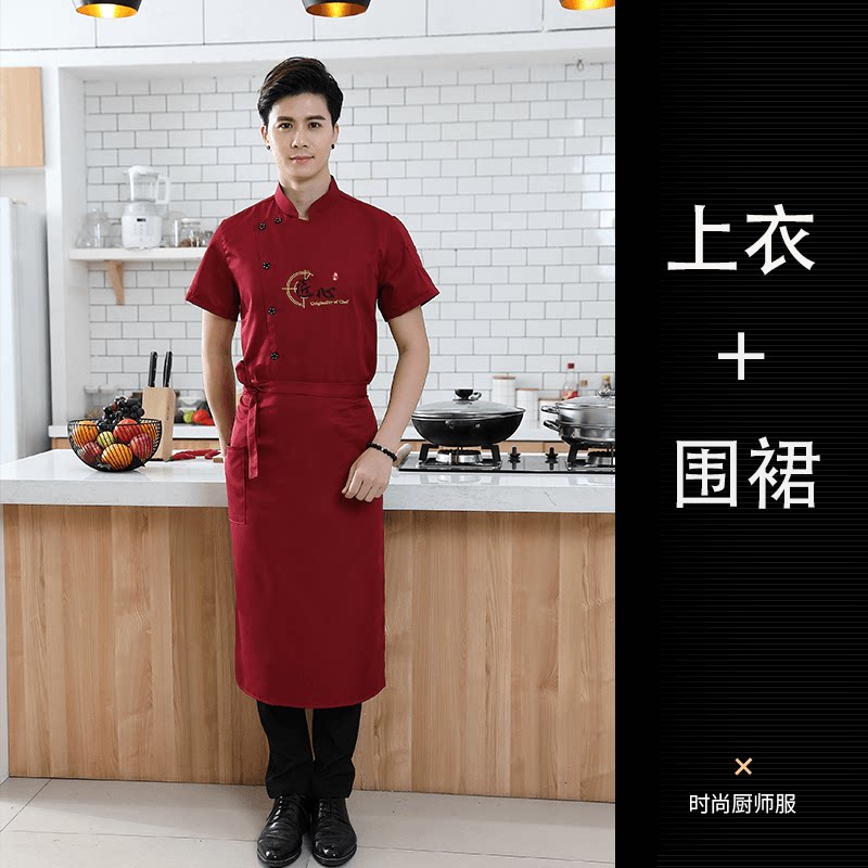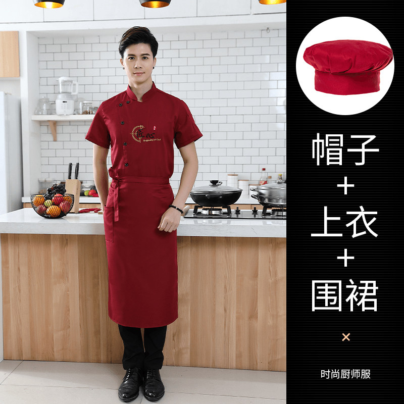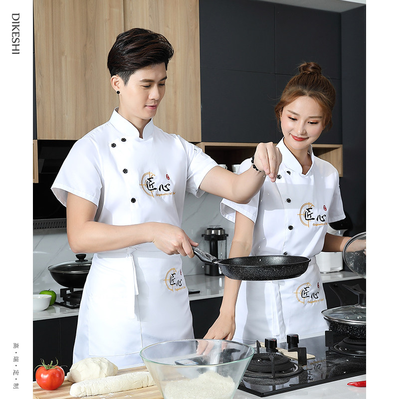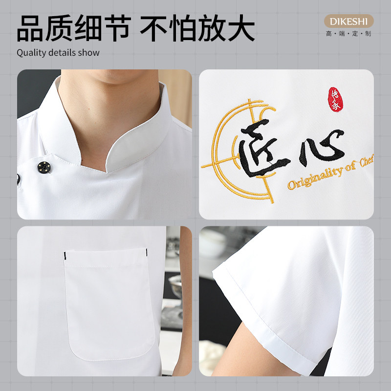 高端厨师工作服短袖透气工装男夏季餐饮酒店早点西餐厅后厨房厨衣