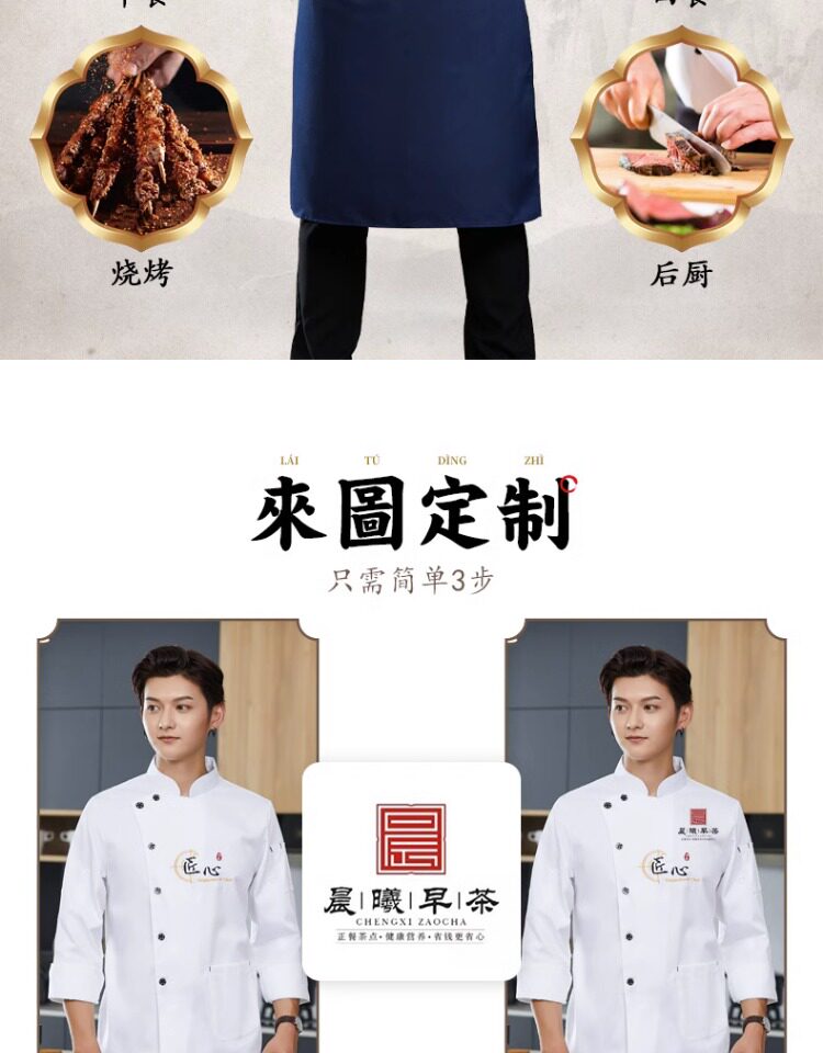 高档定制厨师工作服烘焙蛋糕海鲜火锅店餐厅后厨房衣服餐饮工装男