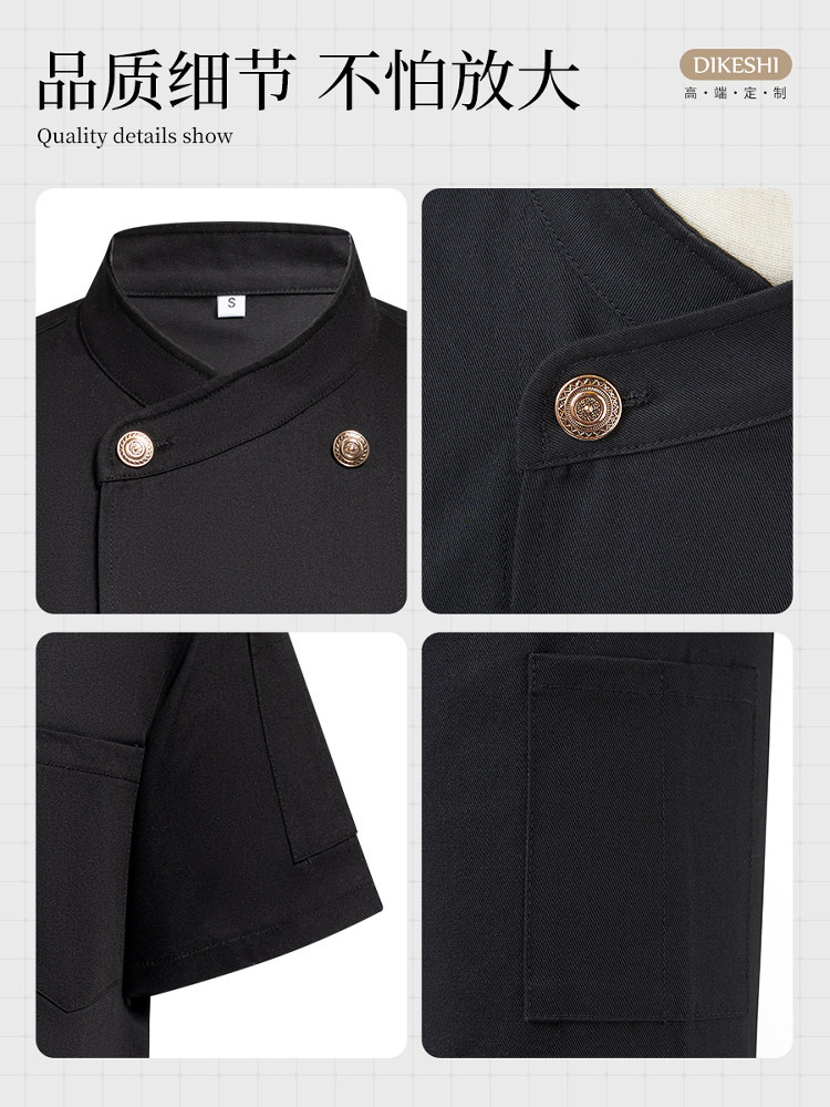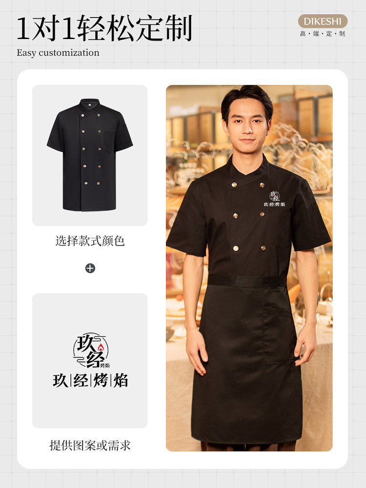 高端纯棉厨师工作服短袖夏季薄款餐饮星级酒店餐厅总厨房服装定制
