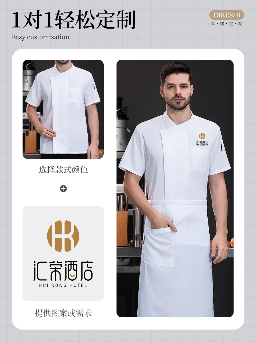 白色厨师工作服短袖薄款透气春季酒店饭店餐厅厨房后厨长袖服装男