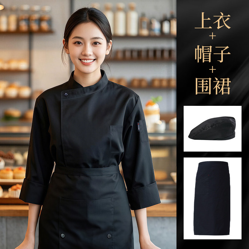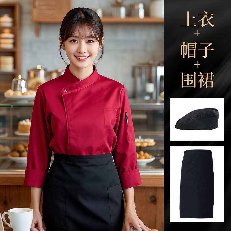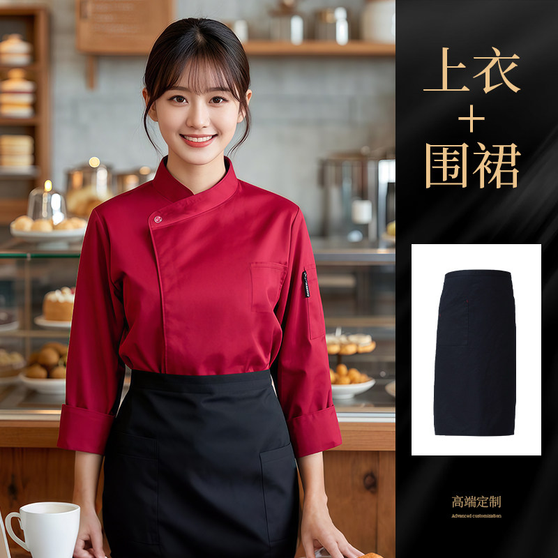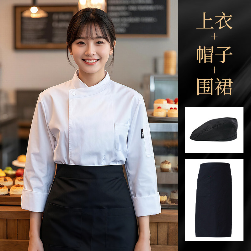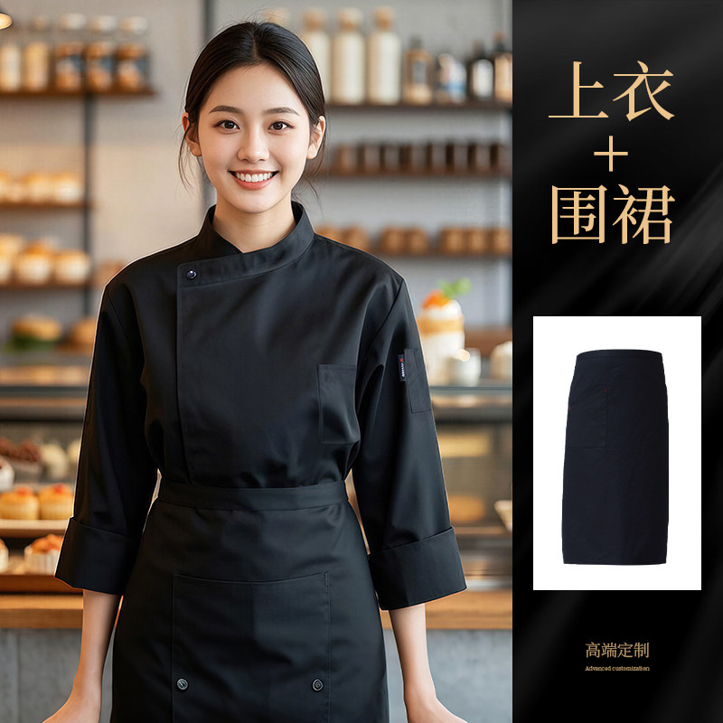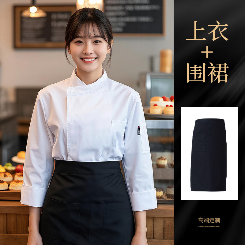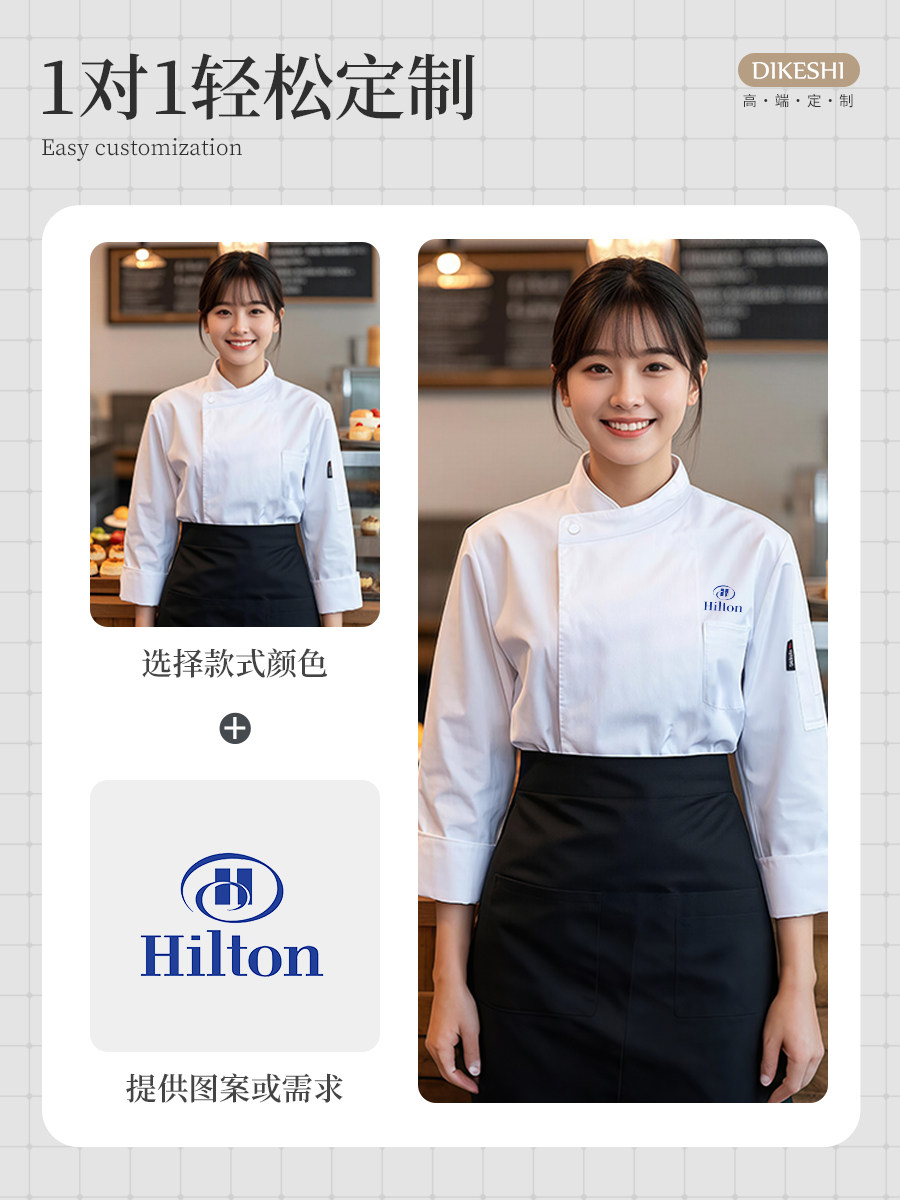 高端烘焙厨师工作服定制餐饮蛋糕店学员裱花师厨房长袖厨师衣服女