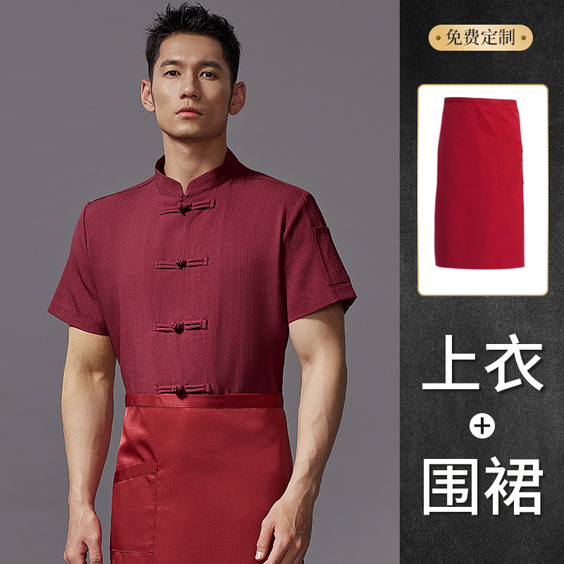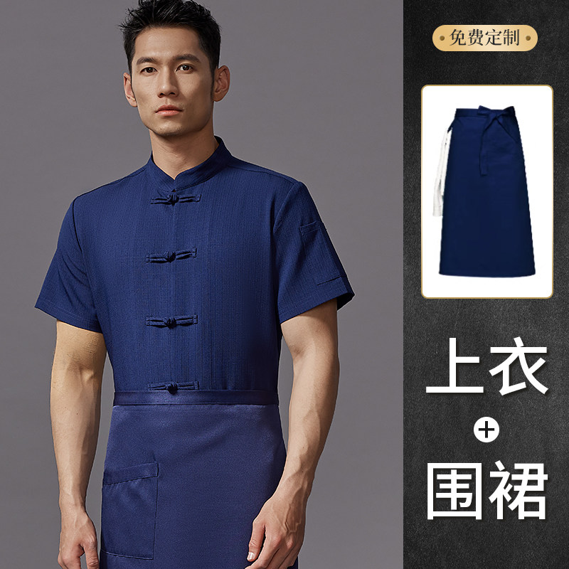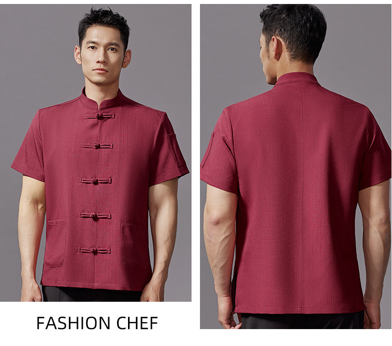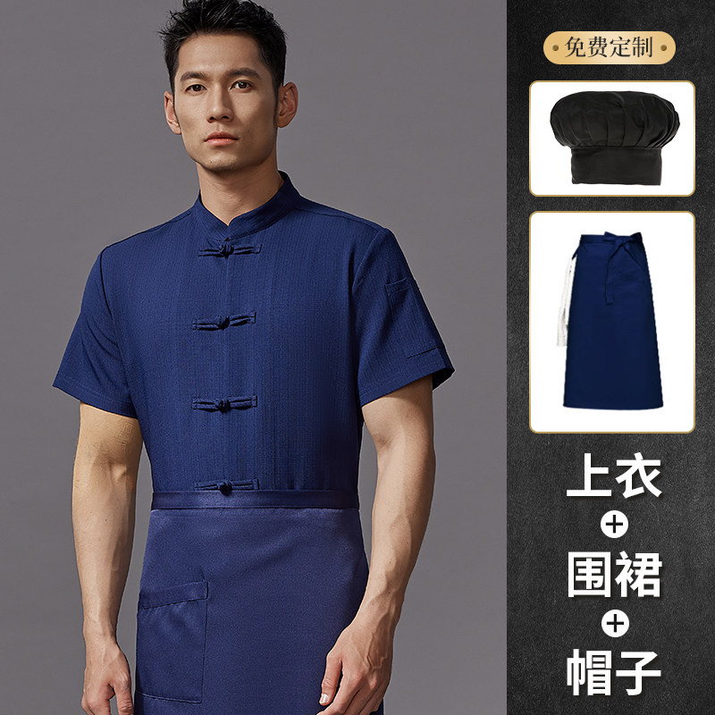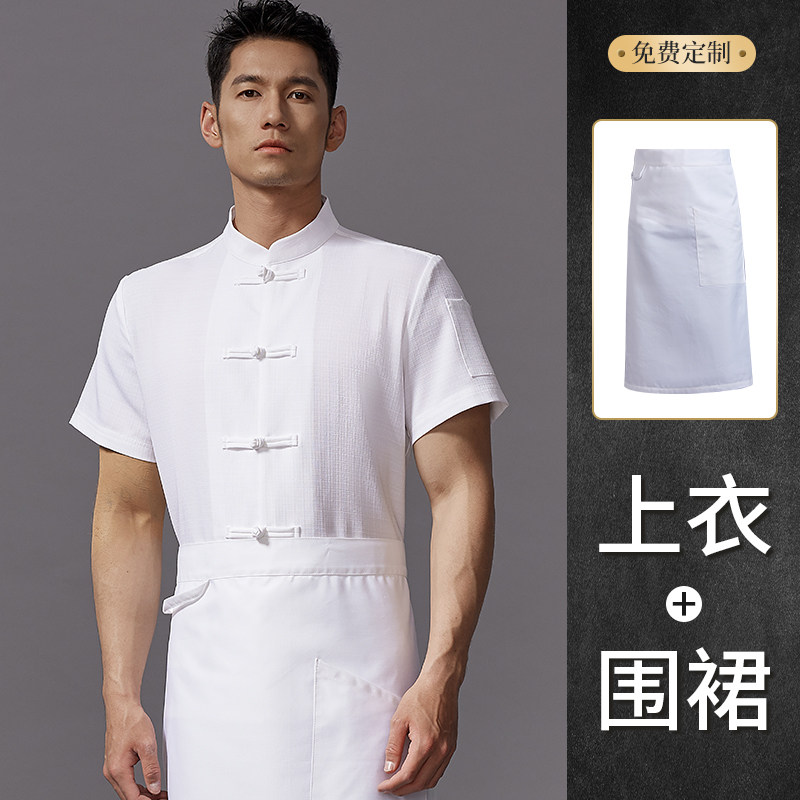 高端中式厨师工作服短袖夏季餐饮酒店饭店厨房衣服薄款透气套装男