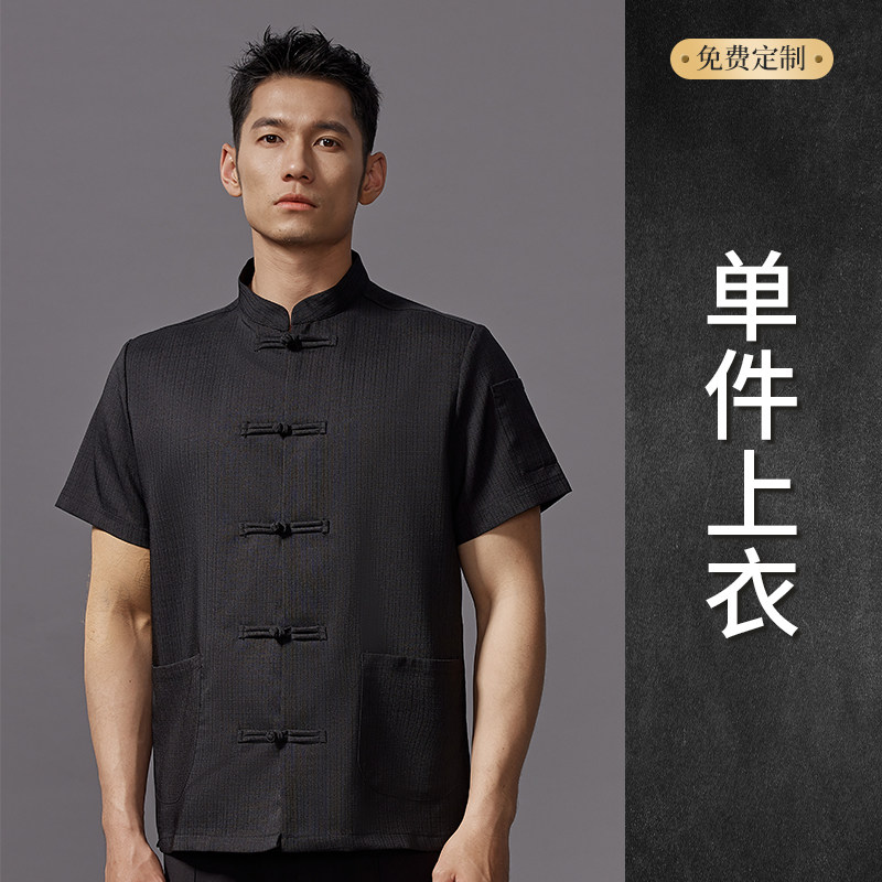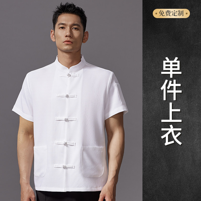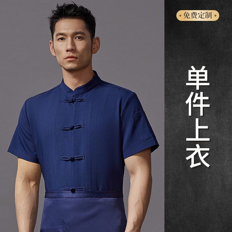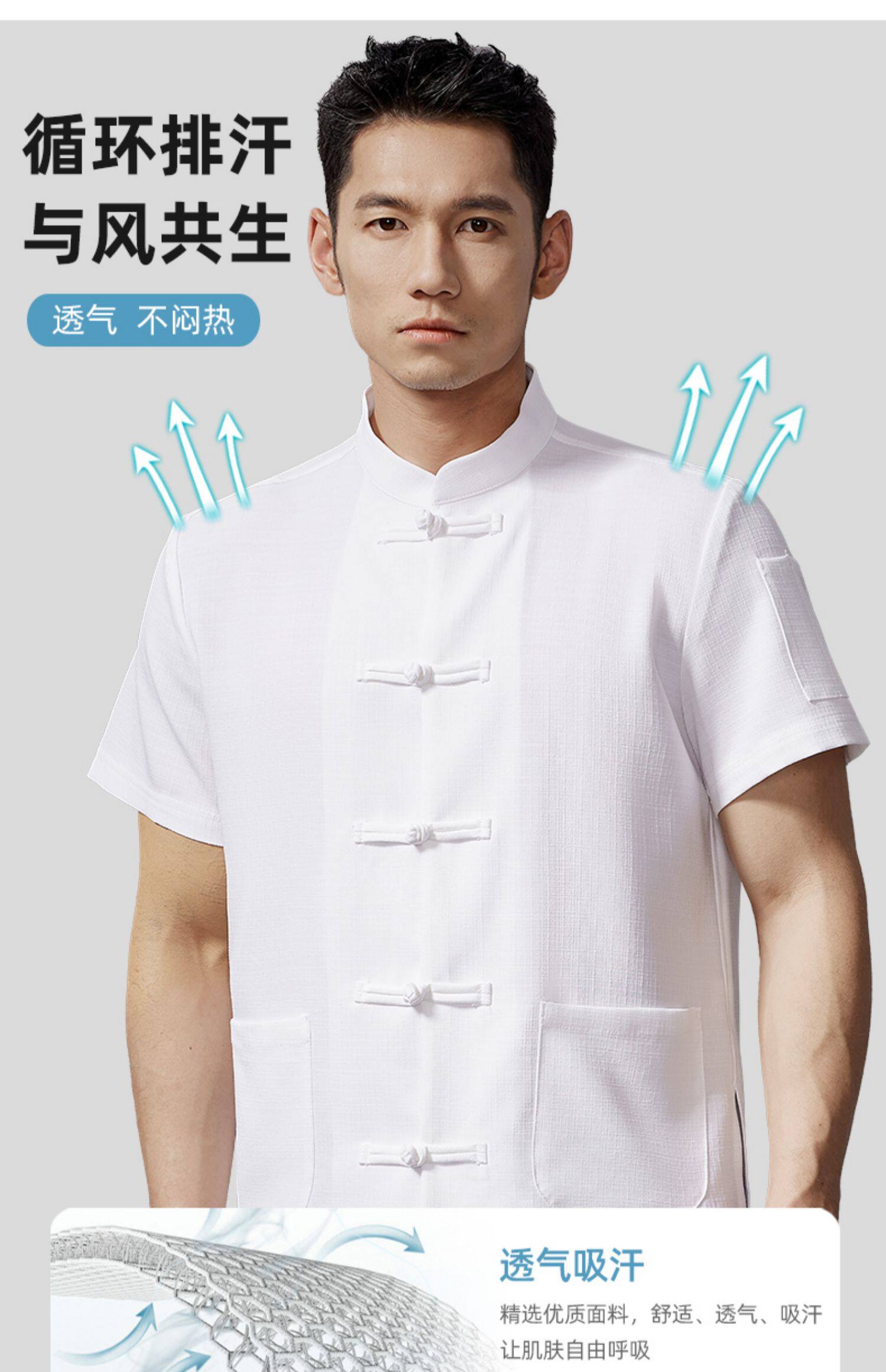 高端中式厨师工作服短袖夏季餐饮酒店饭店厨房衣服薄款透气套装男