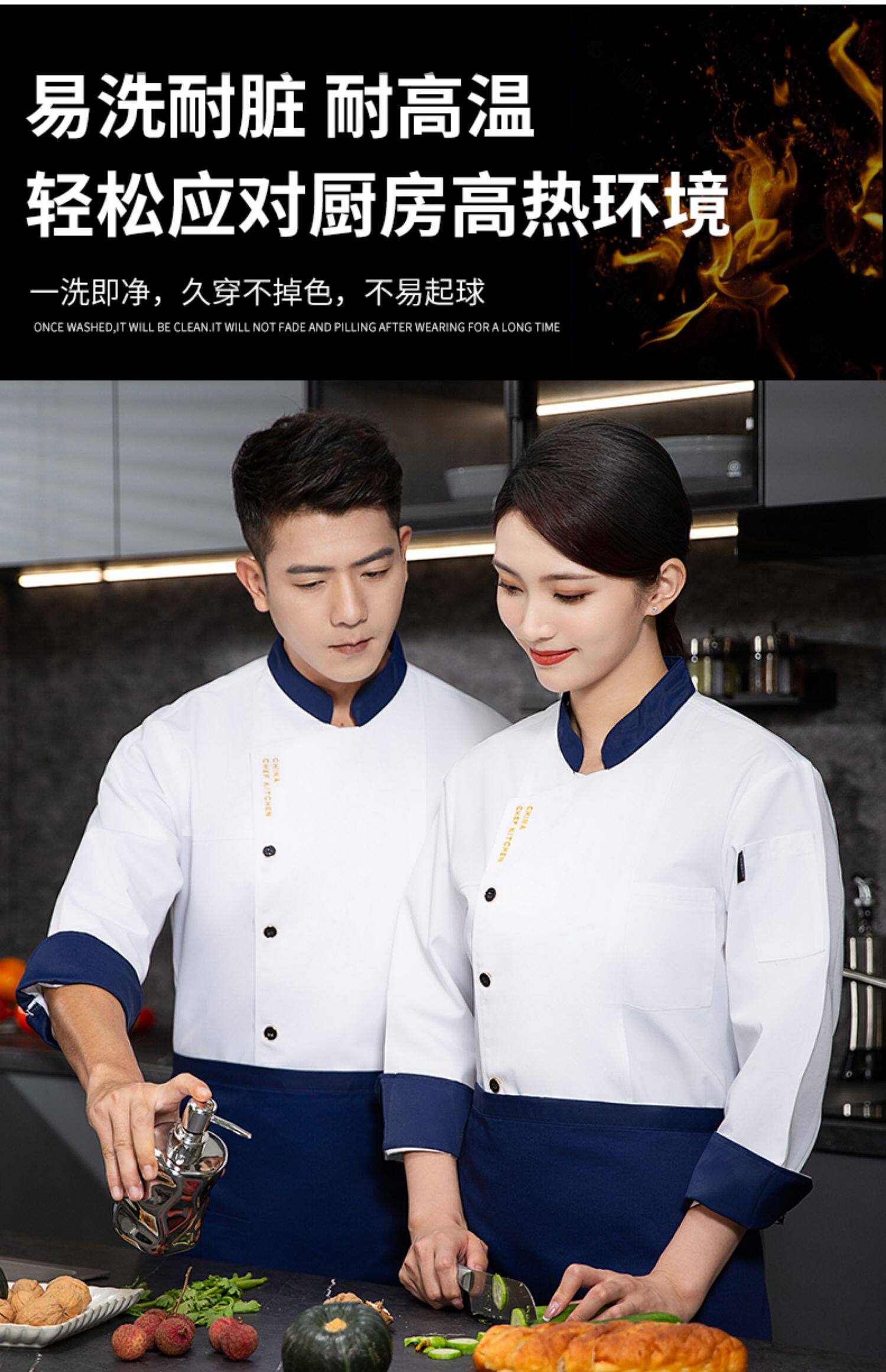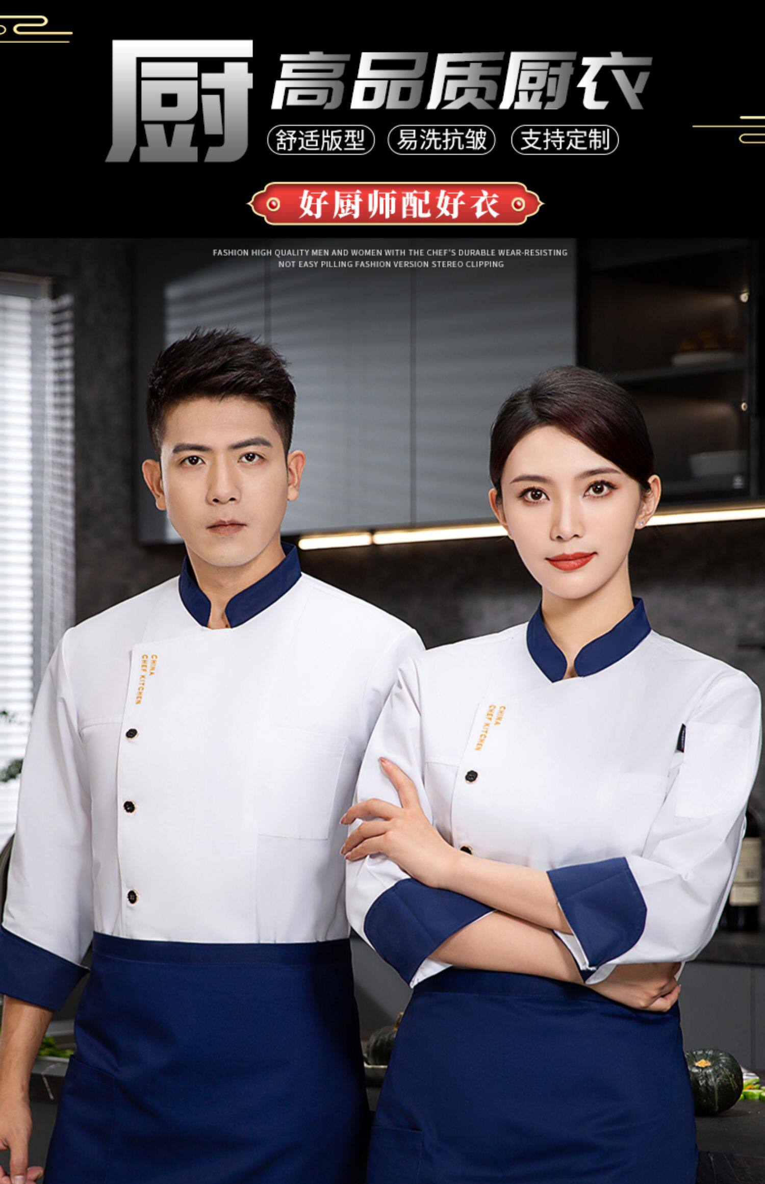 厨师工作服秋冬装长袖餐饮饭店面点烹饪熟食店后厨房食堂短袖衣服