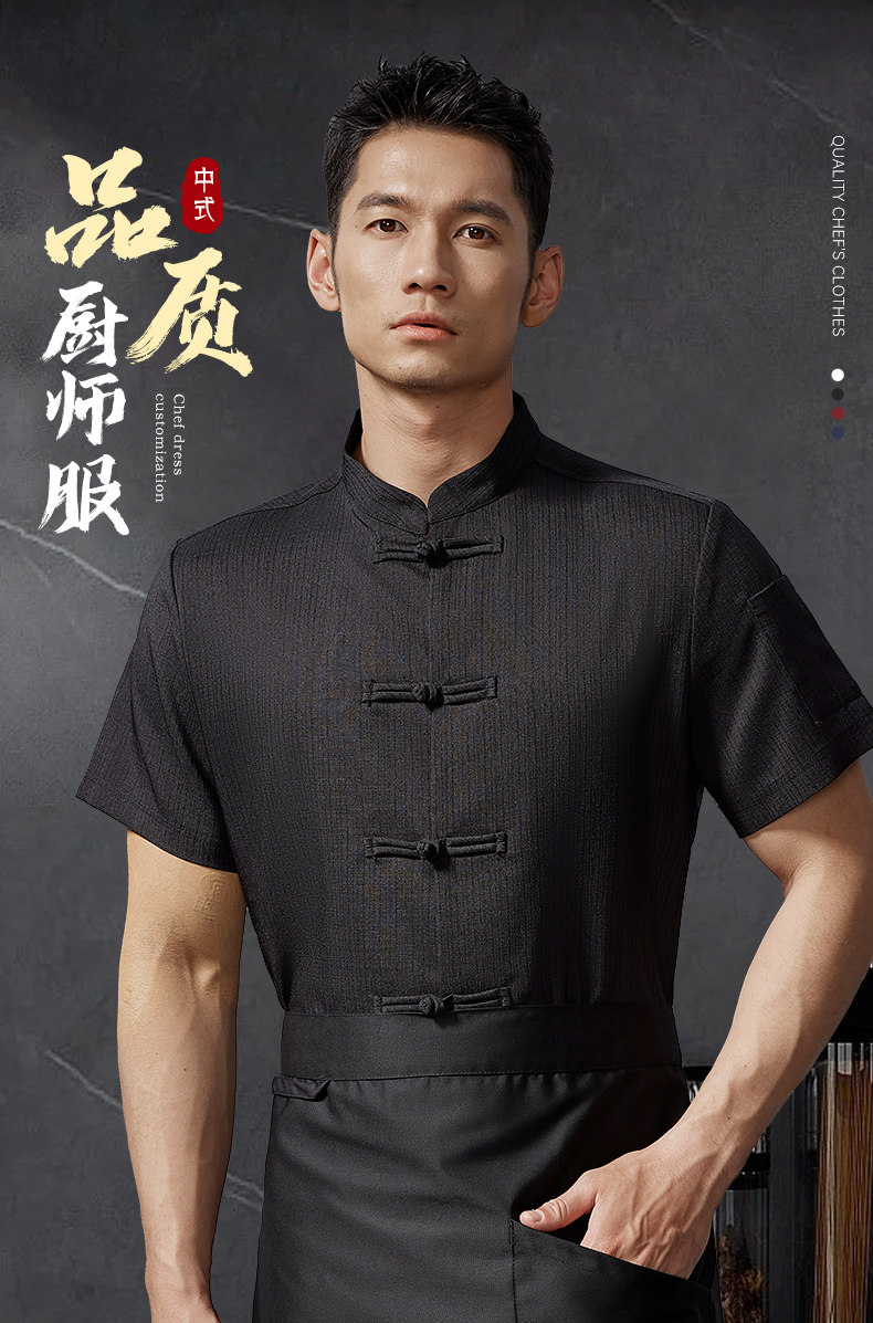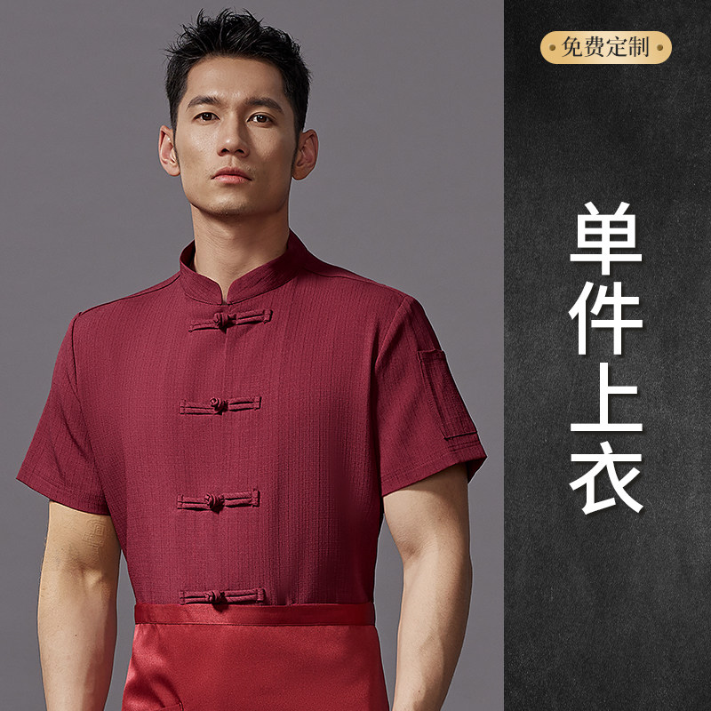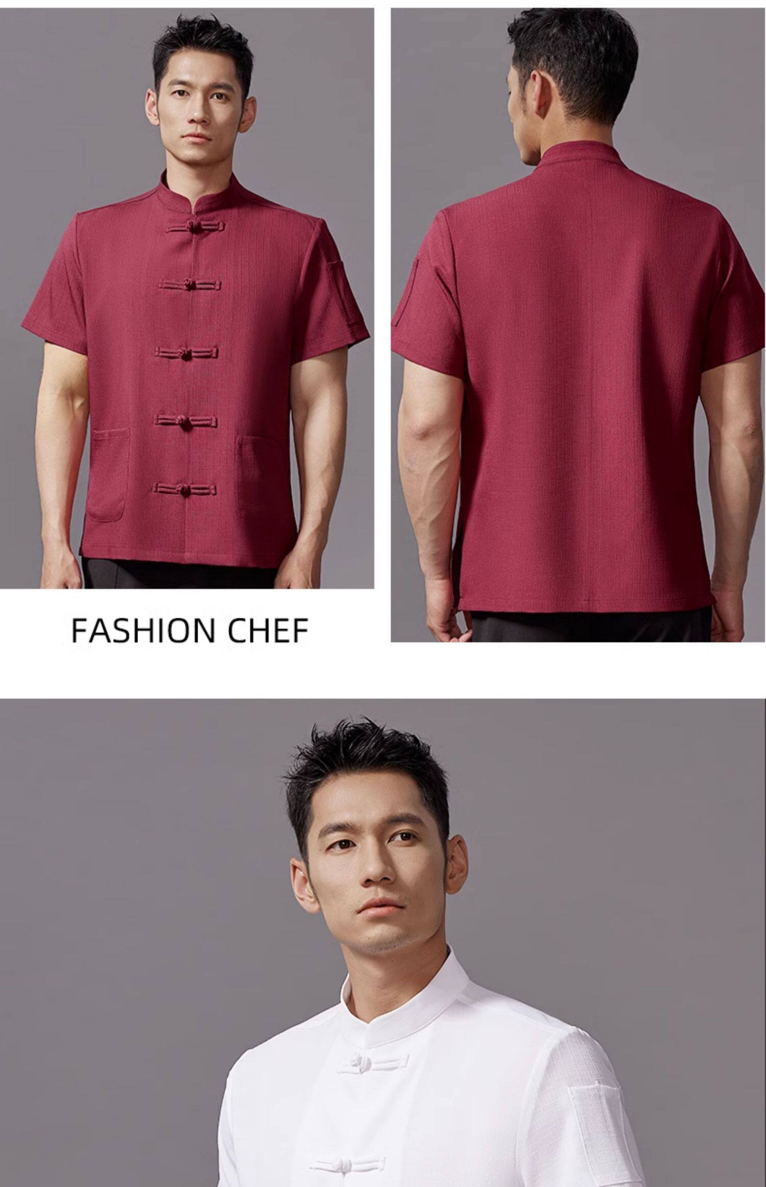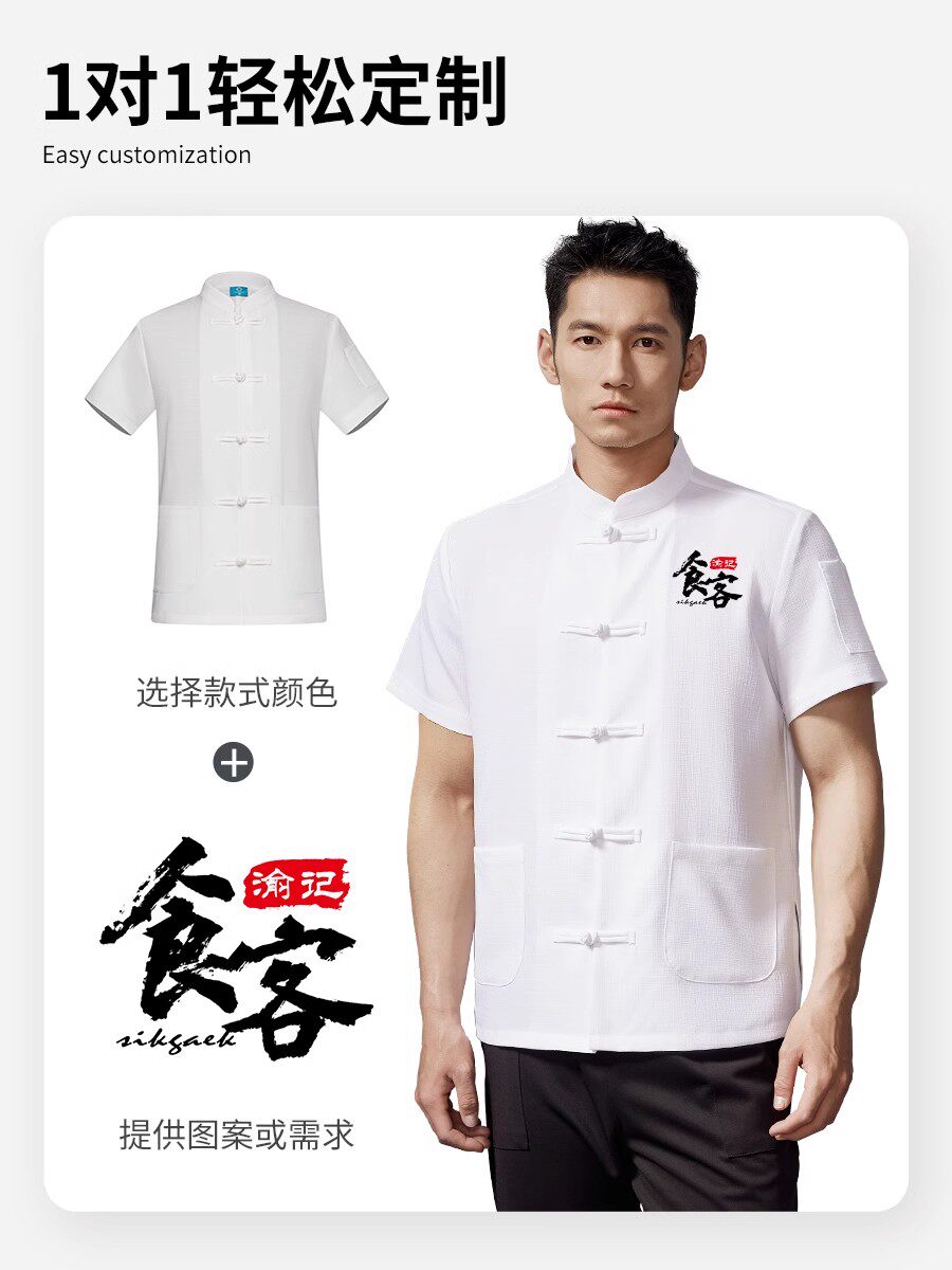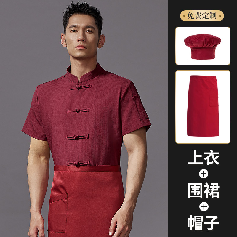 红色中式厨师工作服印字夏季透气短袖饭店厨房餐饮酒店定制工衣男