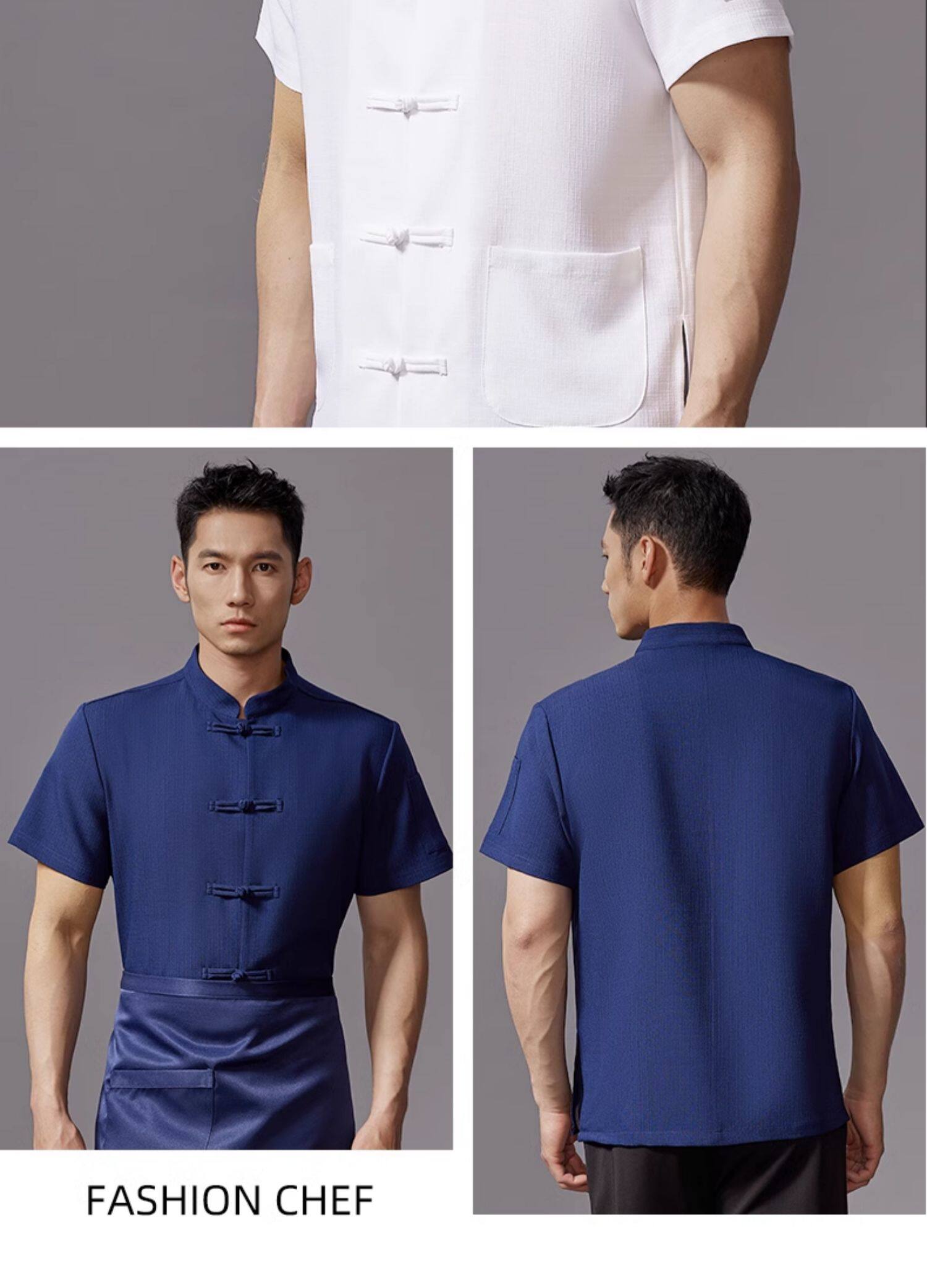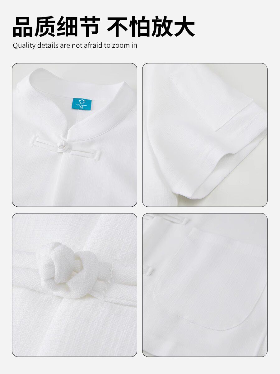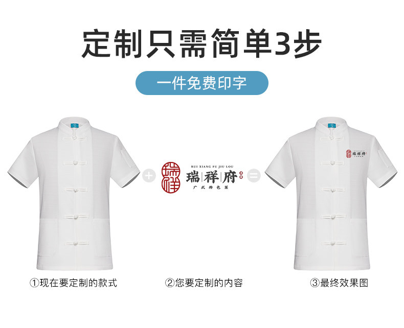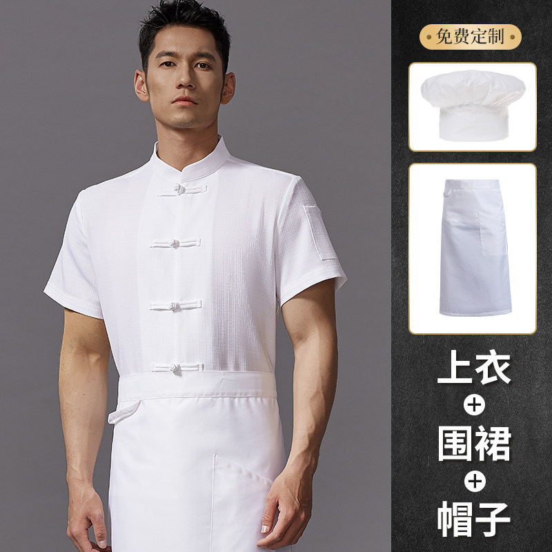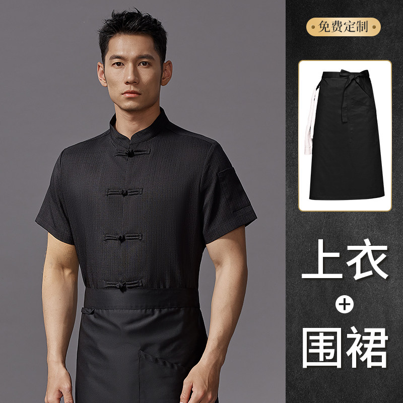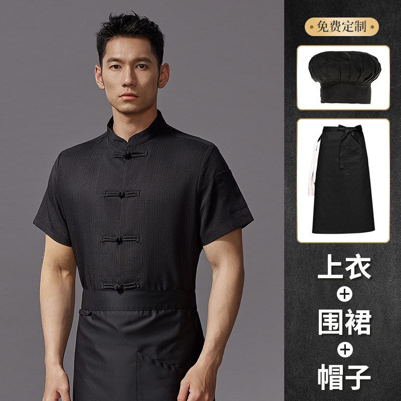 红色中式厨师工作服印字夏季透气短袖饭店厨房餐饮酒店定制工衣男
