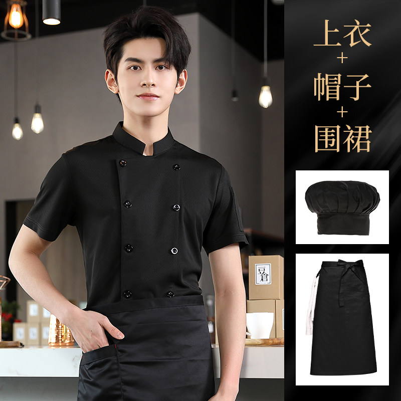 冰丝厨师工作服短袖男餐饮酒店饭店后厨厨房全网透气薄款速干衣服