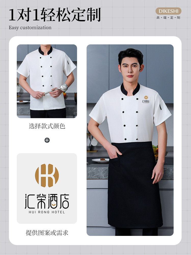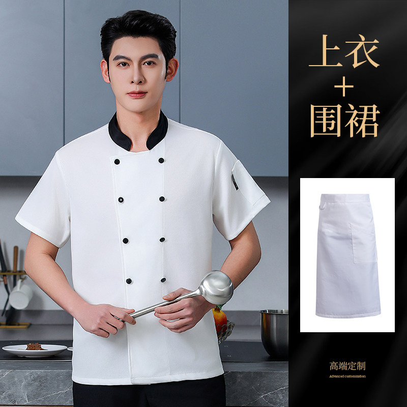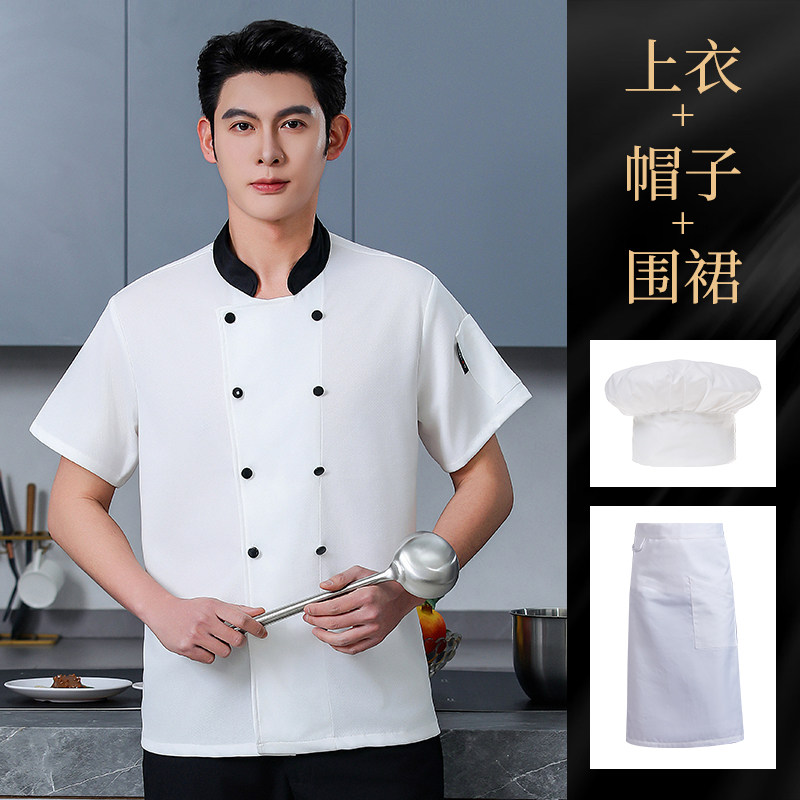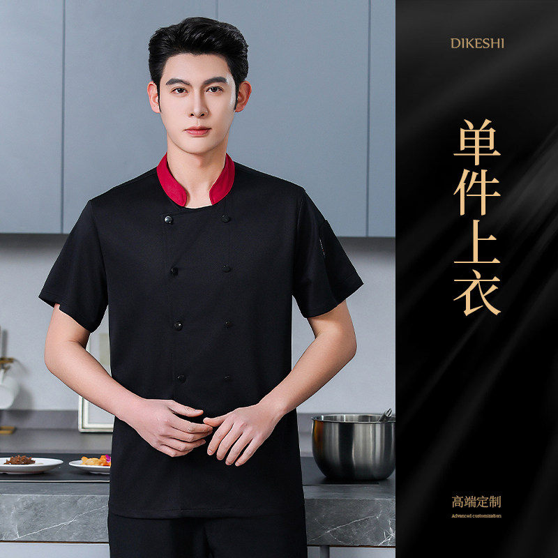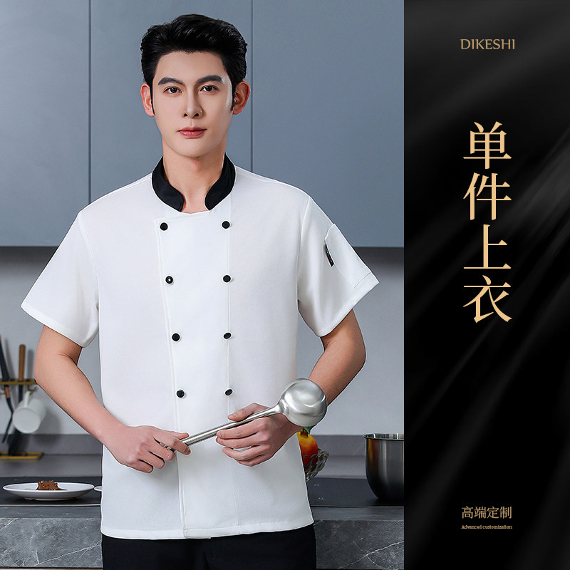 高端厨师工作服短袖透气工装男夏季餐饮酒店早点西餐厅后厨房厨衣
