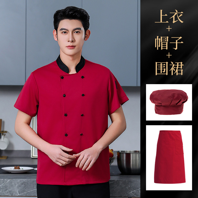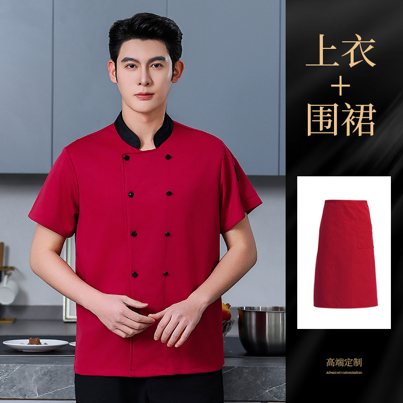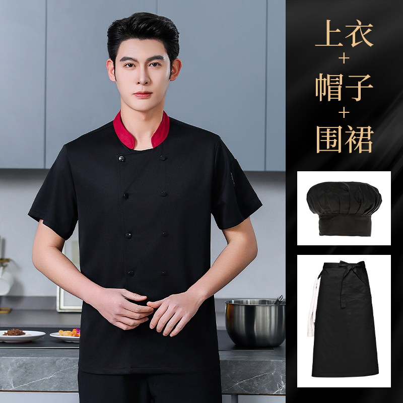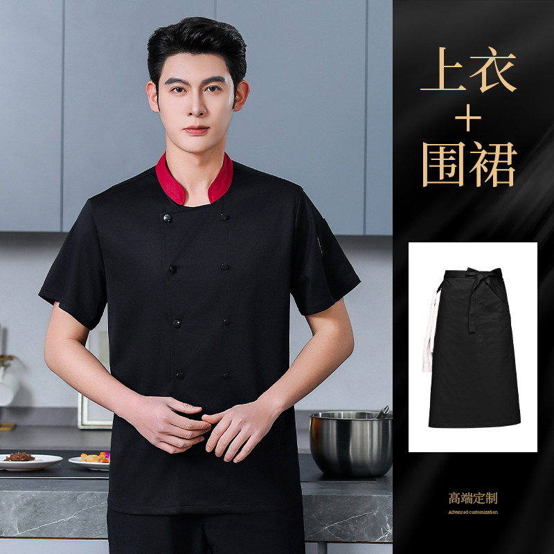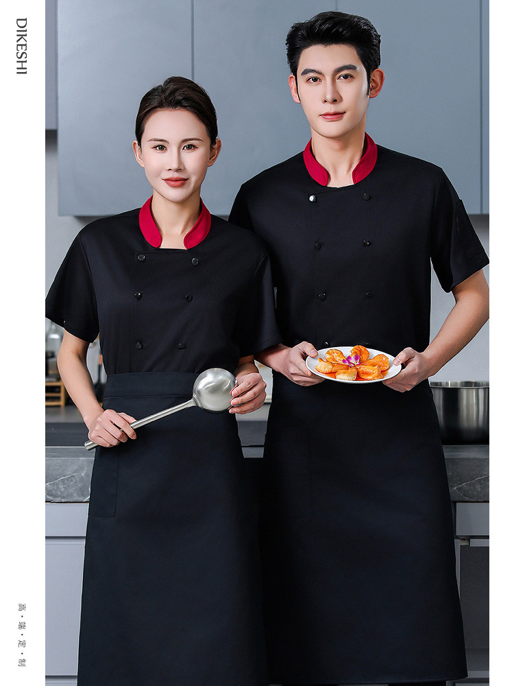 高端厨师工作服短袖透气工装男夏季餐饮酒店早点西餐厅后厨房厨衣