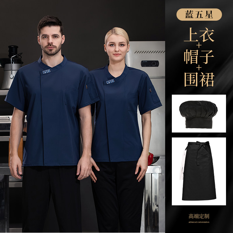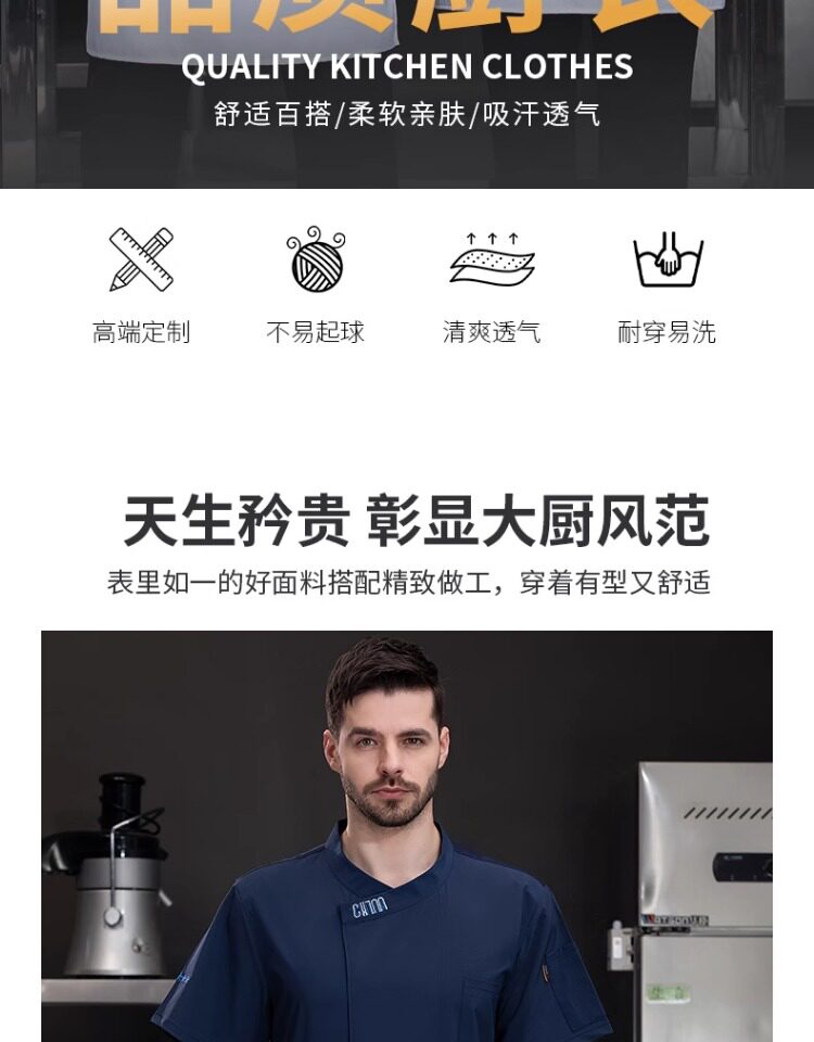 冰丝厨师工作服短袖夏季餐饮酒店饭店烘焙师厨房衣服薄款套装定制