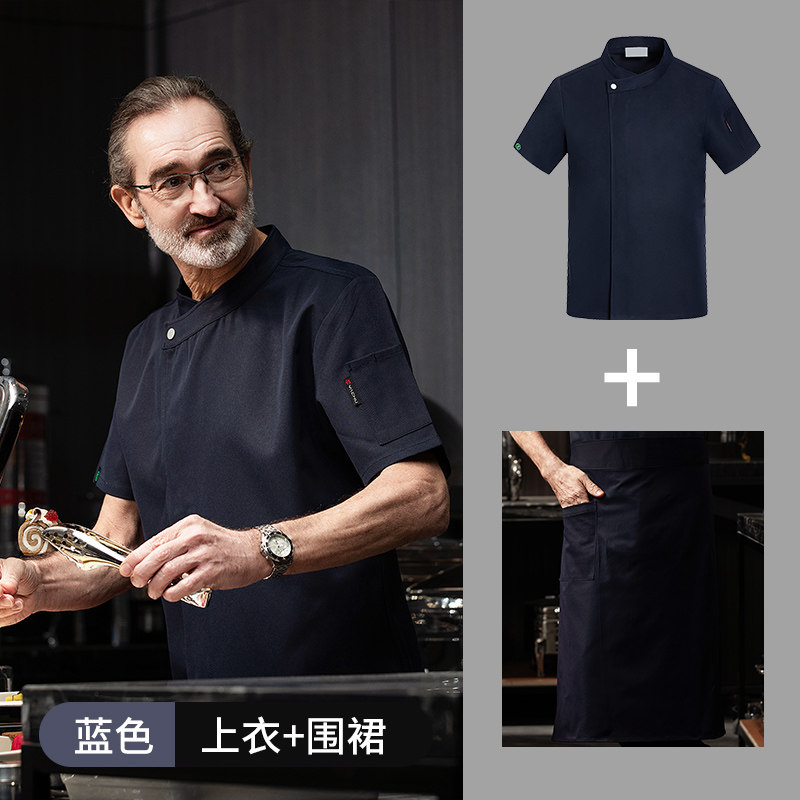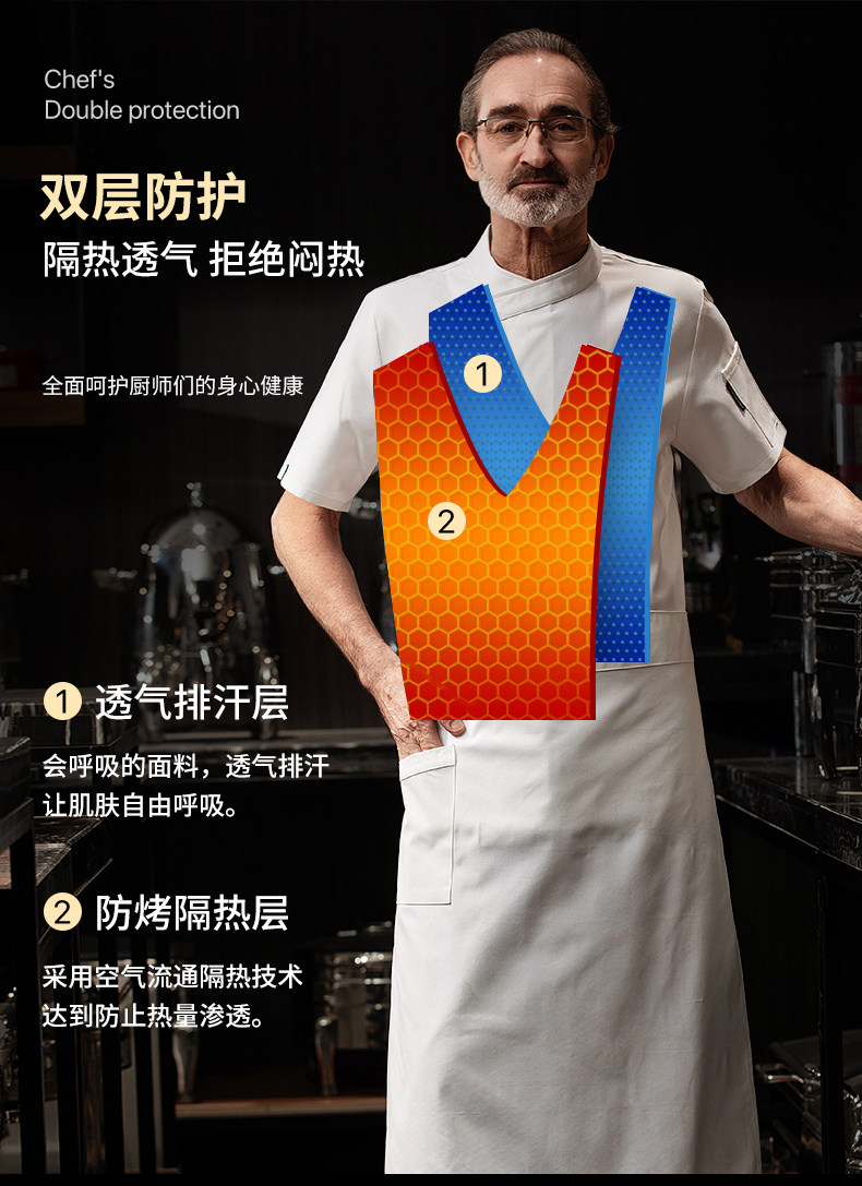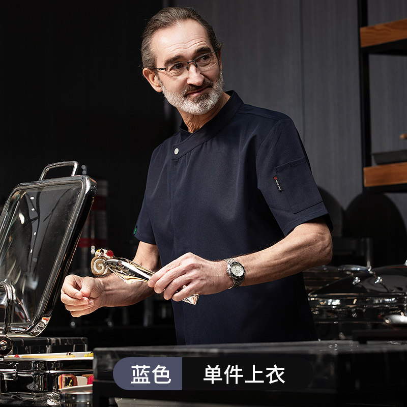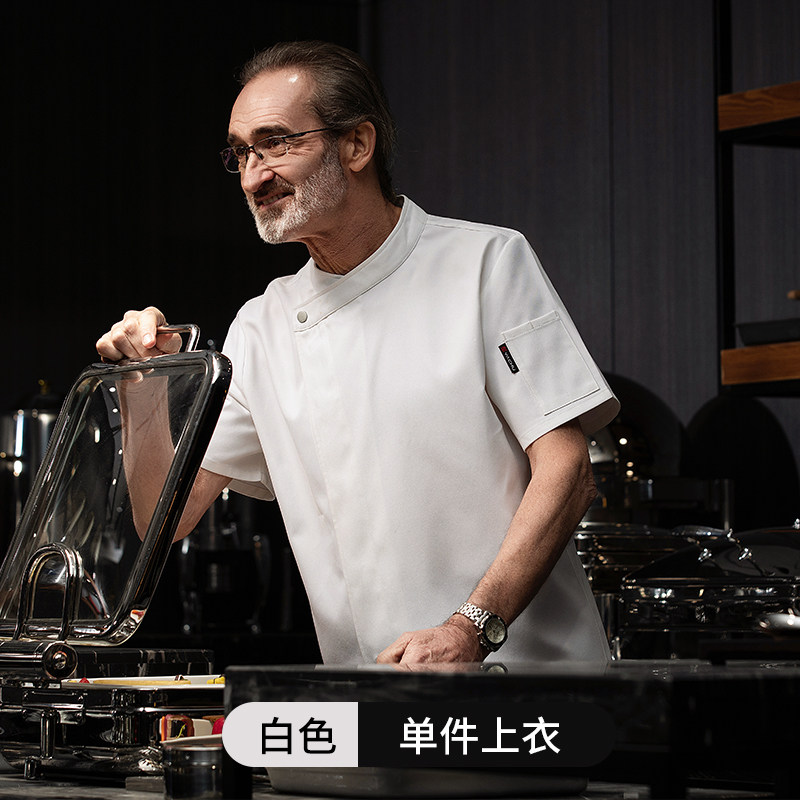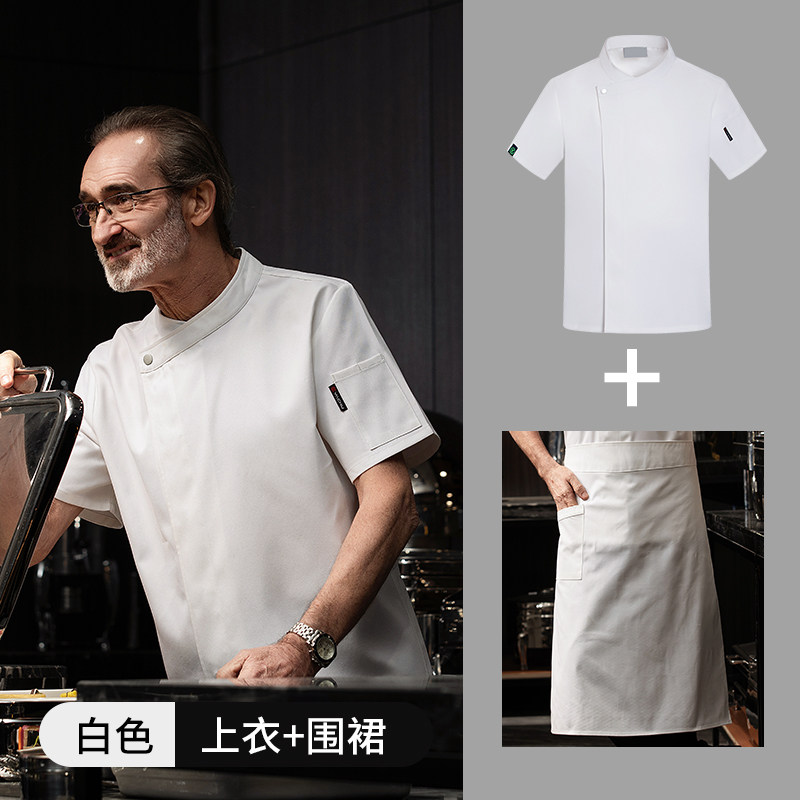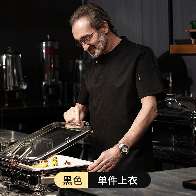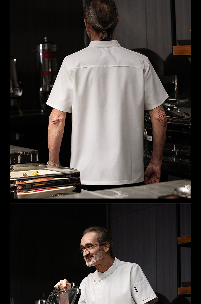 防水弹力厨师工作服短袖夏季透气网高级酒店饭店西餐厅厨房后厨男