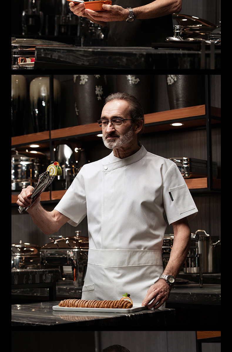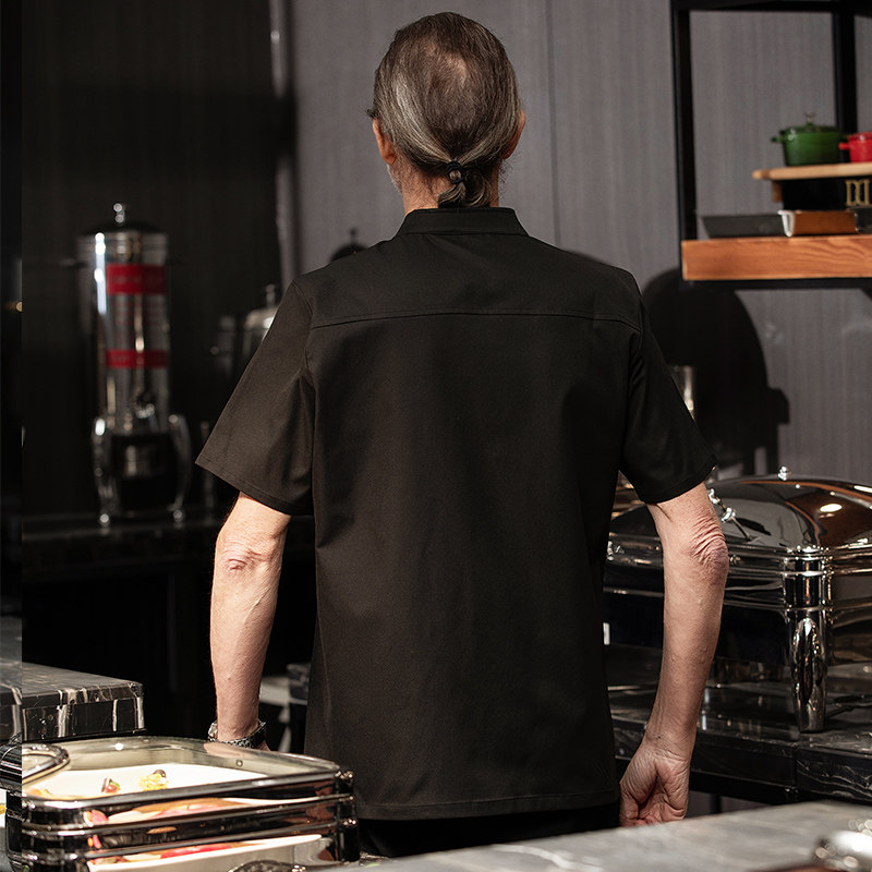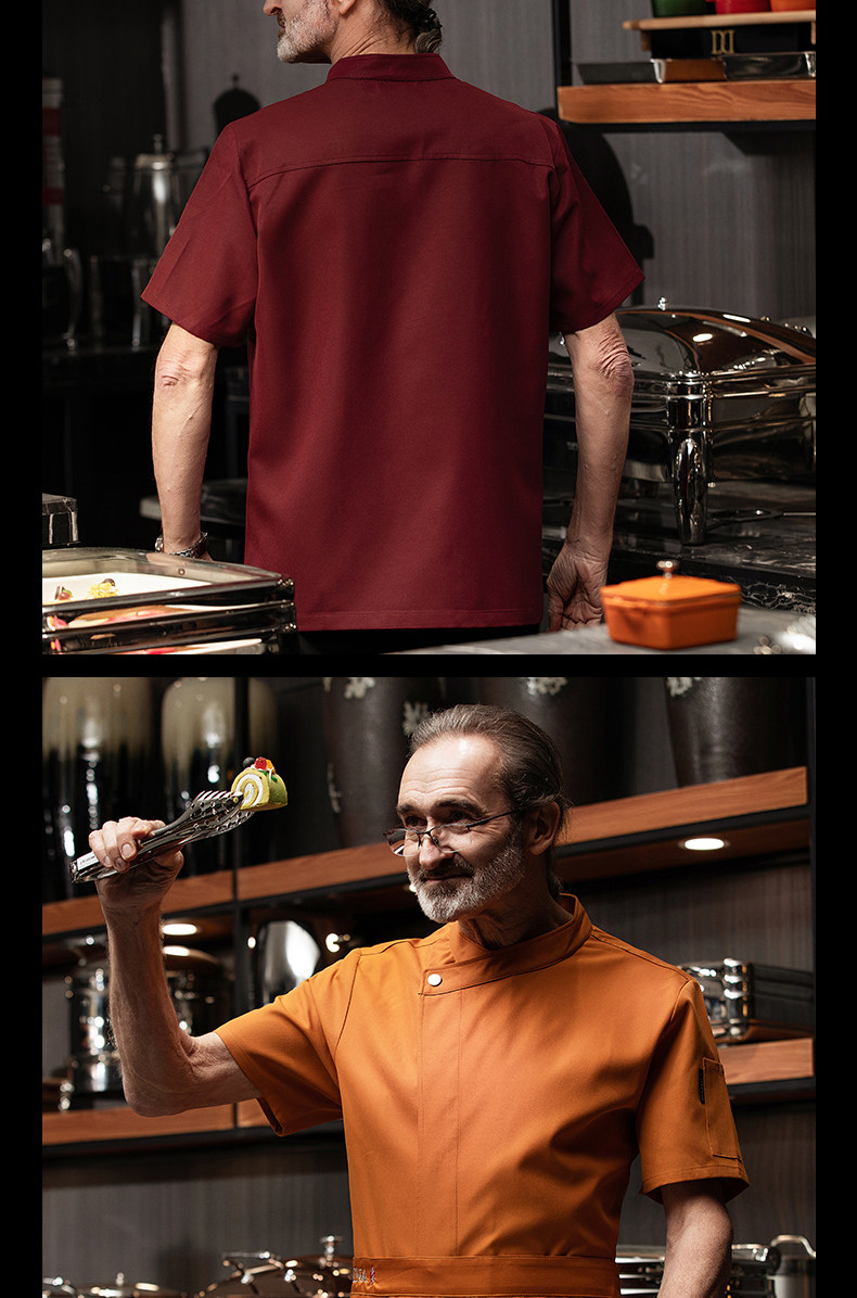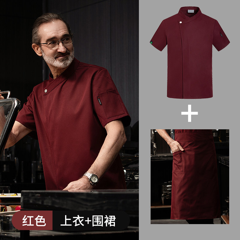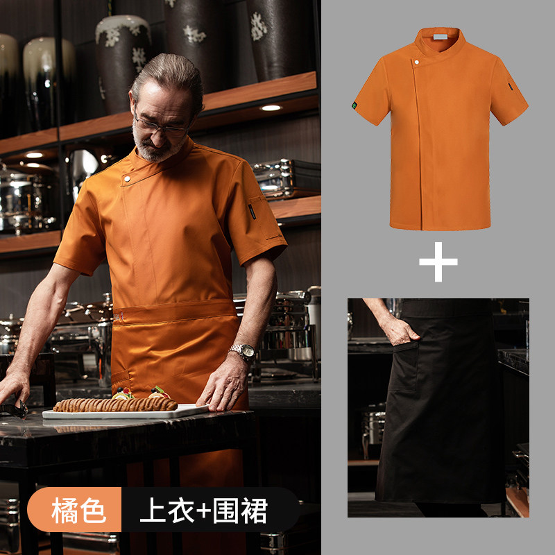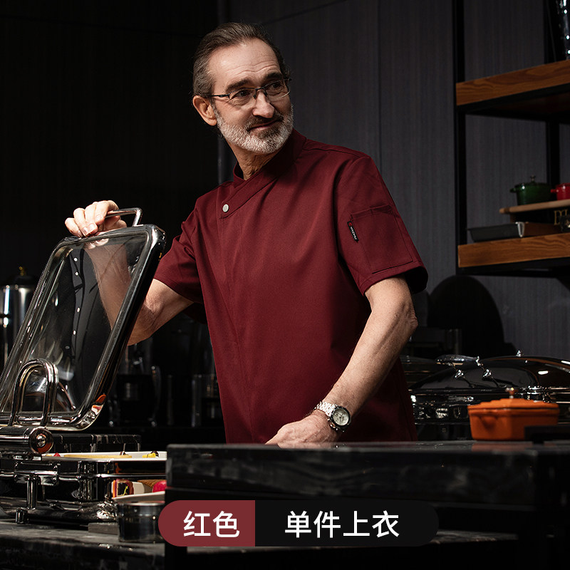 防水弹力厨师工作服短袖夏季透气网高级酒店饭店西餐厅厨房后厨男