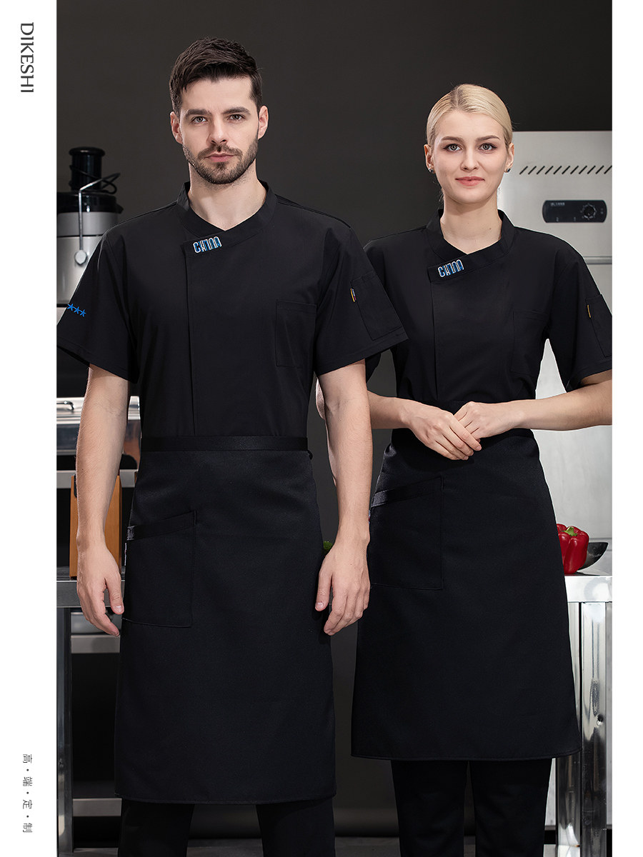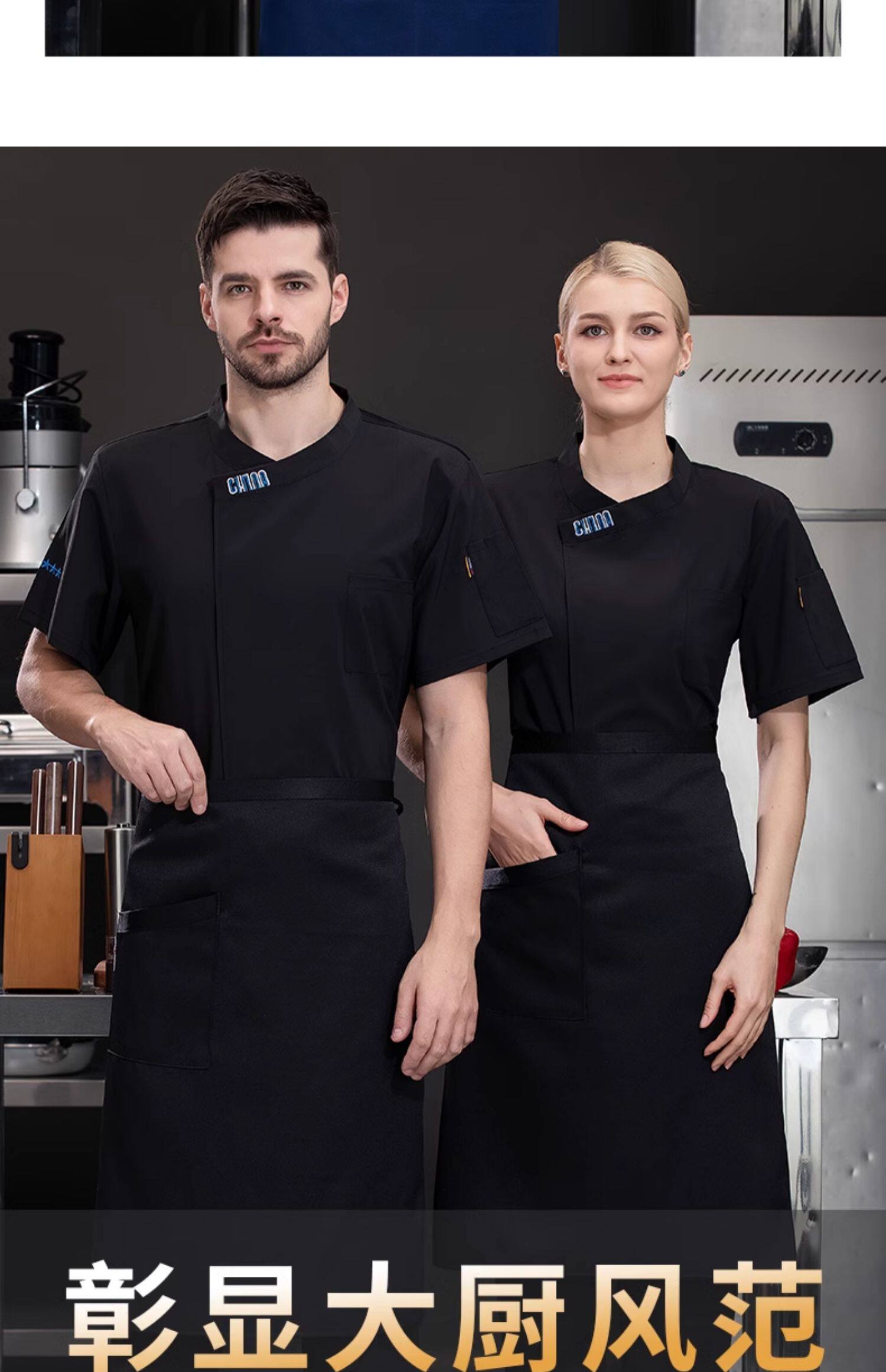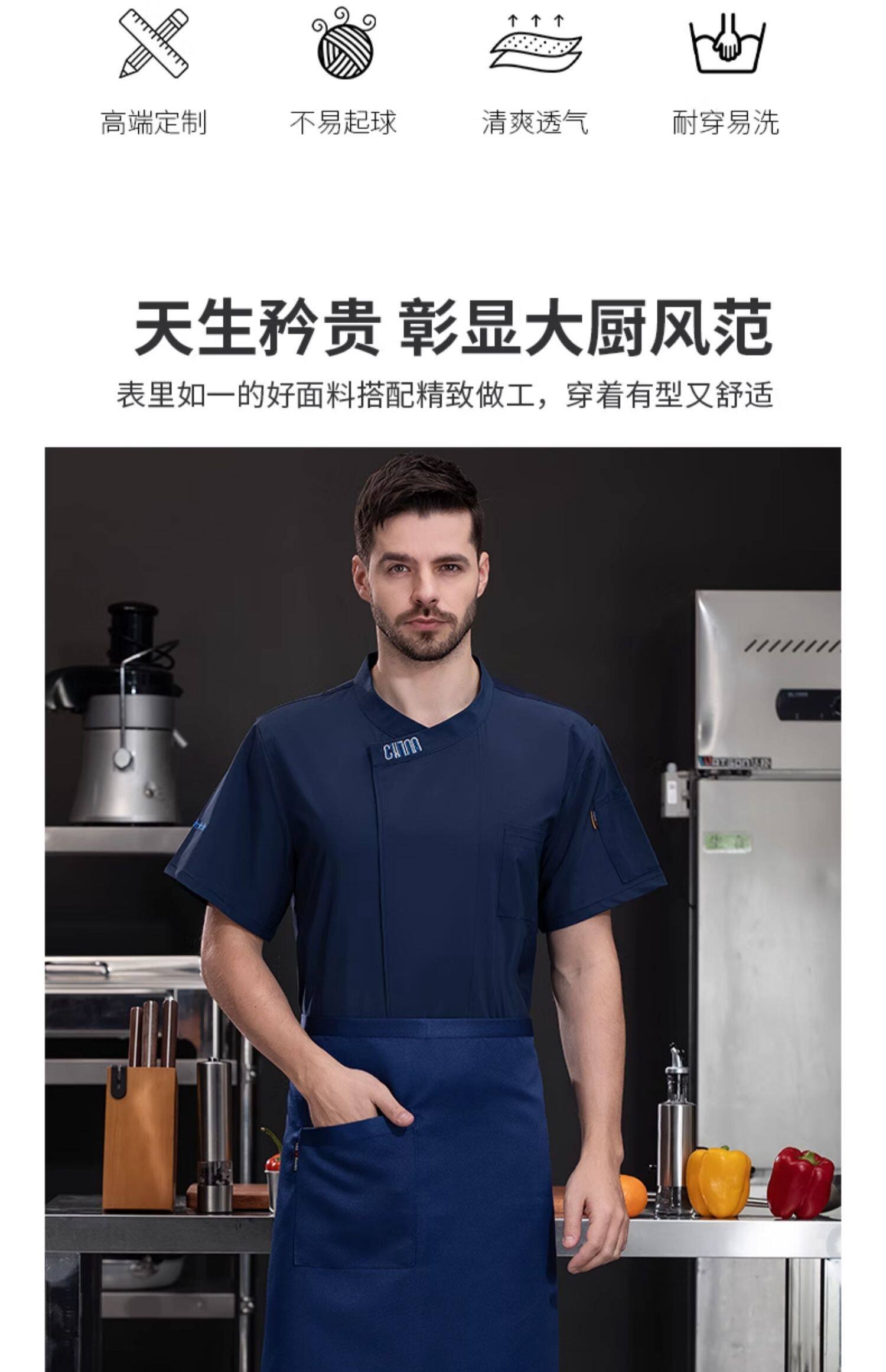 新式冰丝厨师工作服短袖夏季薄款酒店西餐厅烧烤店后厨房总厨工衣