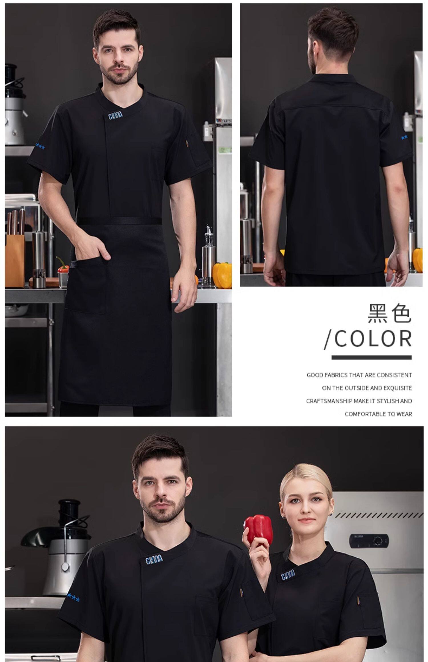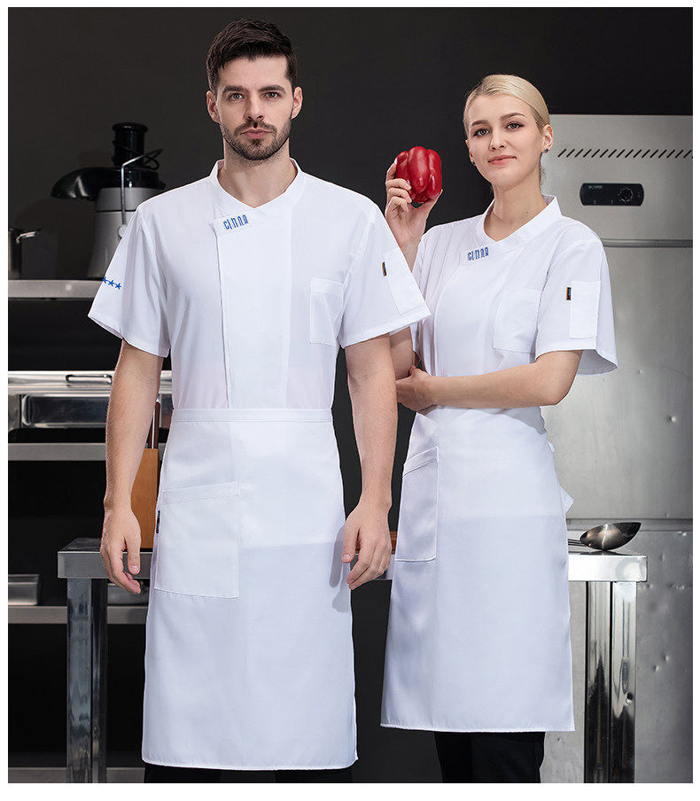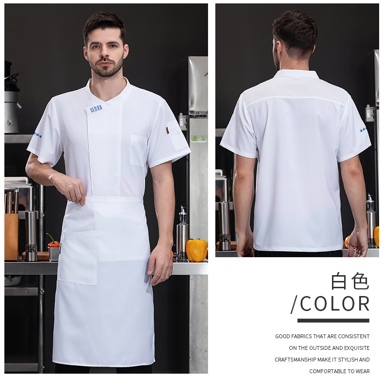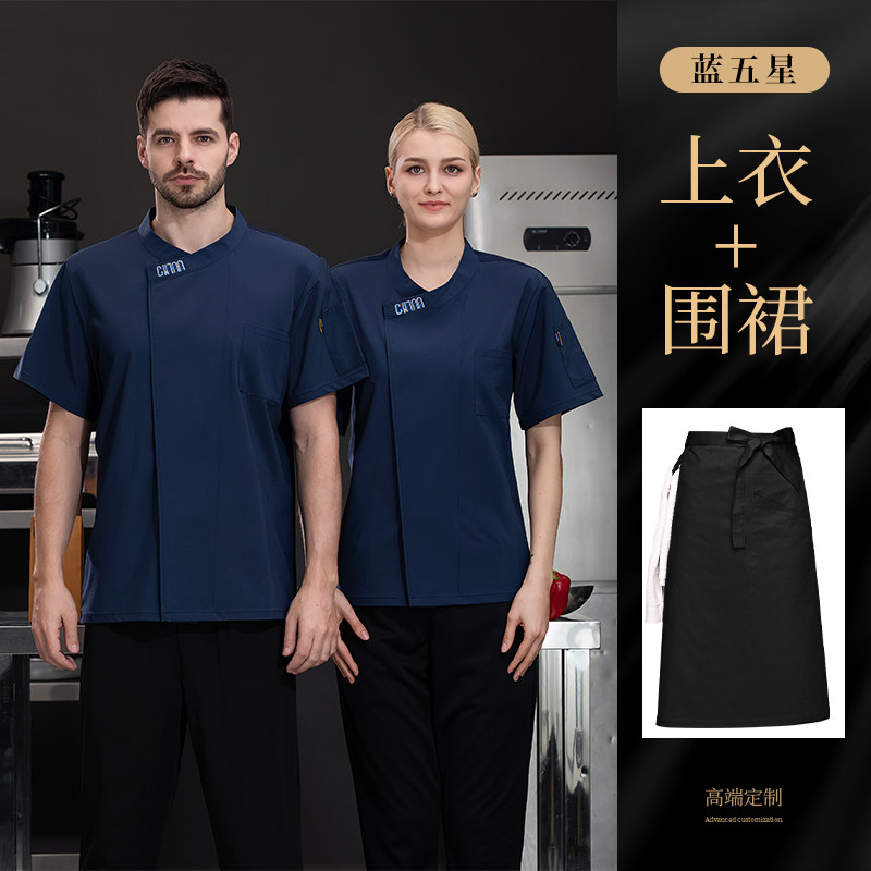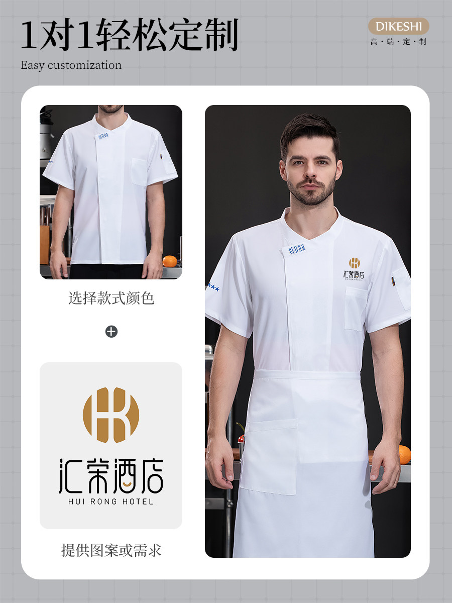 新式冰丝厨师工作服短袖夏季薄款酒店西餐厅烧烤店后厨房总厨工衣