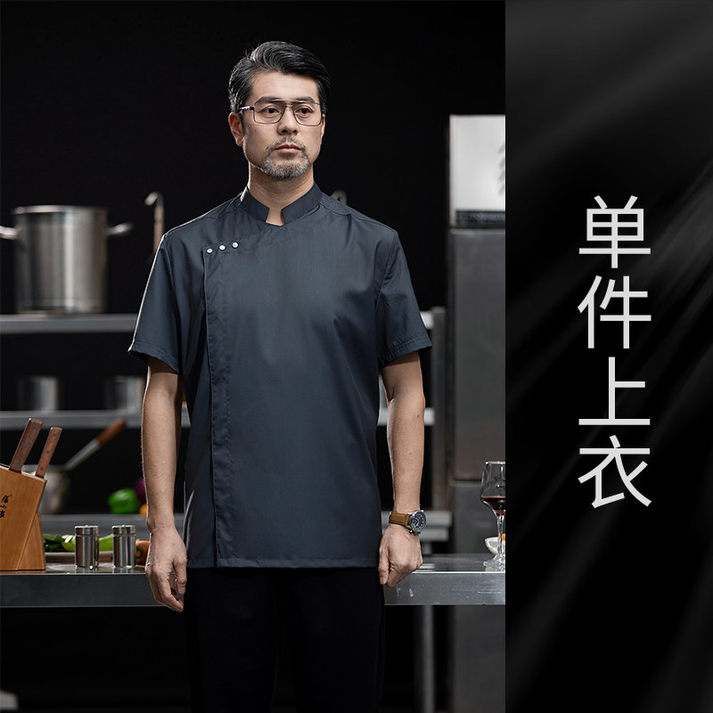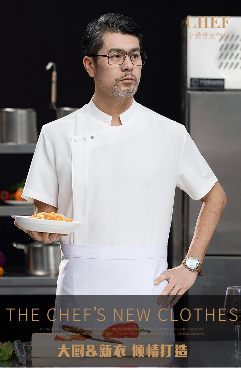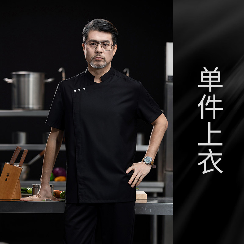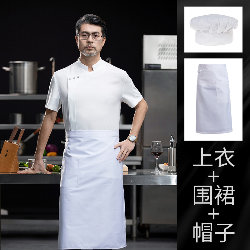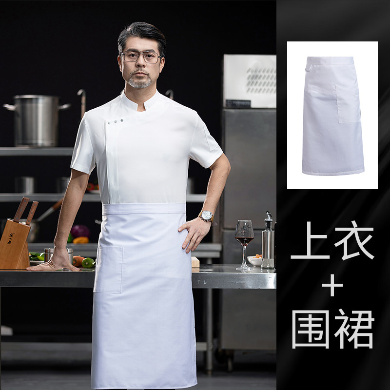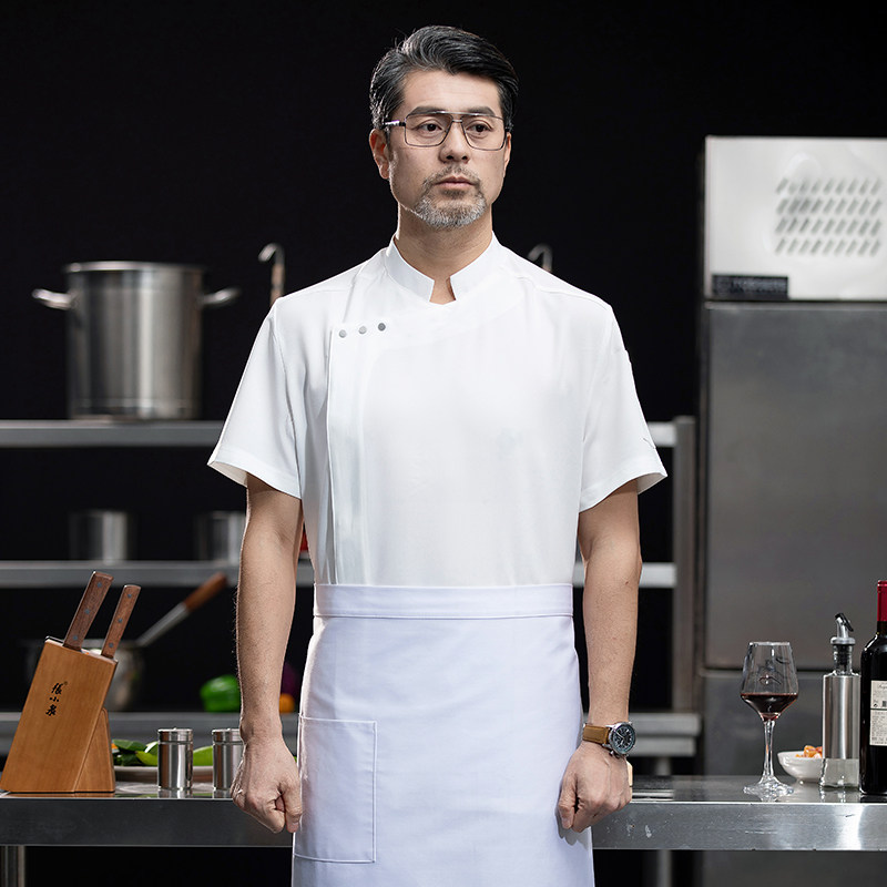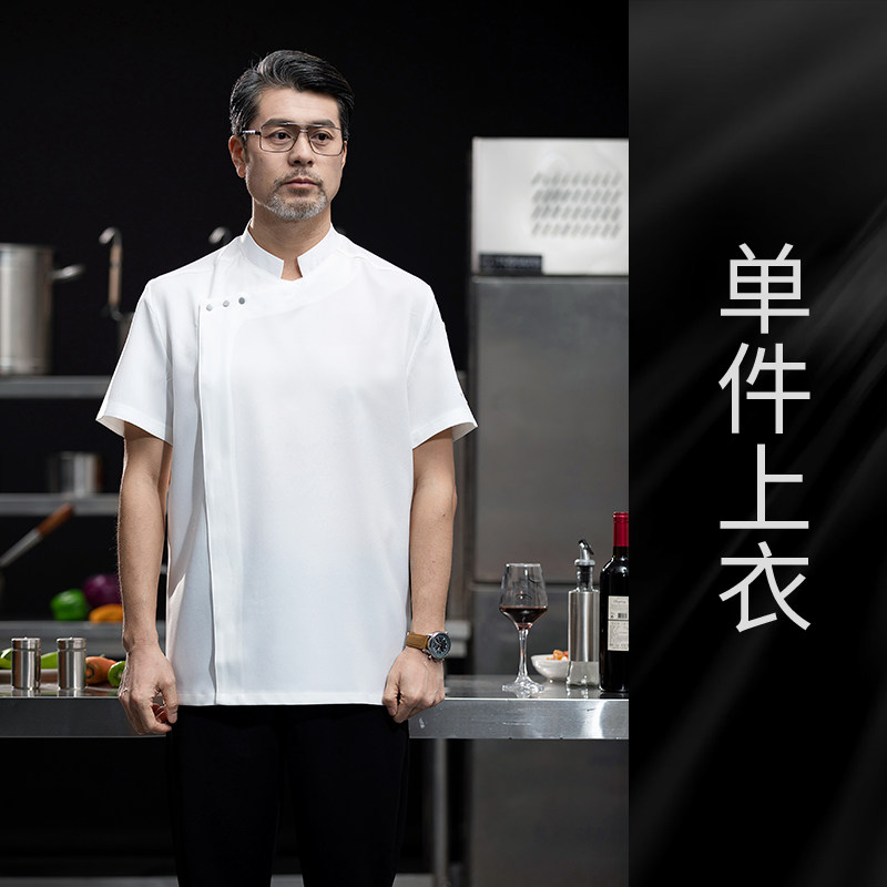 高端白色厨师工作服短袖定制餐饮酒店饭店后厨房衣服主厨专用工装