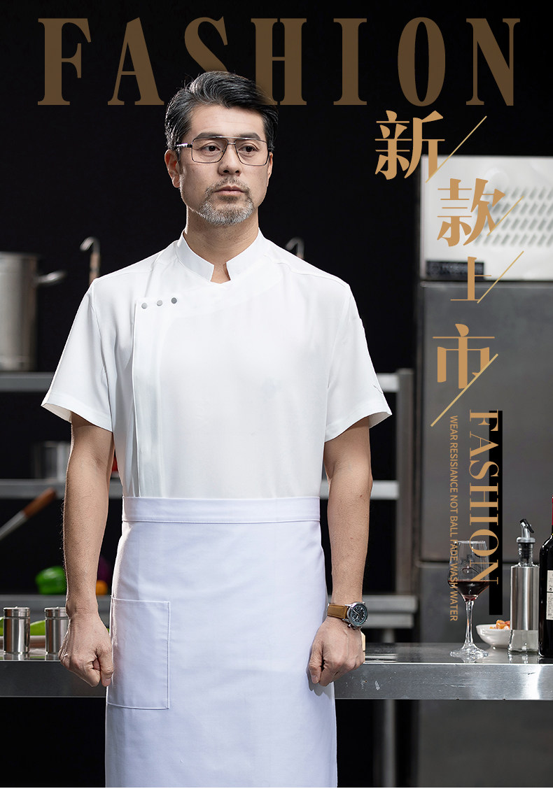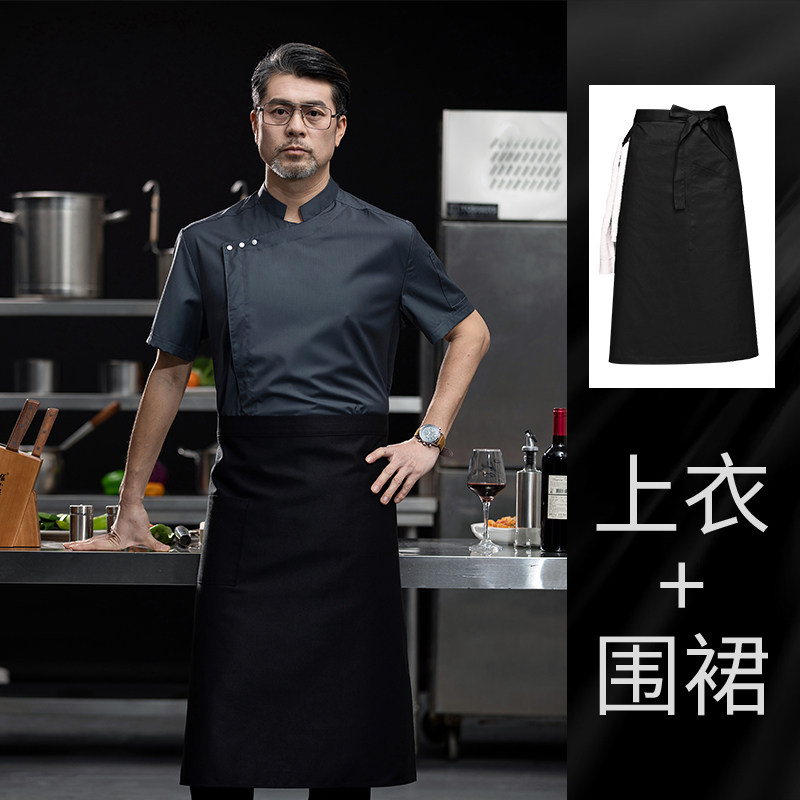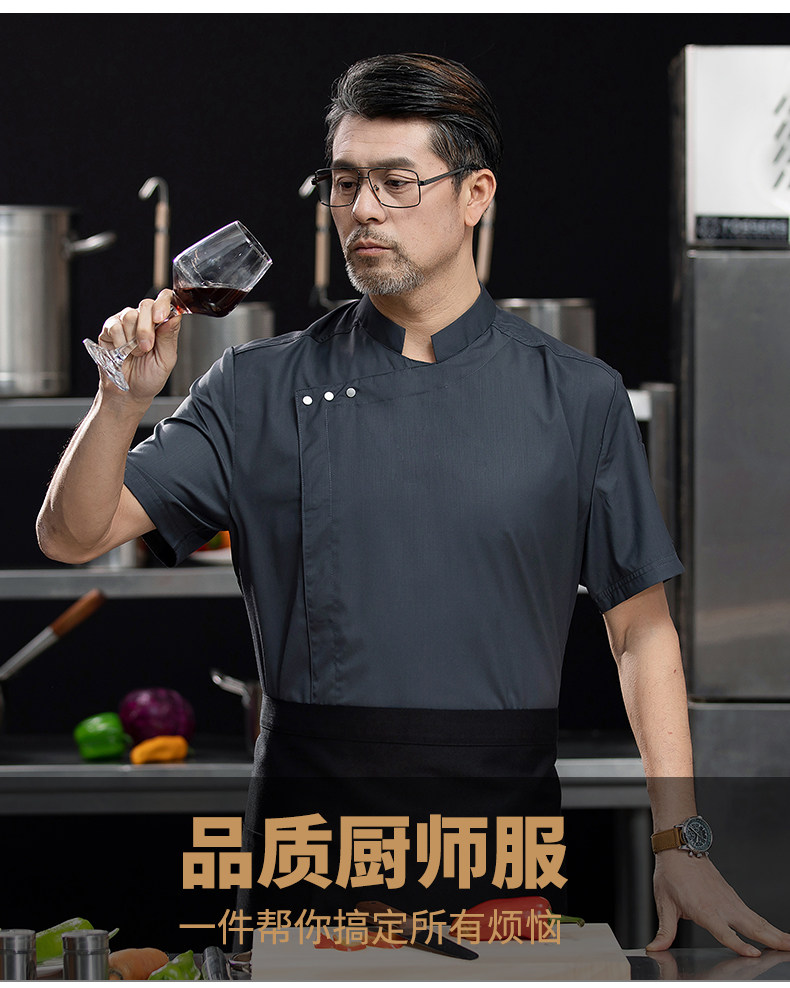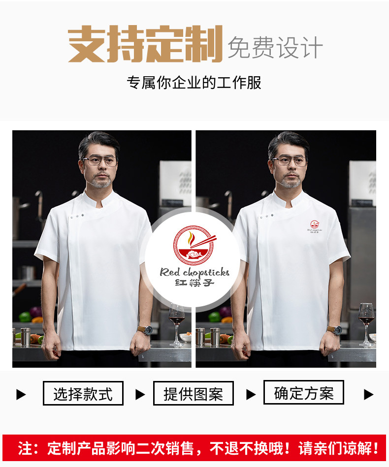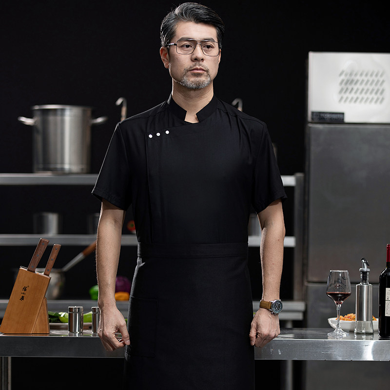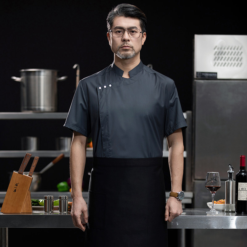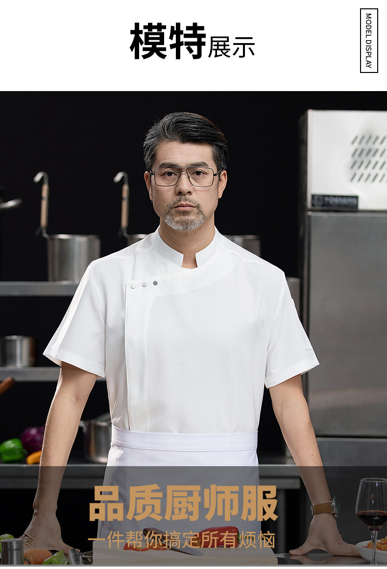 高端白色厨师工作服短袖定制餐饮酒店饭店后厨房衣服主厨专用工装