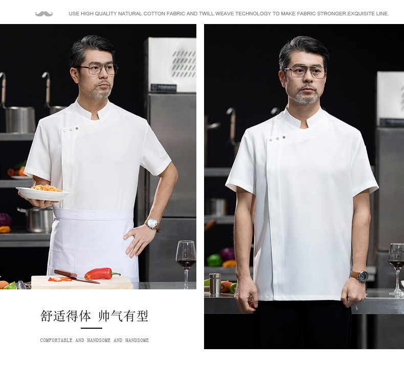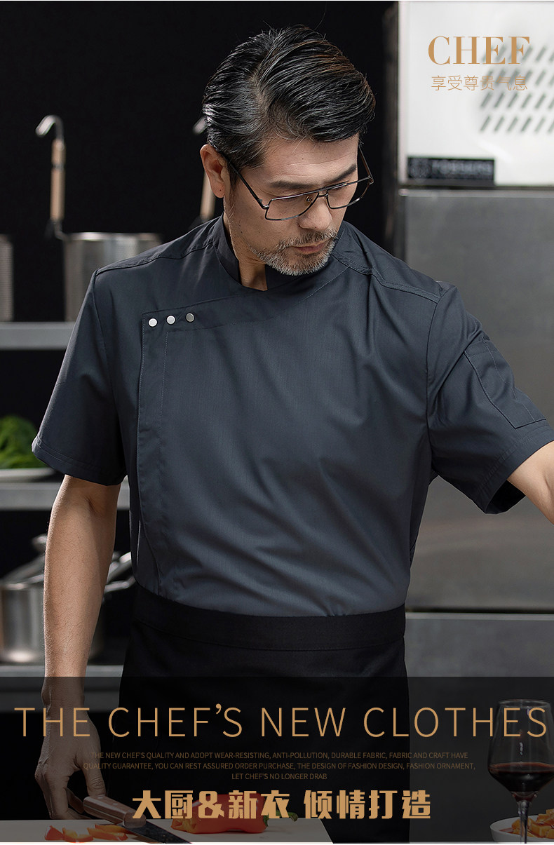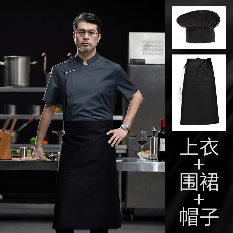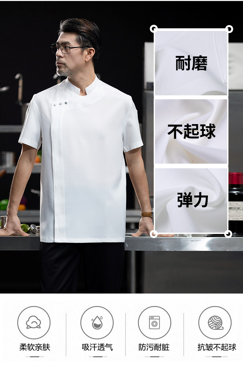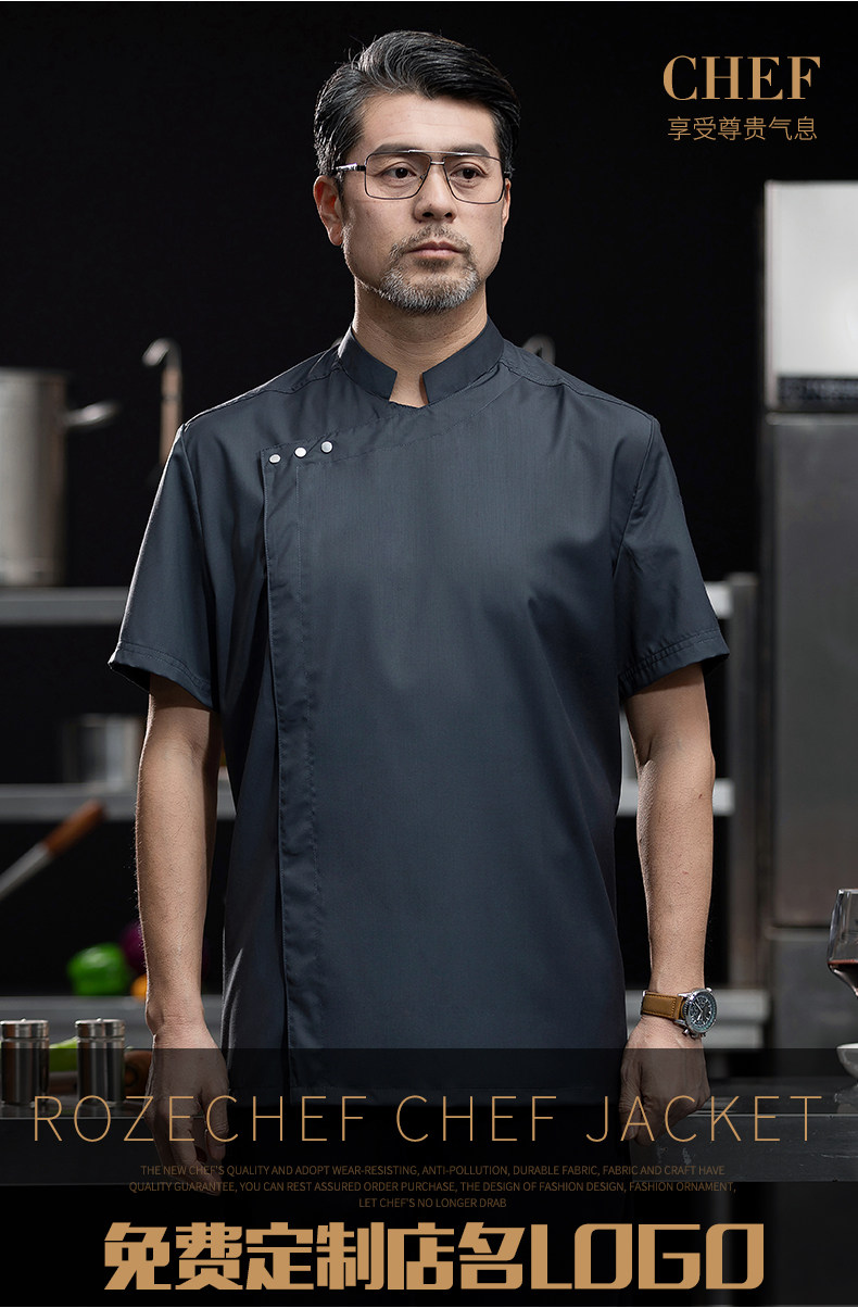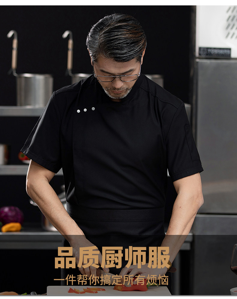 高端白色厨师工作服短袖定制餐饮酒店饭店后厨房衣服主厨专用工装