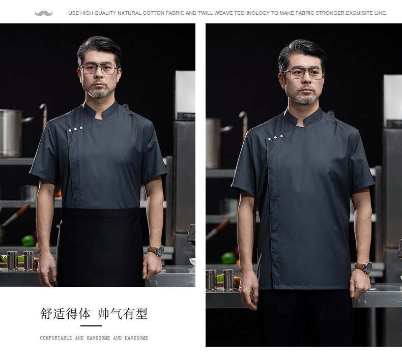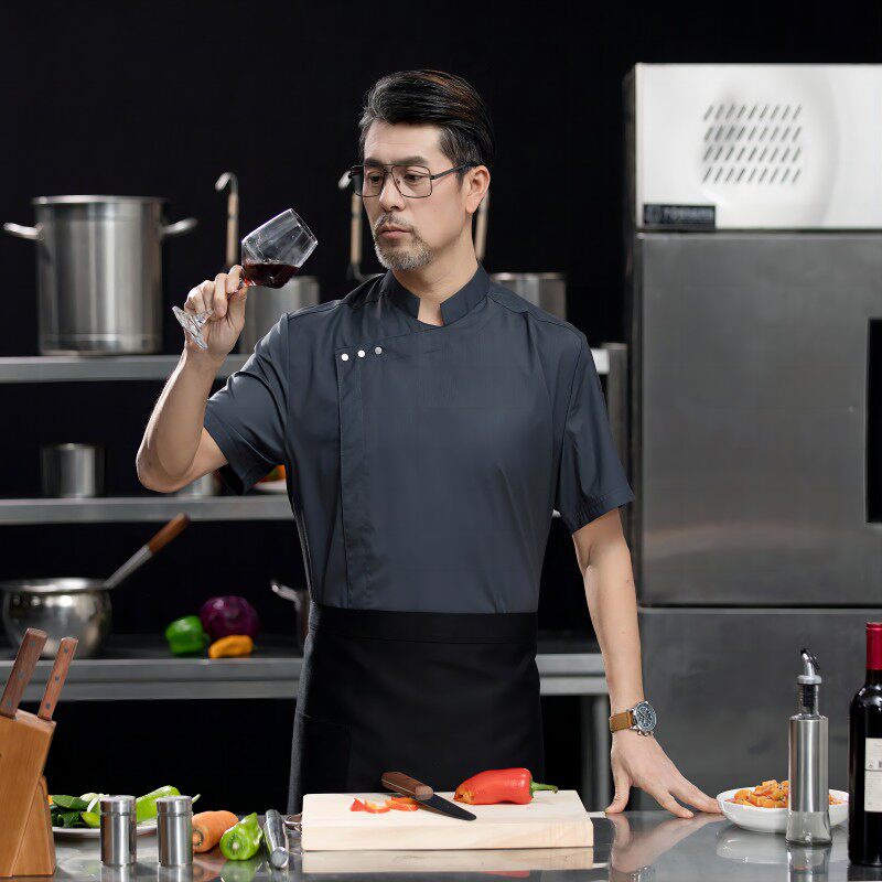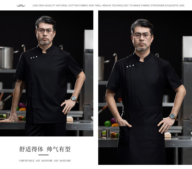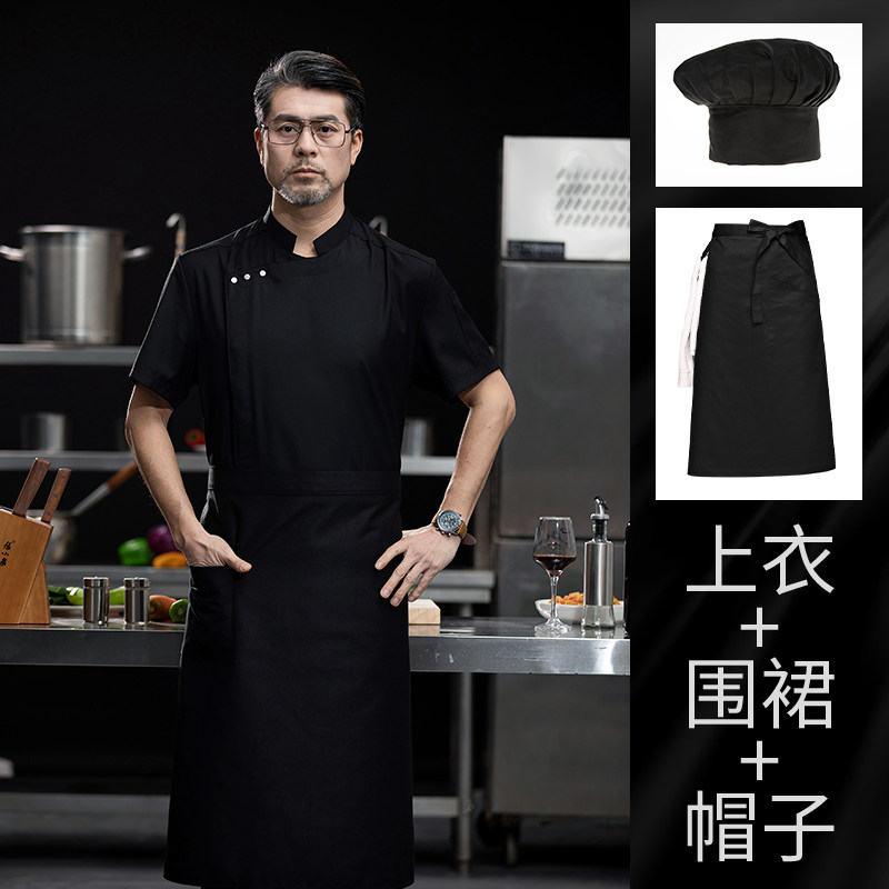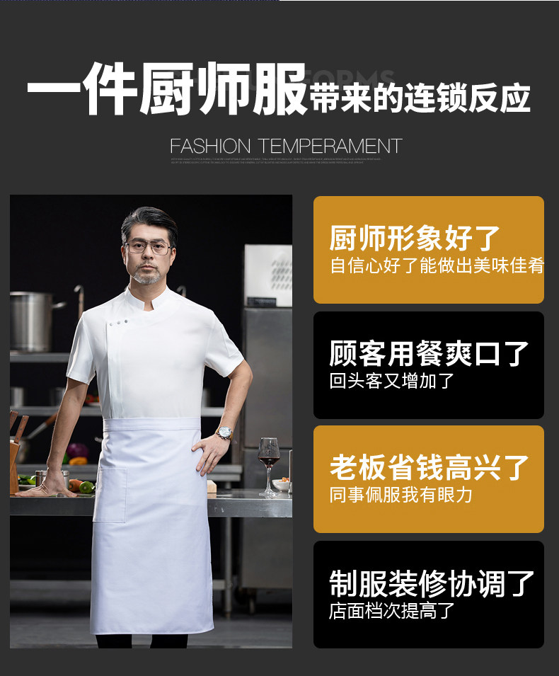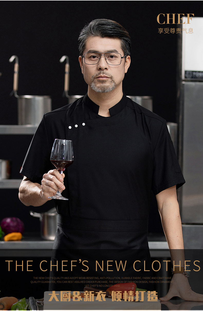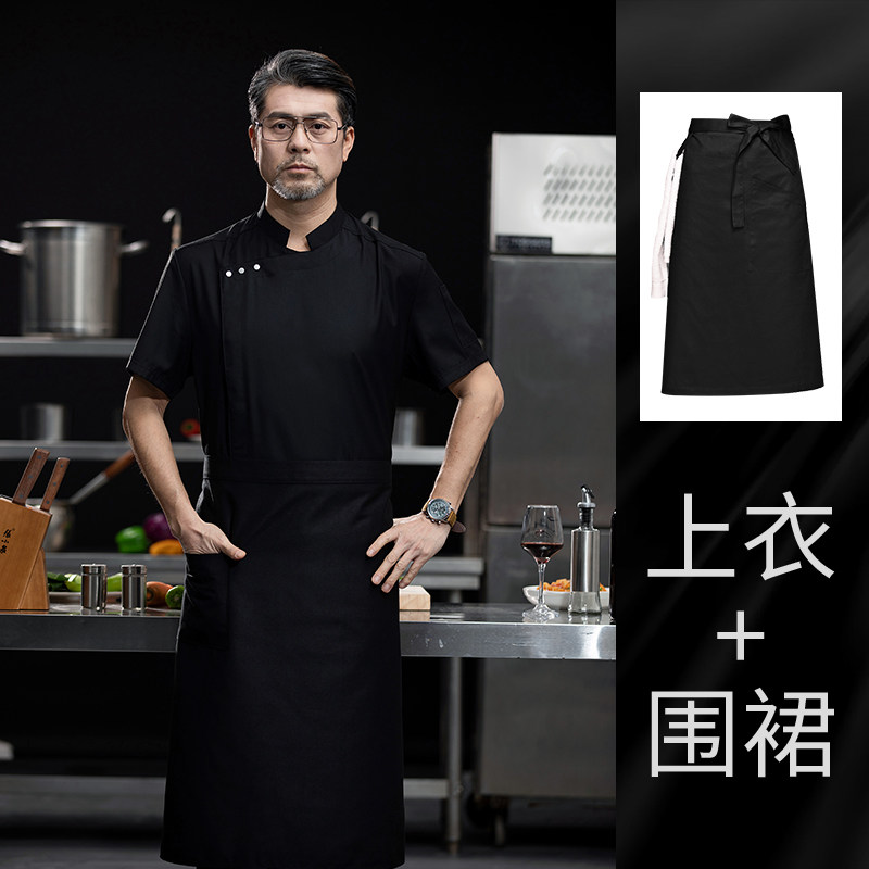 高端白色厨师工作服短袖定制餐饮酒店饭店后厨房衣服主厨专用工装