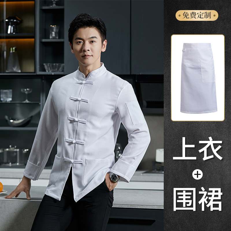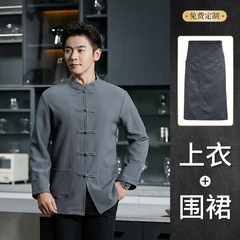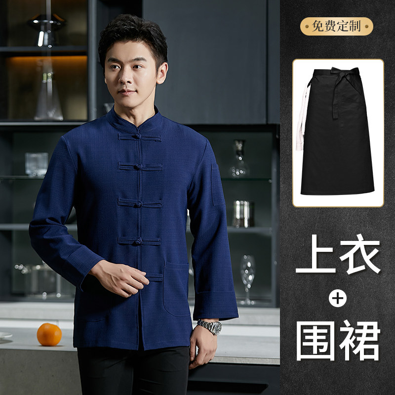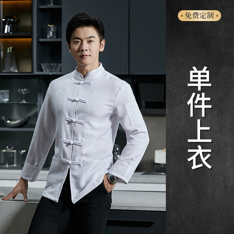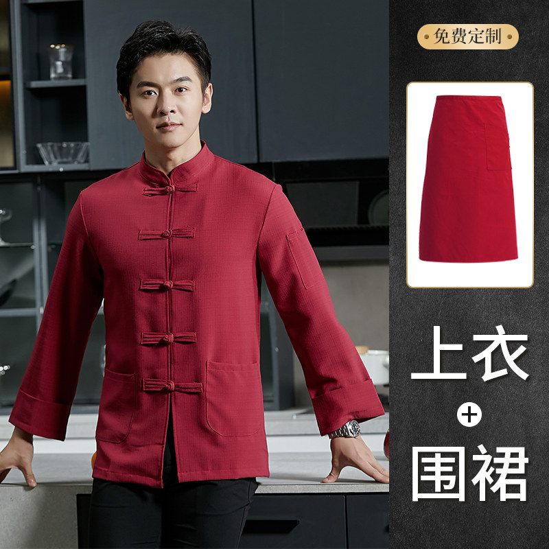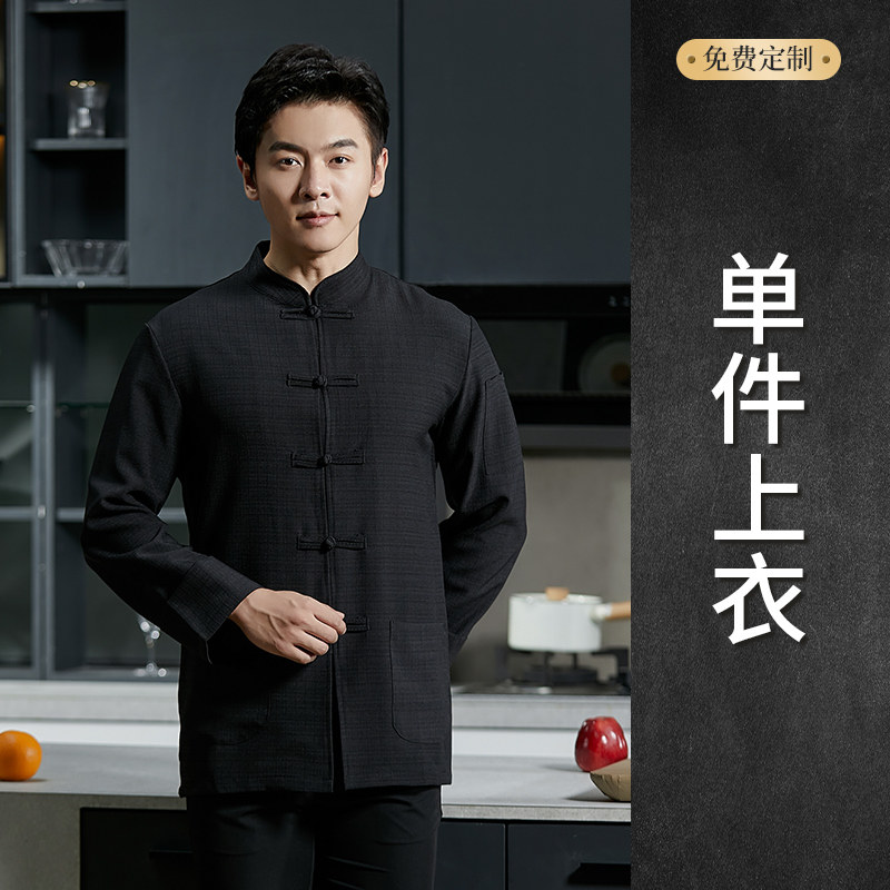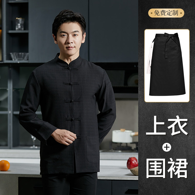中式厨师工作服长袖秋冬款中国风中餐厅酒店火锅店后厨厨房服装男