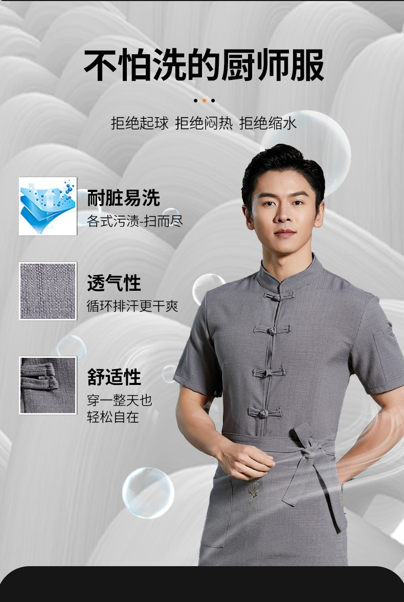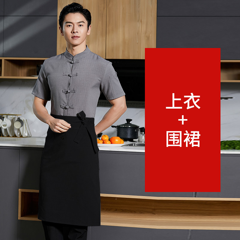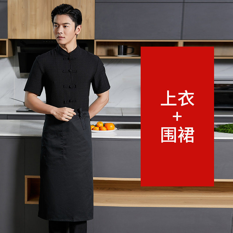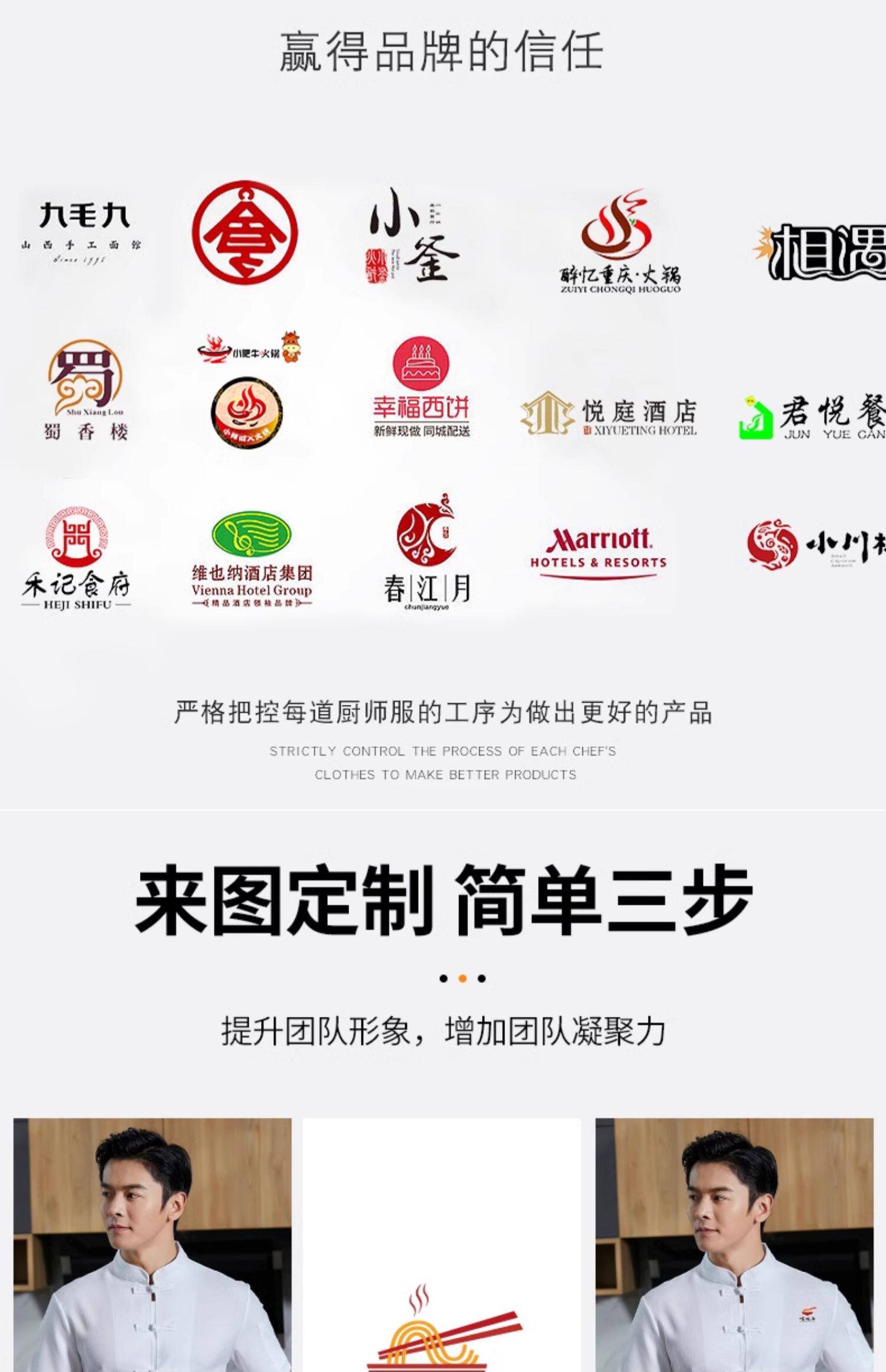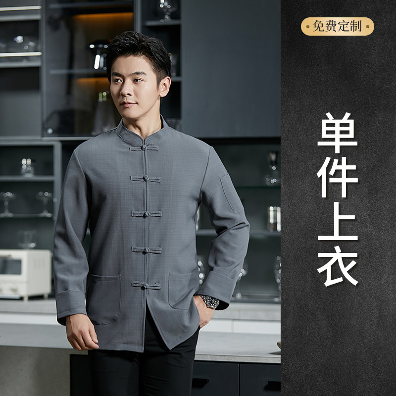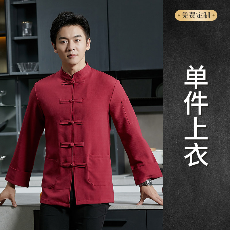 中式厨师工作服长袖秋冬款中国风中餐厅酒店火锅店后厨厨房服装男