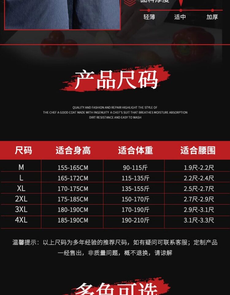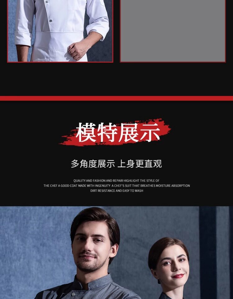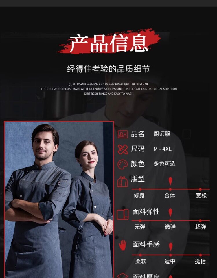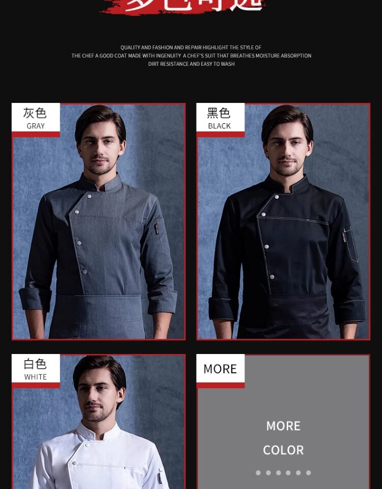 高档厨师工作服秋冬装短袖餐厅酒店饭店烹饪烘焙餐饮厨房长袖衣服