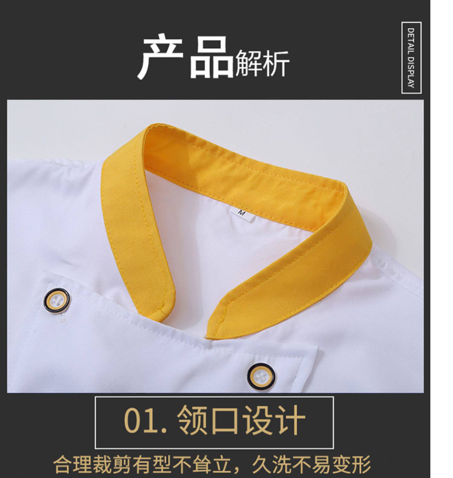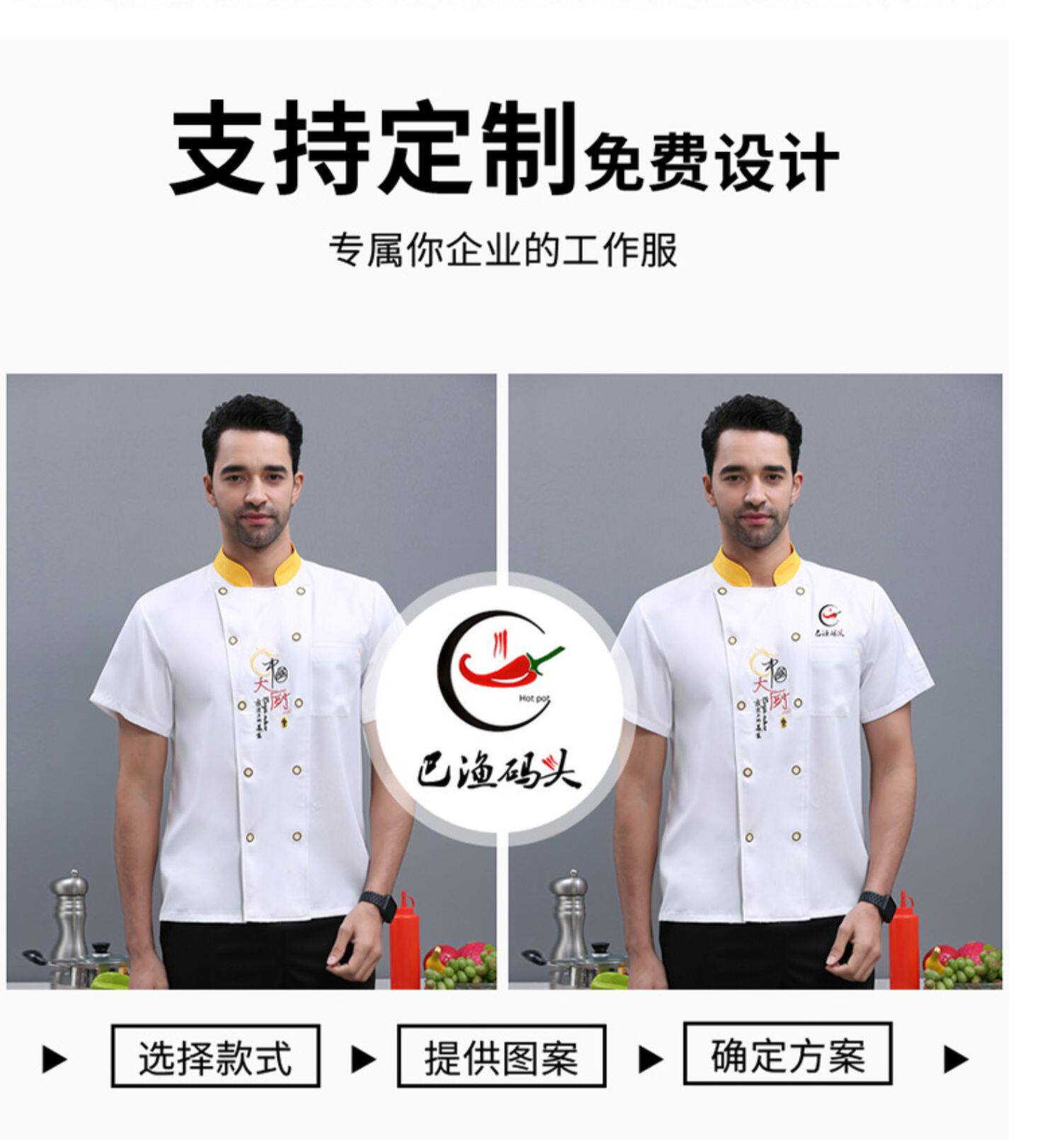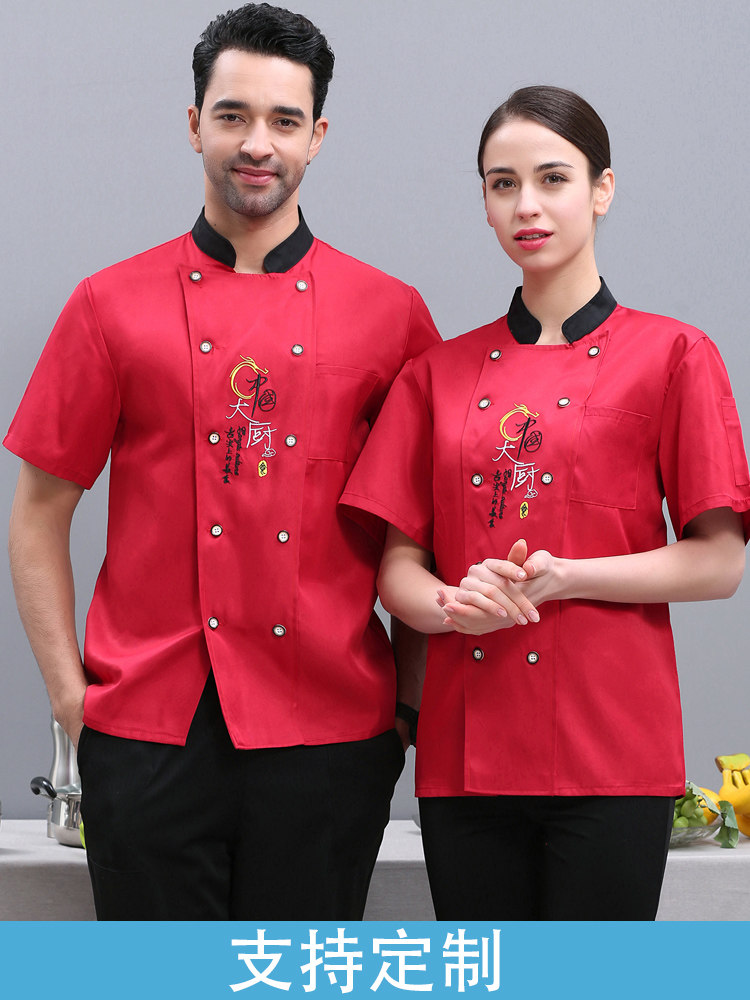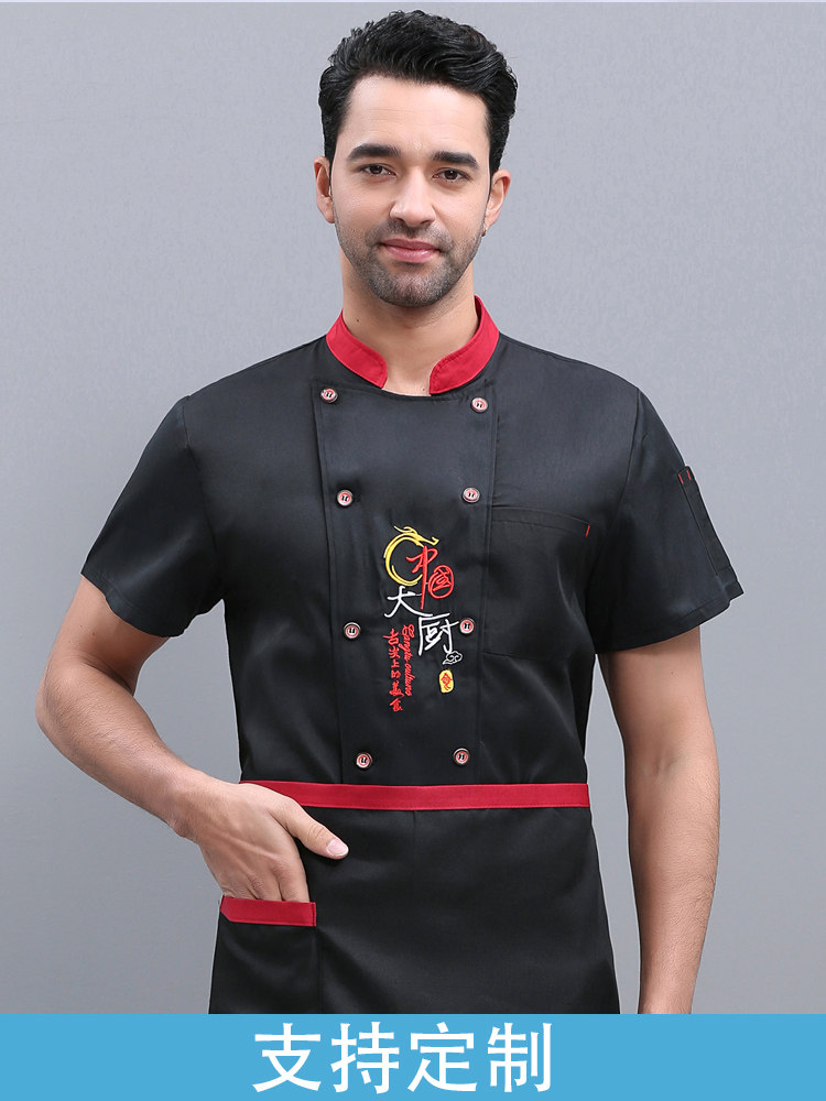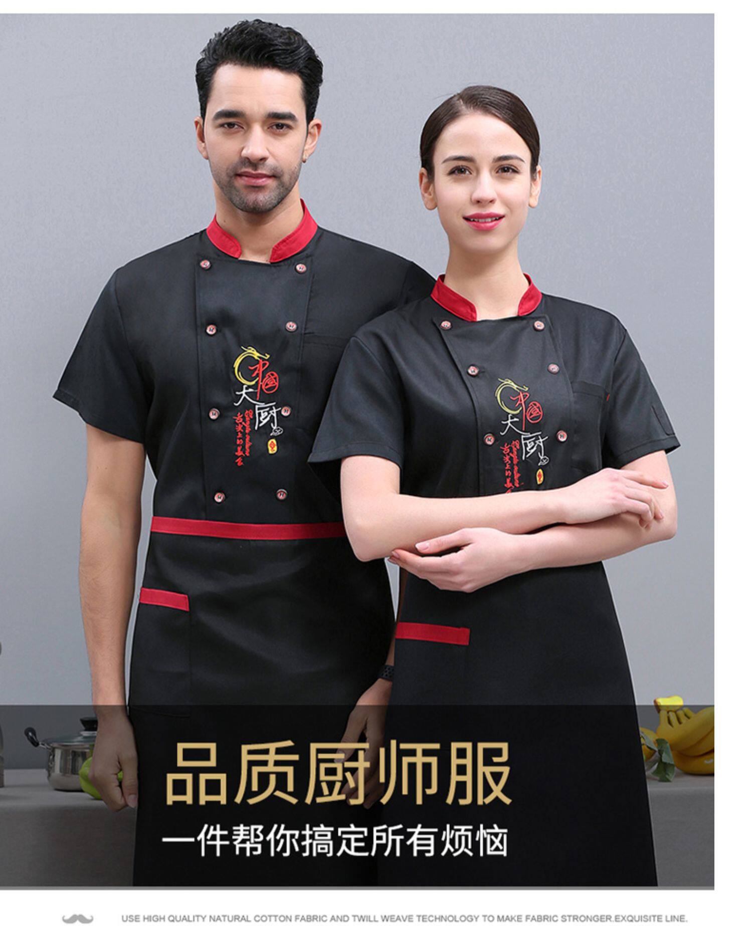中国大厨风厨师工作服短袖薄款透气夏天黄领餐厅饭店厨房厨师服男