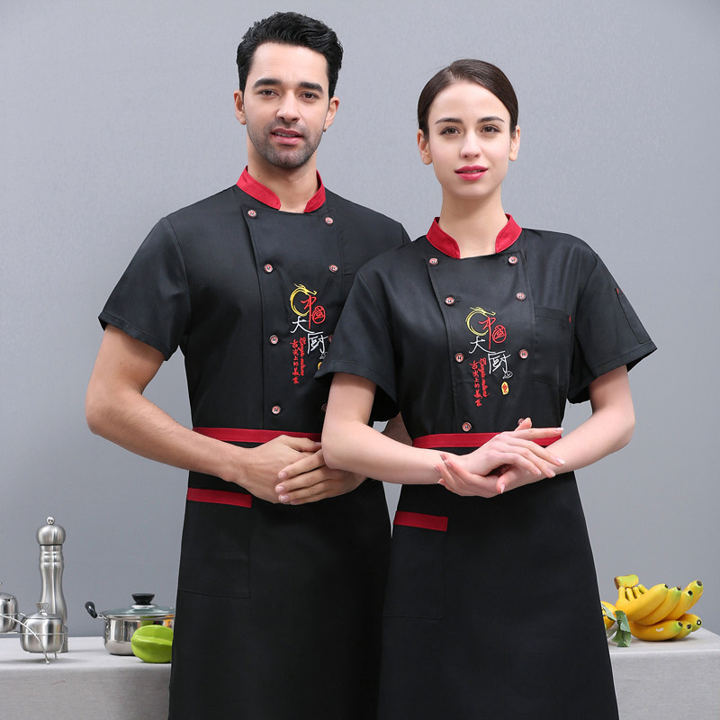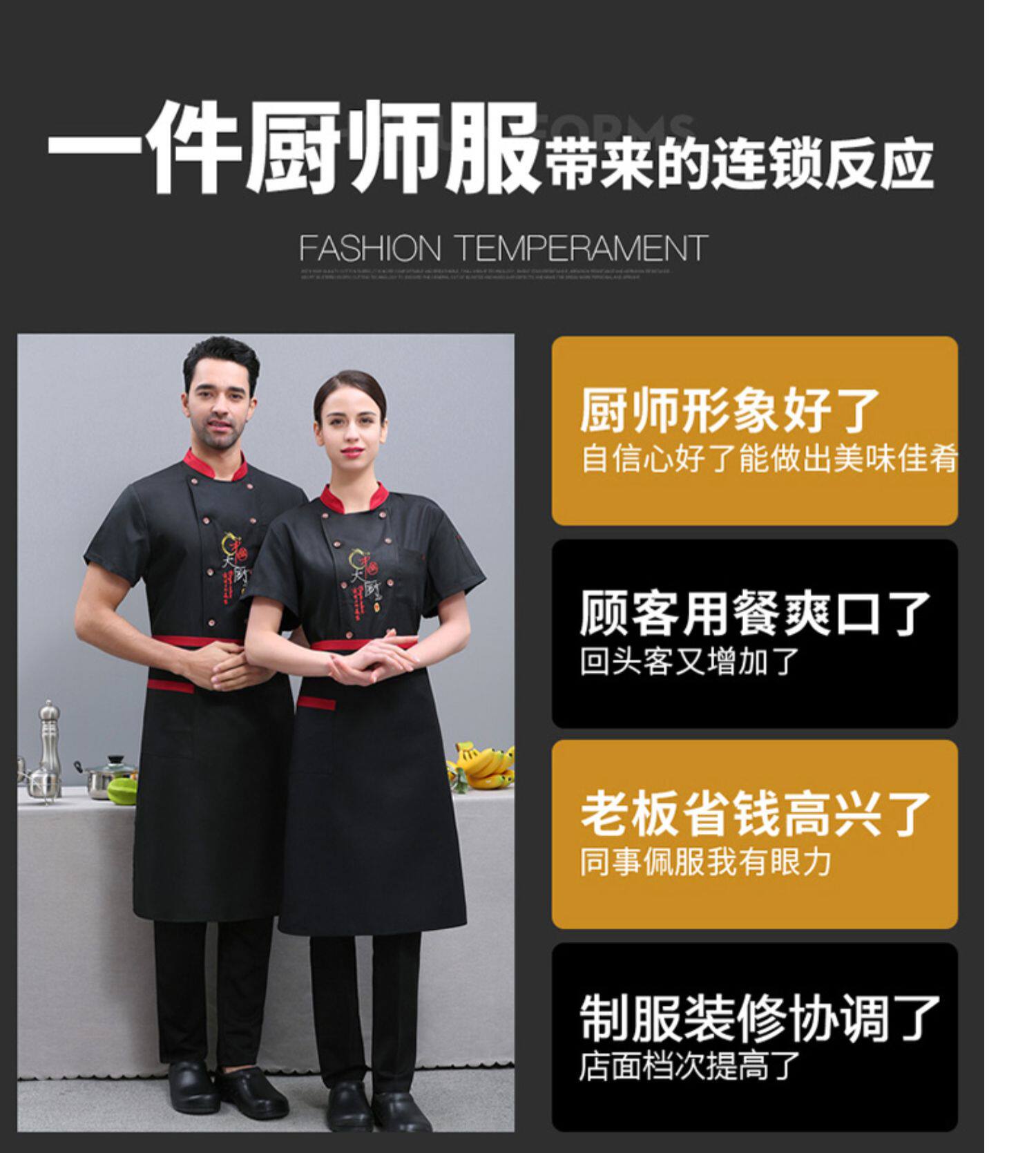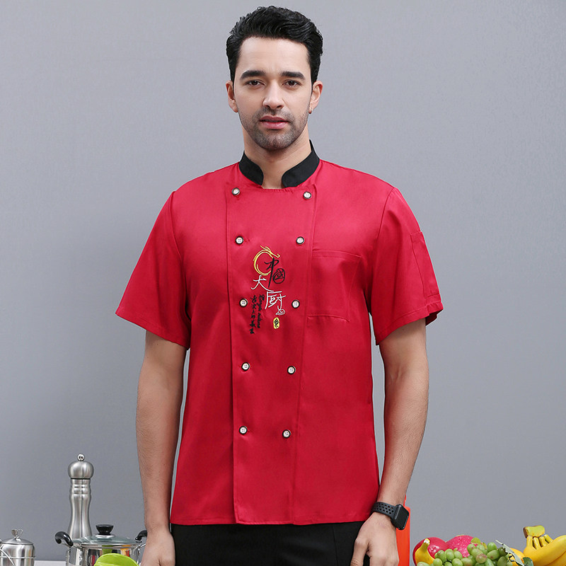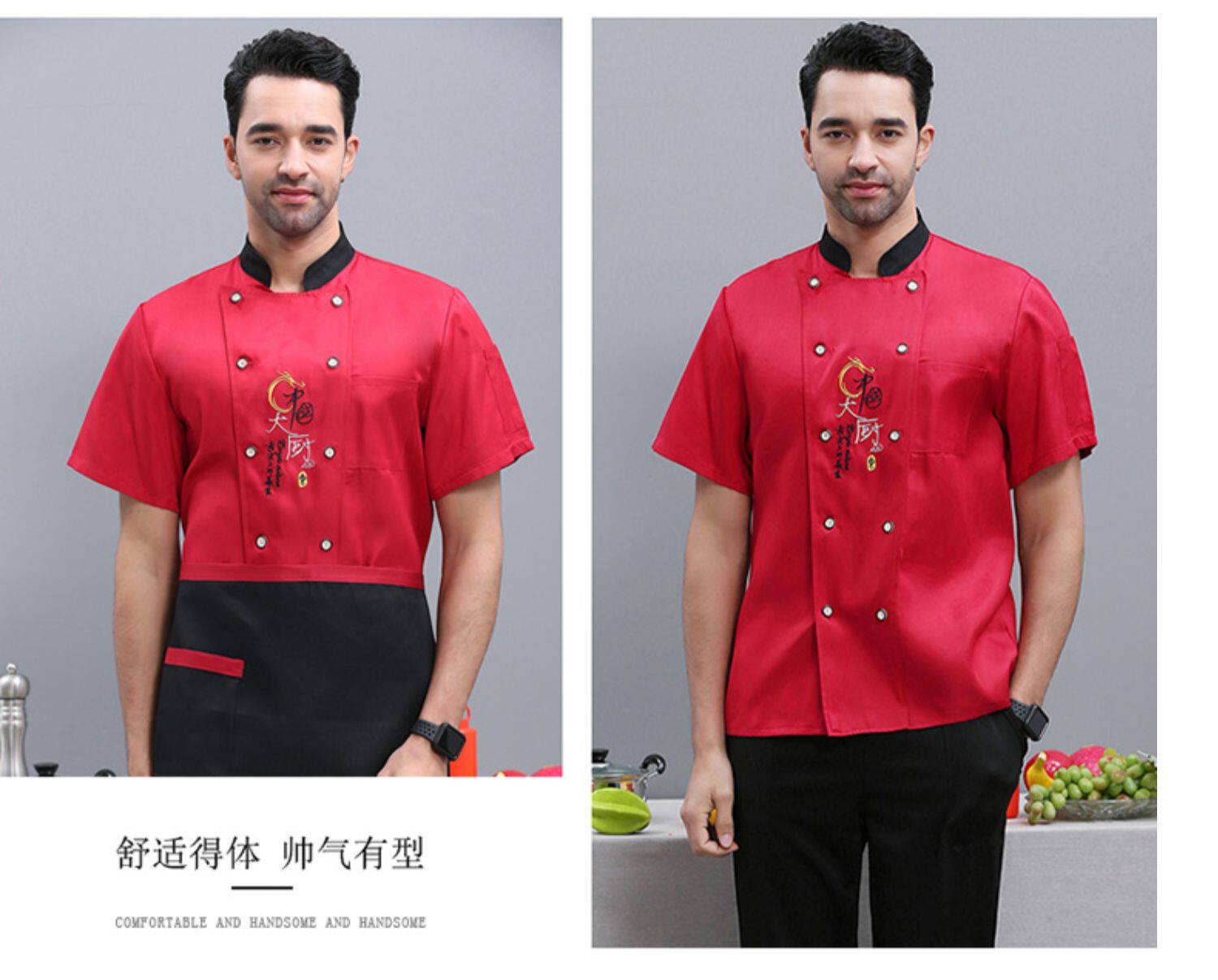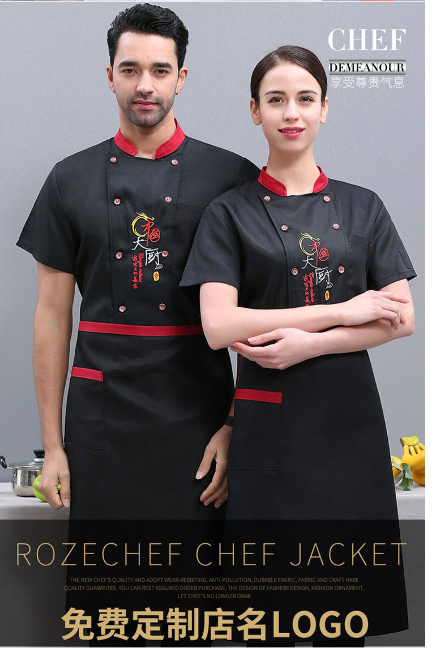 中国大厨风厨师工作服短袖薄款透气夏天黄领餐厅饭店厨房厨师服男