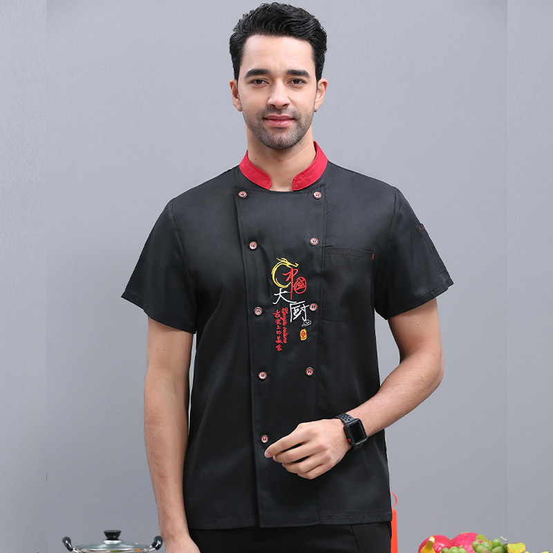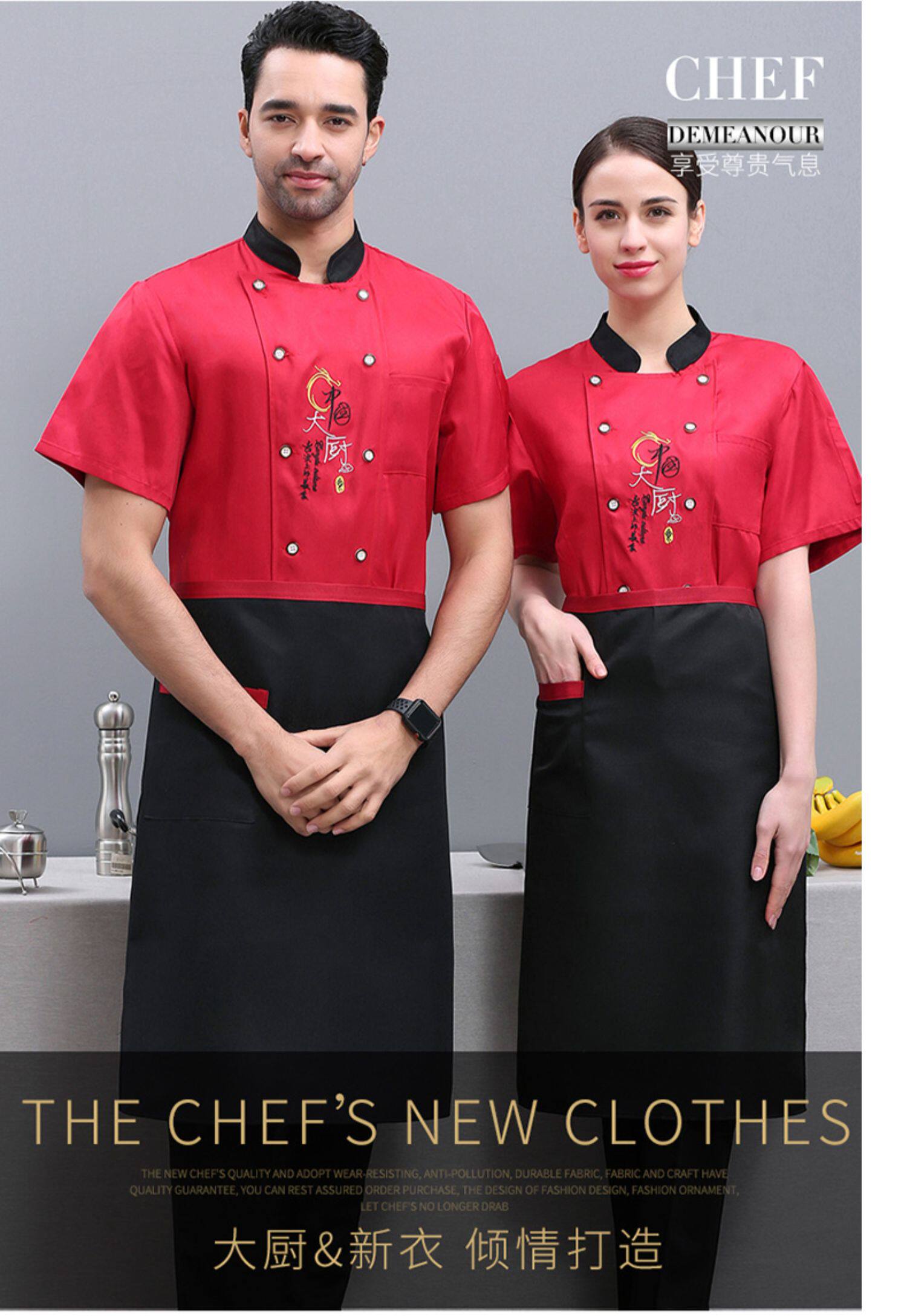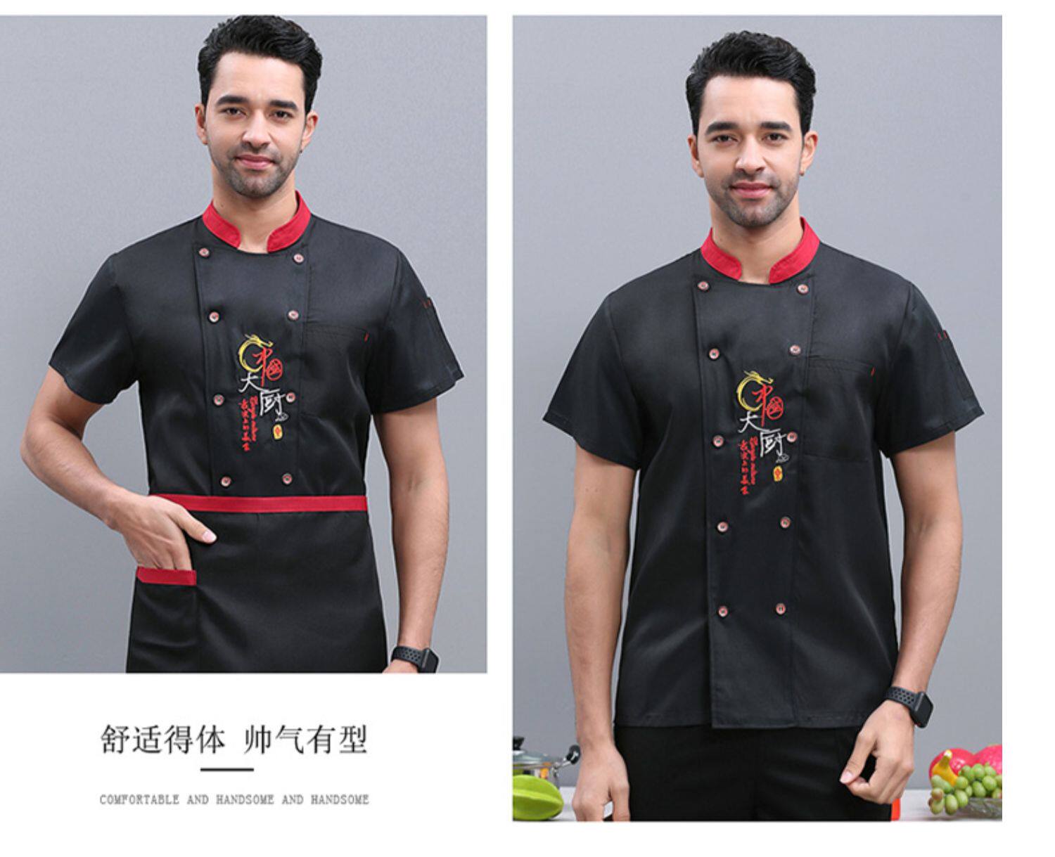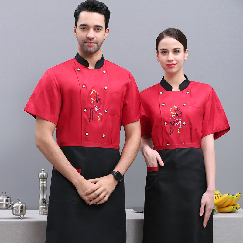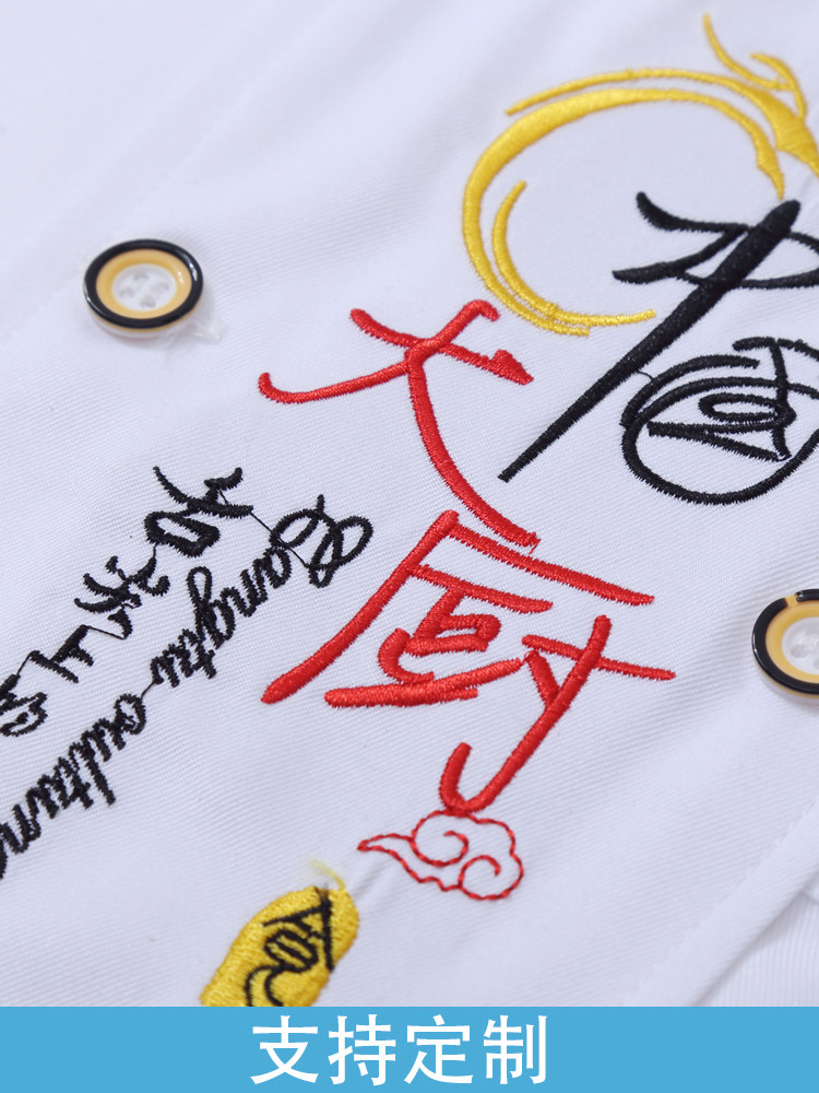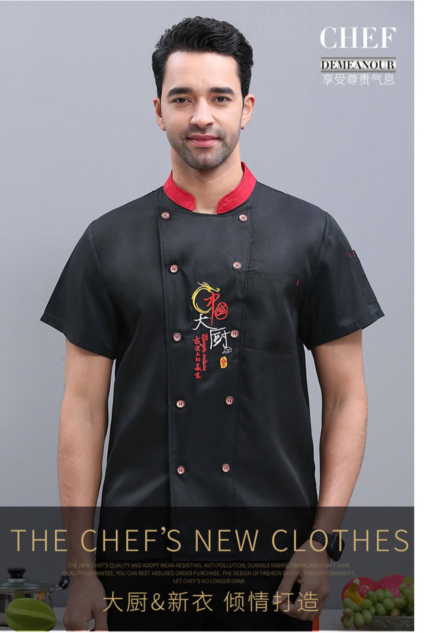 中国大厨风厨师工作服短袖薄款透气夏天黄领餐厅饭店厨房厨师服男