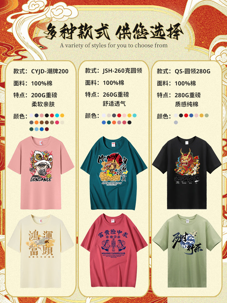 纯棉T恤定制印logo工作服夏季短袖圆领班服团建团体文化衫diy订制
