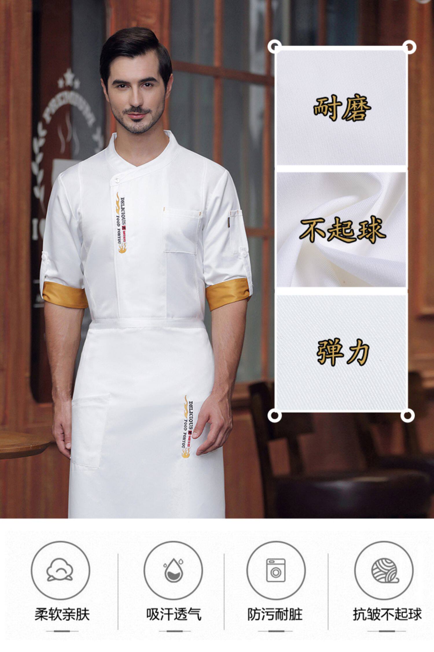 厨师工作服定制男女夏季七分袖餐饮酒店饭店厨房后厨短袖透气厨衣
