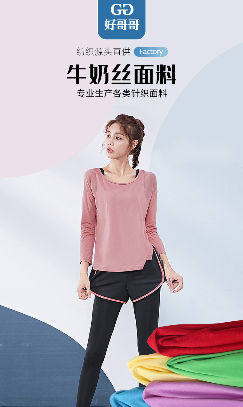 118D牛奶丝拉架针织面料四面弹力涤氨汗布T恤里布复合牛奶丝布料