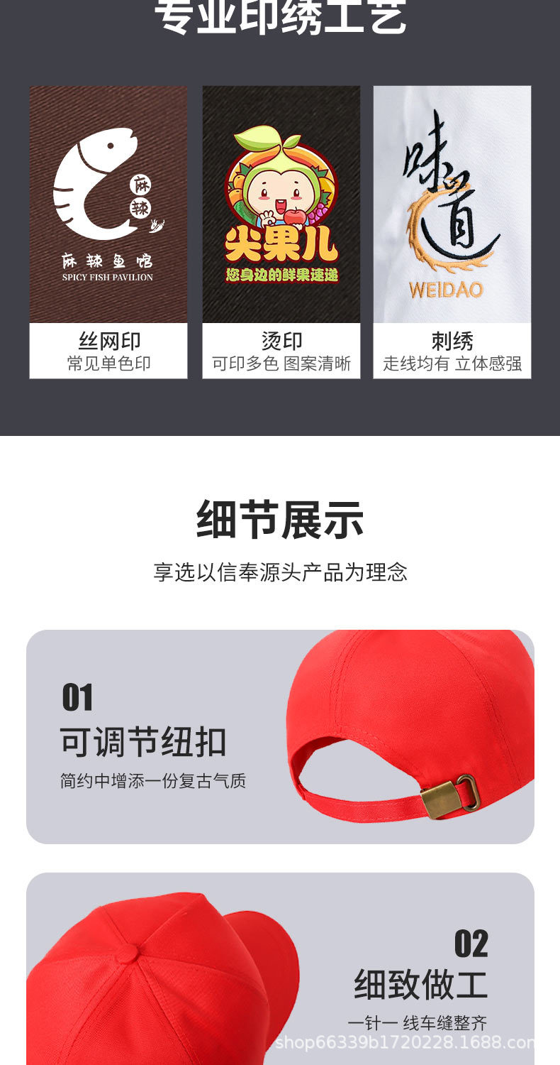餐饮透气速干帽子定制旅游鸭舌帽棒球帽团建团体DIY印字LOGO刺绣
