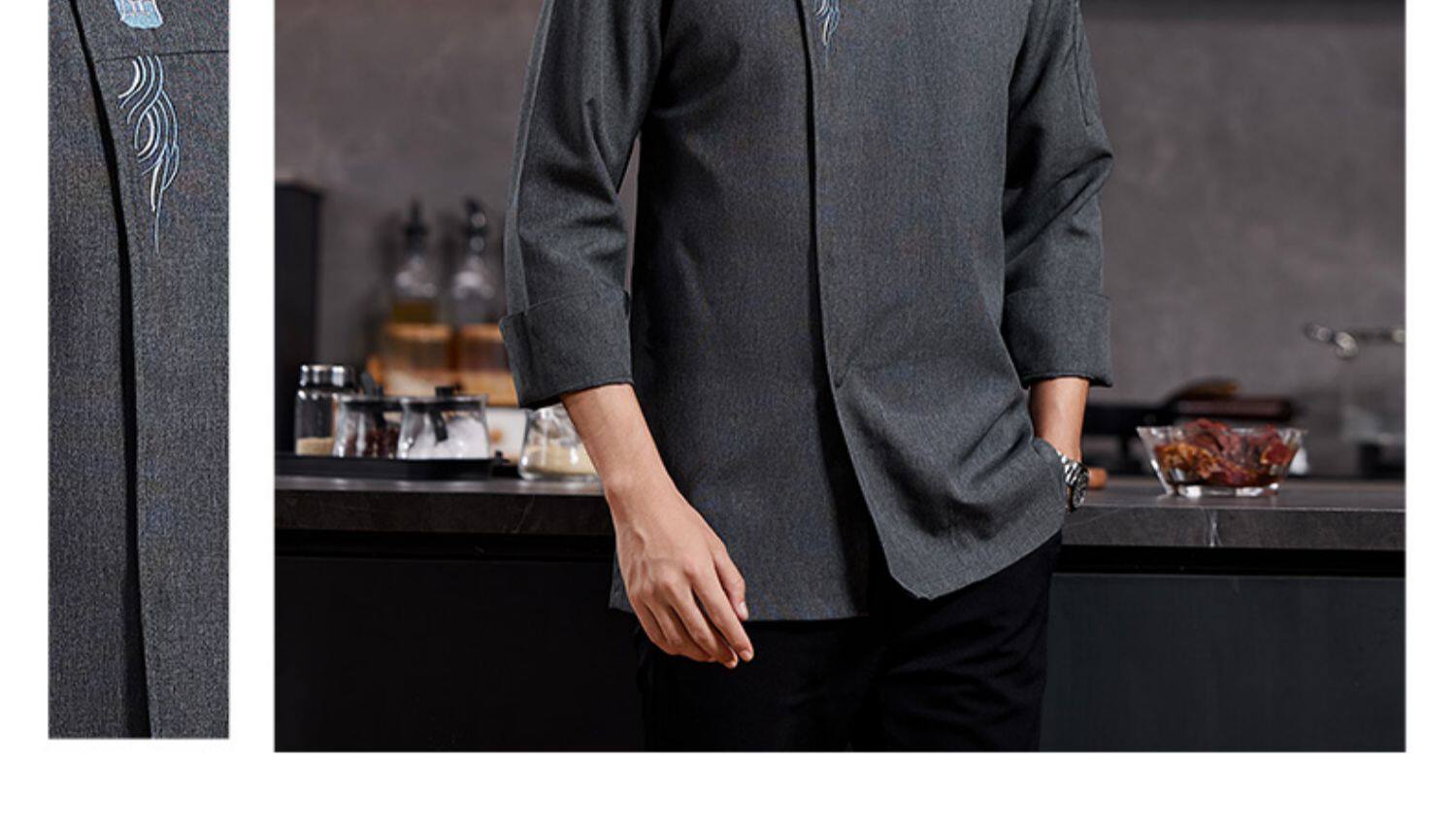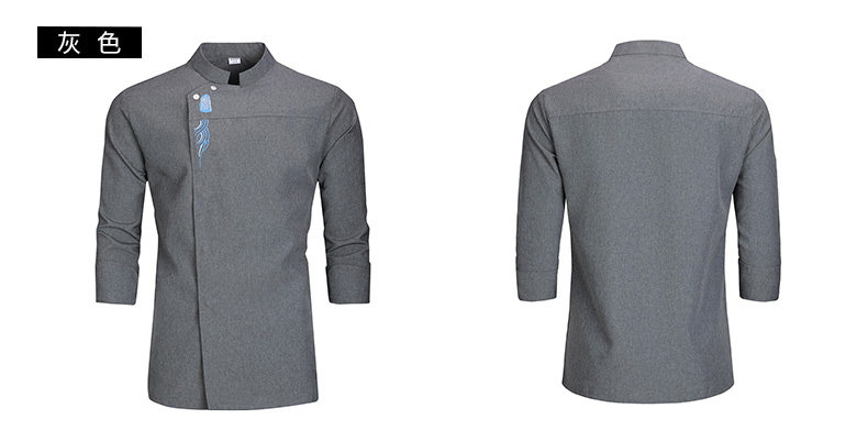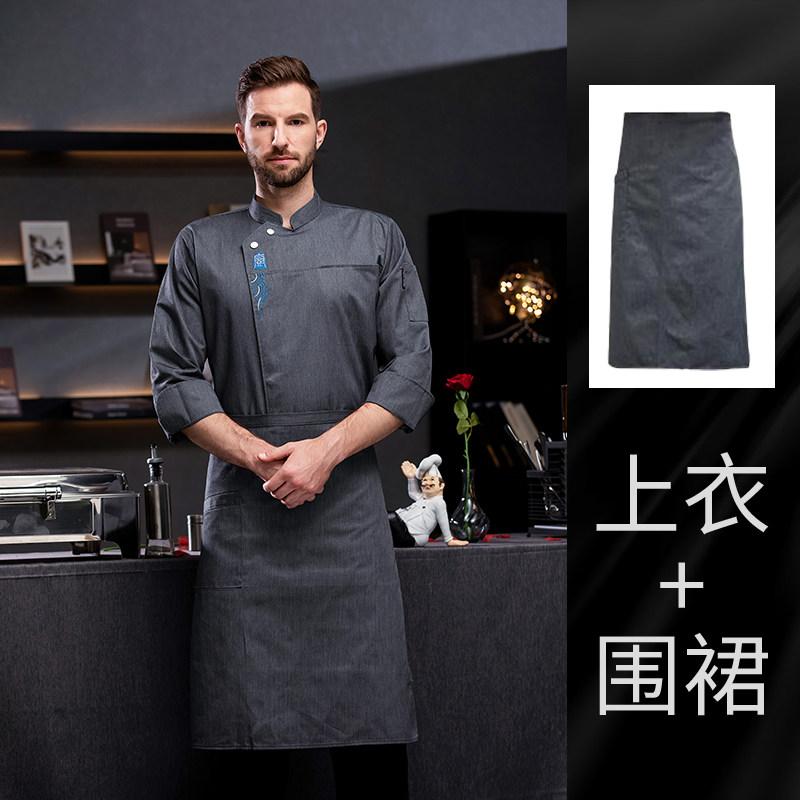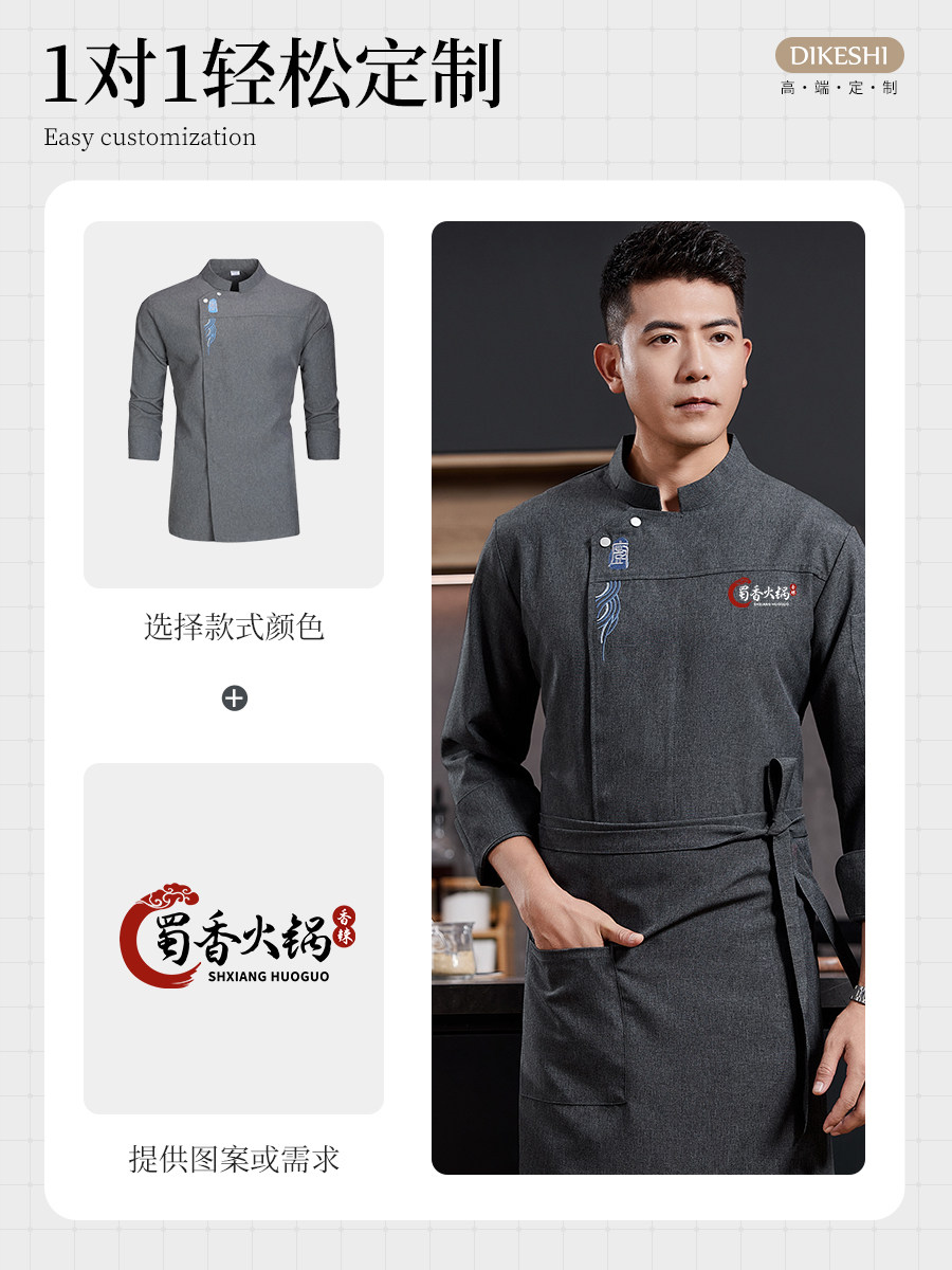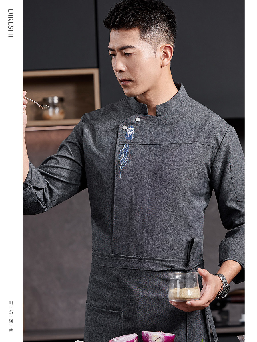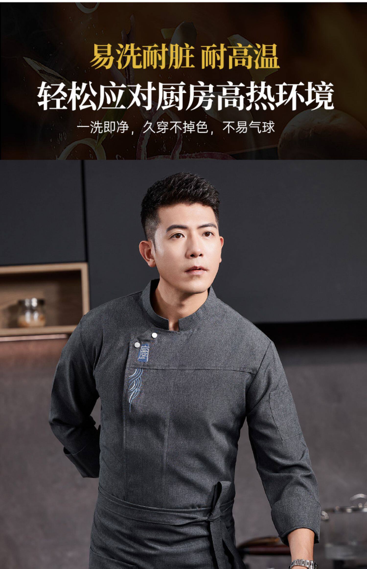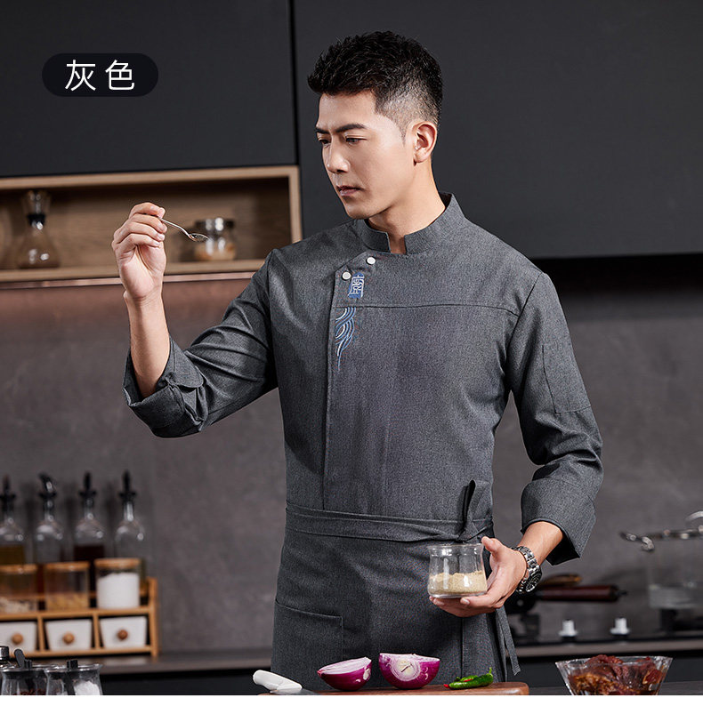 中式厨师工作服秋冬装长袖餐饮酒店快餐饭店后厨房灰色短袖衣服男